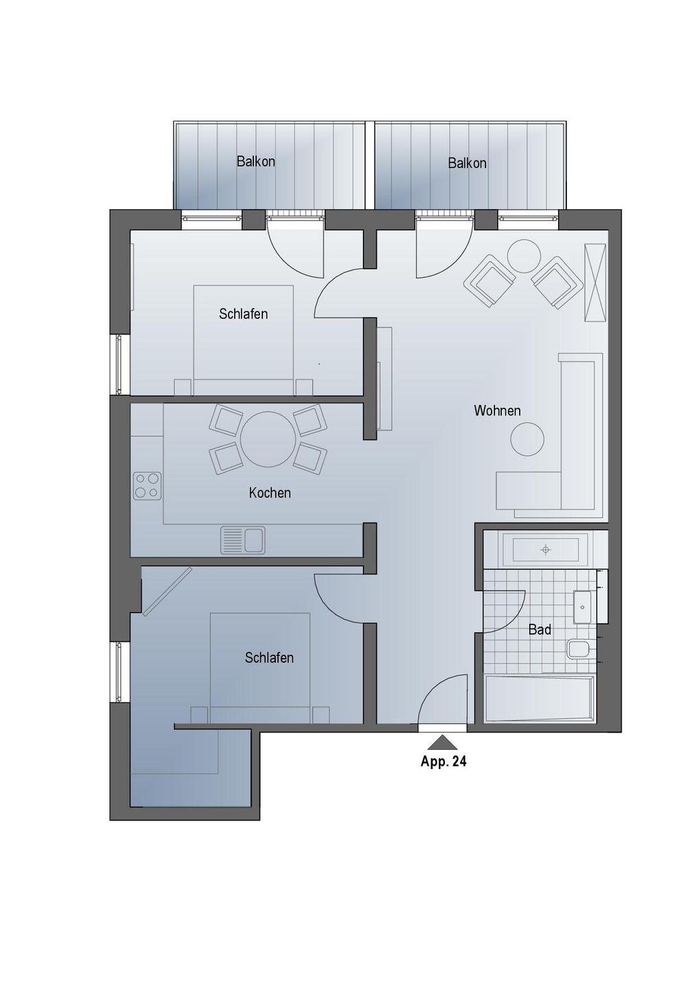 Auf den zwei Balkonen stehen Ihnen moderne Terrassenmöbel zur Verfügung, sodass Sie beispielweise Ihr Frühstück oder Ihr Abendessen ganz privat im Sonnenschein zu sich nehmen können.