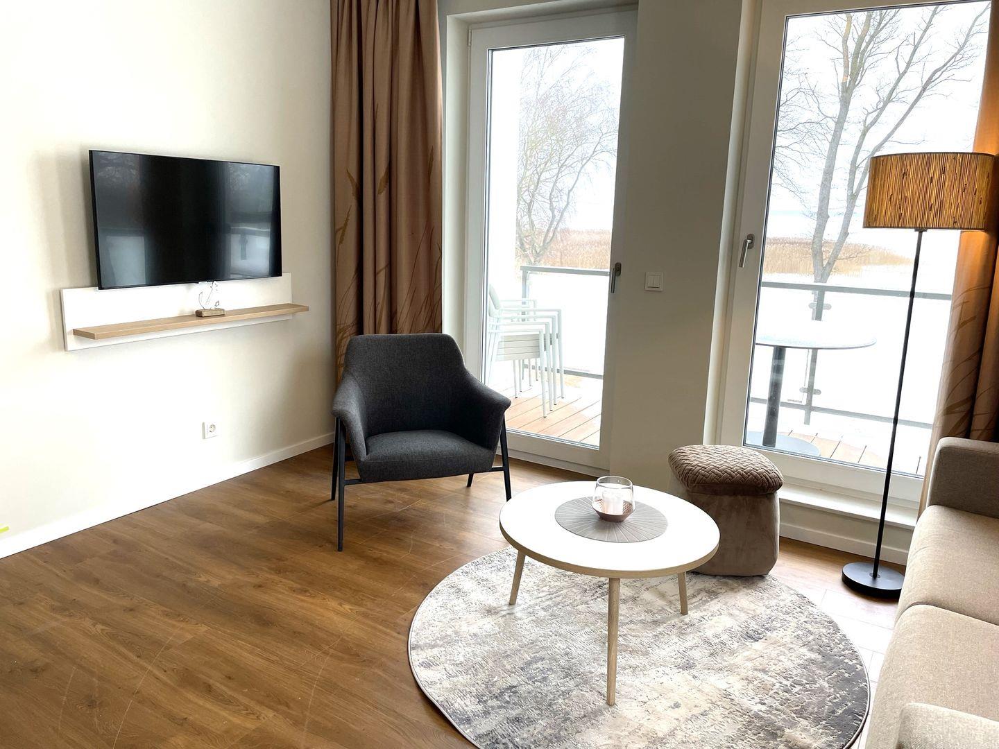 Das Appartement bietet auf 44 qm genügend Platz für bis zu 4 Personen. Genießen Sie Ihren Traumurlaub am Bodstedter Bodden im Baltic Lagoon Resort in Fuhlendorf und fühlen Sie sich wie Zuhause. Restaurant und Strand befinden sich direkt im Resort.