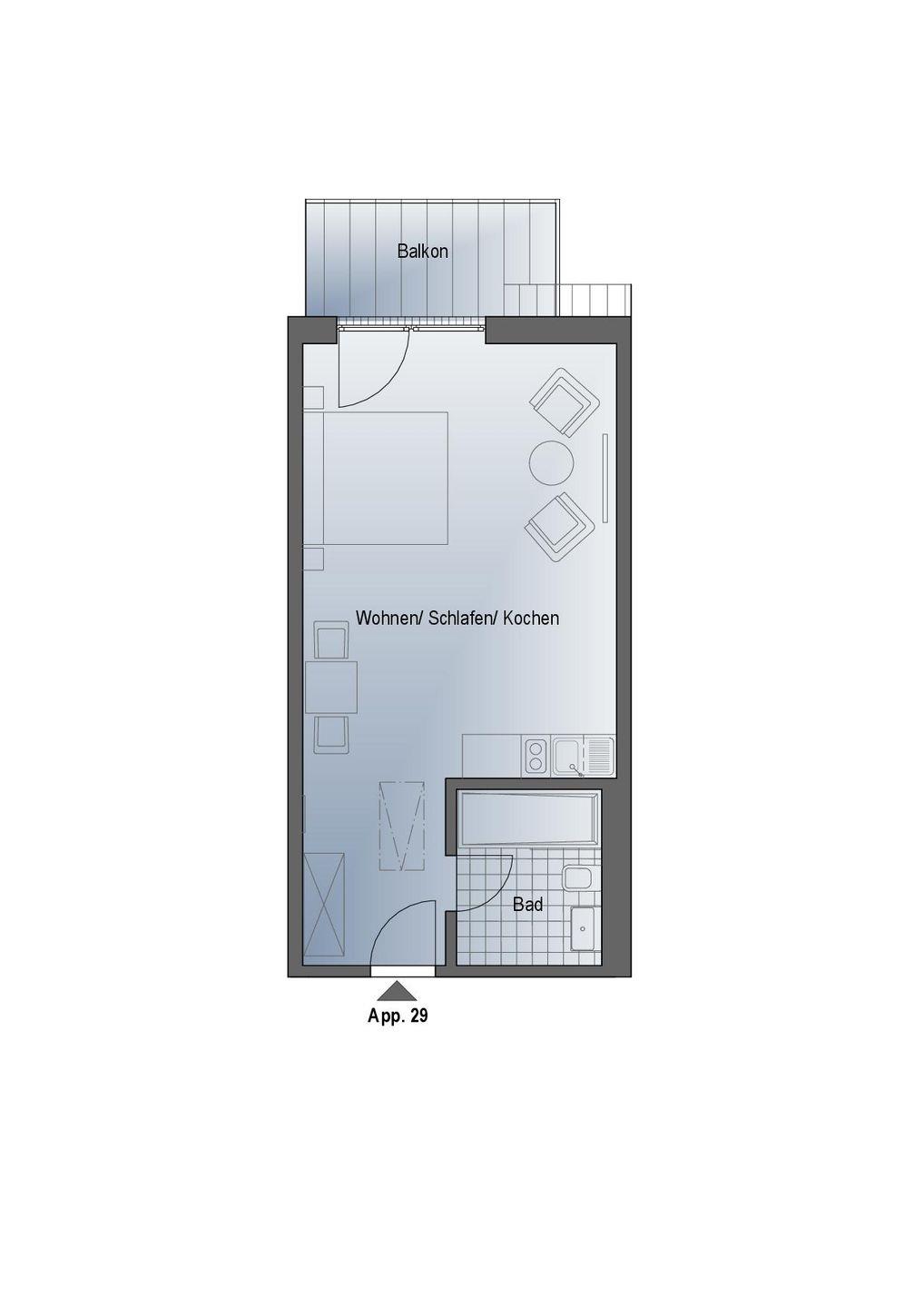 Das komfortable Appartement bietet auf 38 qm Platz für bis zu 2 Personen. Der gemütliche Wohn- und Schlafbereich besitzt ein modernes Doppelbett (1,80m x 2,00m), auf welchem Sie Ihre Erholung finden werden. Zu Ihrem Entertainment dient ein moderner Flatscreen-TV. Ein Kinderbett sowie ein Hochstuhl können auf Anfrage hinzugebucht werden.