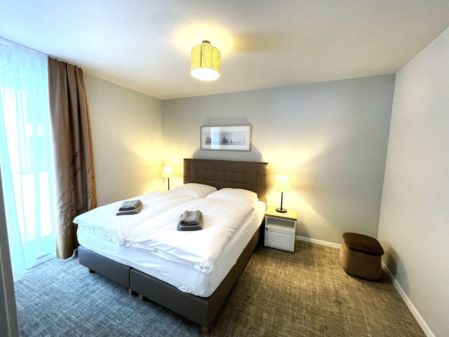 Das Schlafzimmer bietet ein modernes Doppelbett (1,80m x 2,00m), auf welchem Sie süße Träume haben werden. Ein Kinderbett sowie ein Hochstuhl können auf Anfrage hinzugebucht werden.