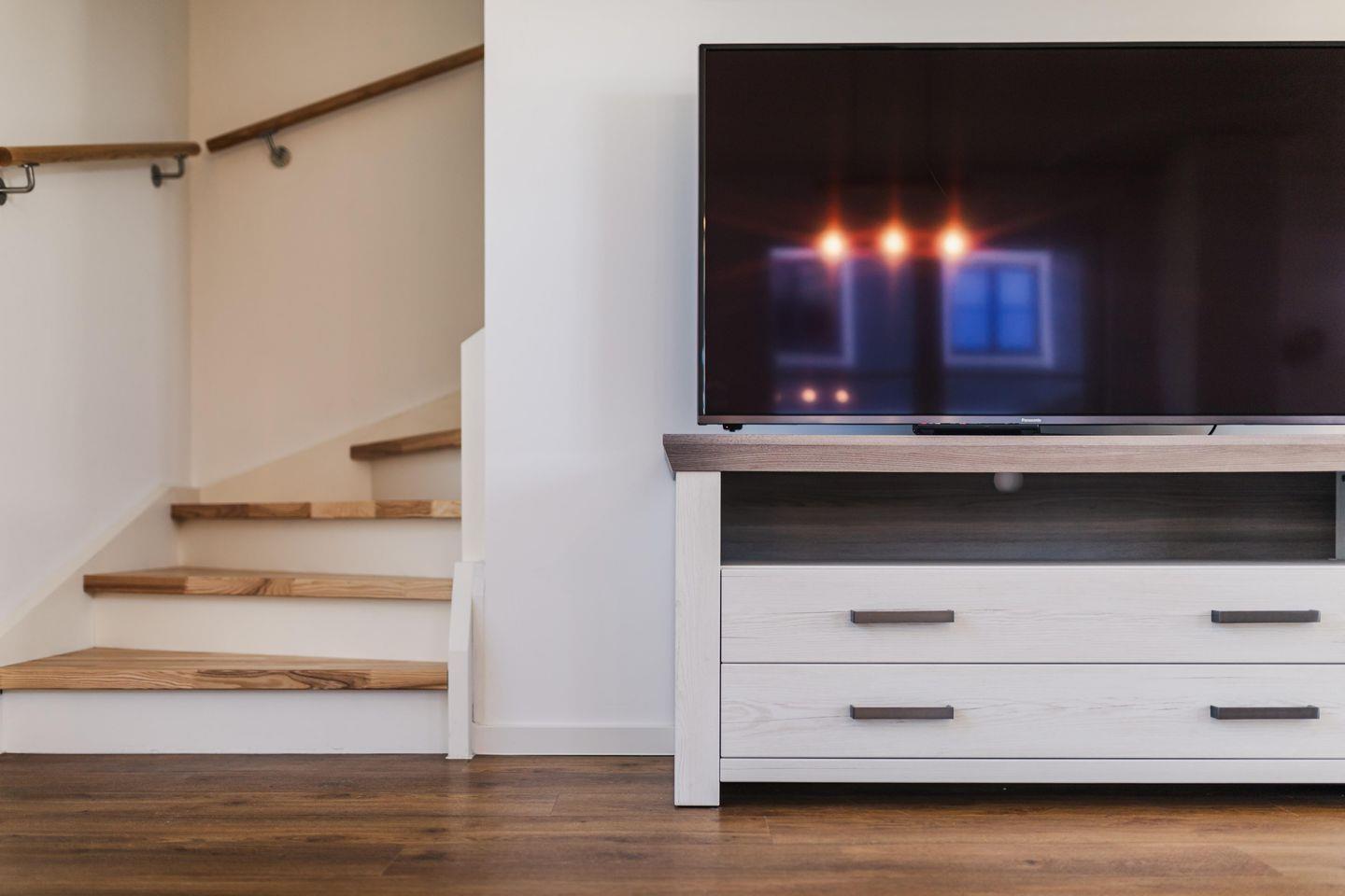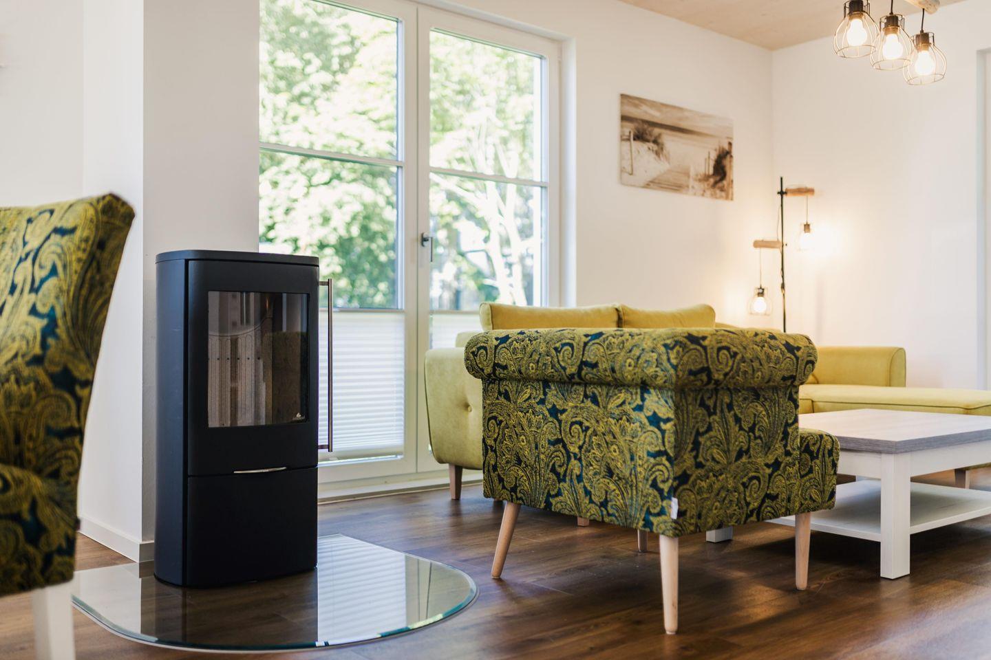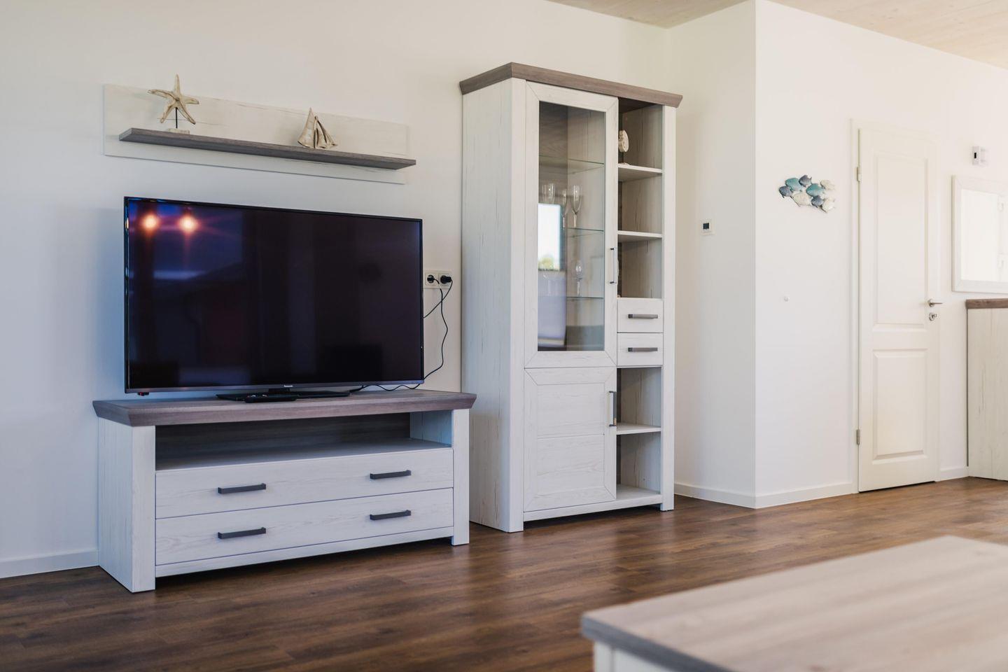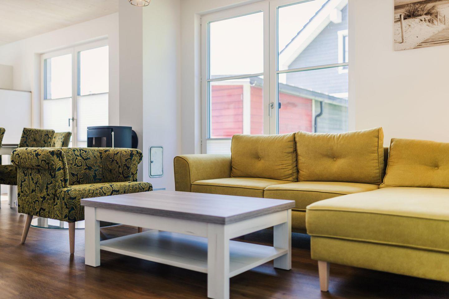 Das gemütliche Ferienhaus bietet auf ca. 100 qm viel Platz für bis zu 6 Personen. Der komfortable Wohnbereich besitzt ein bequemes Schlafsofa für 2 Personen mit Kuscheldecke und sorgt mit einem Flat Screen-TV für Entertainment.
