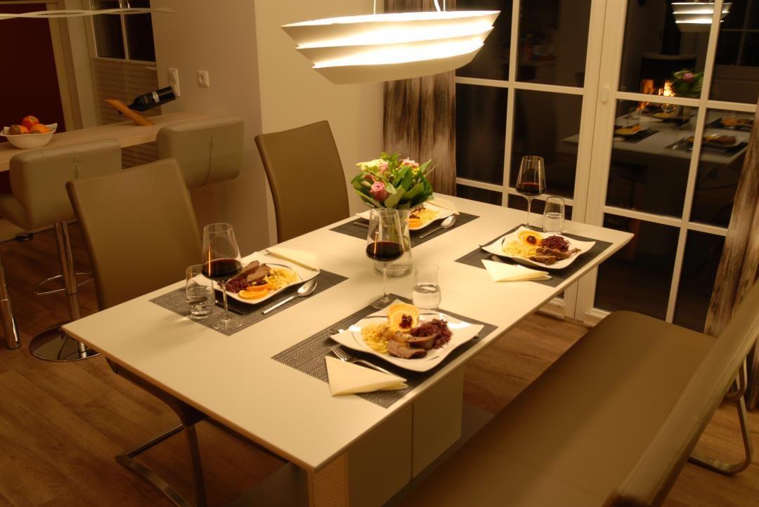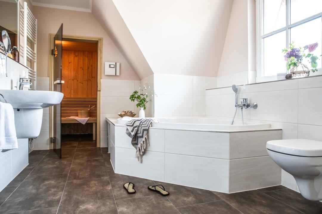WLAN, 3 Flachbildfernseher, SKY, DVD Player, Gesellschaftsspiele und Bücher, Handtücher, bezogene Betten, Sauna, Waschmaschine, Strandkorb, 2 Stellplätzen, Fliegengitter, Fußbodenheizung und ein abschließbarer Schuppen.