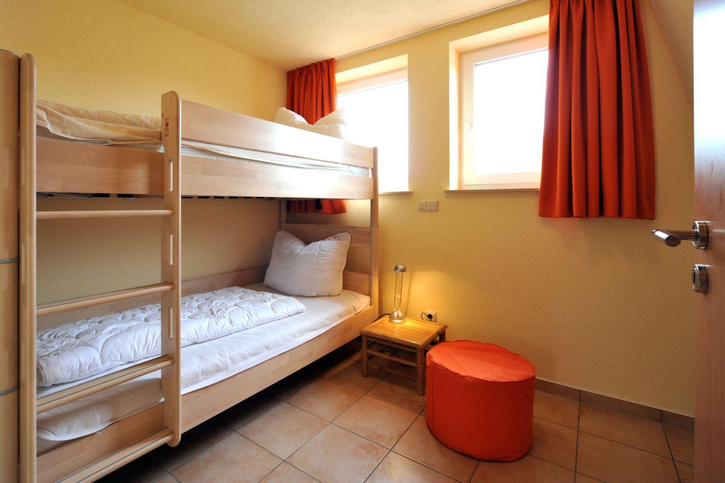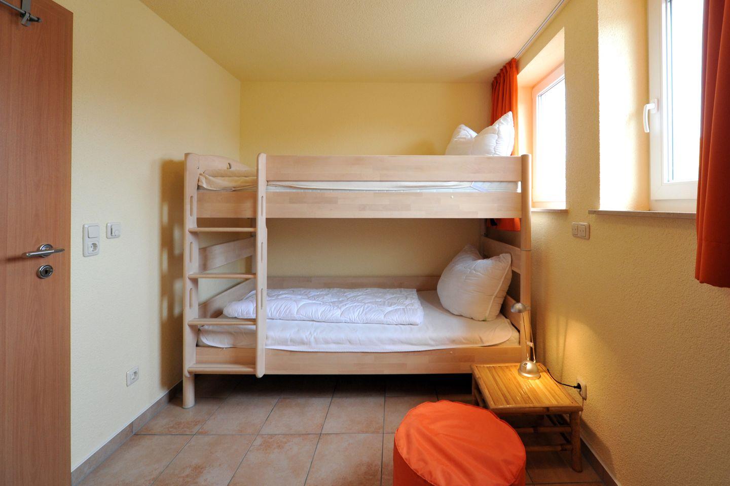 Das Dachgeschoss bietet ein weiteres Schlafzimmer mit zwei Einzelbetten – ideal für Familien mit mehreren Kindern oder Gruppen.
