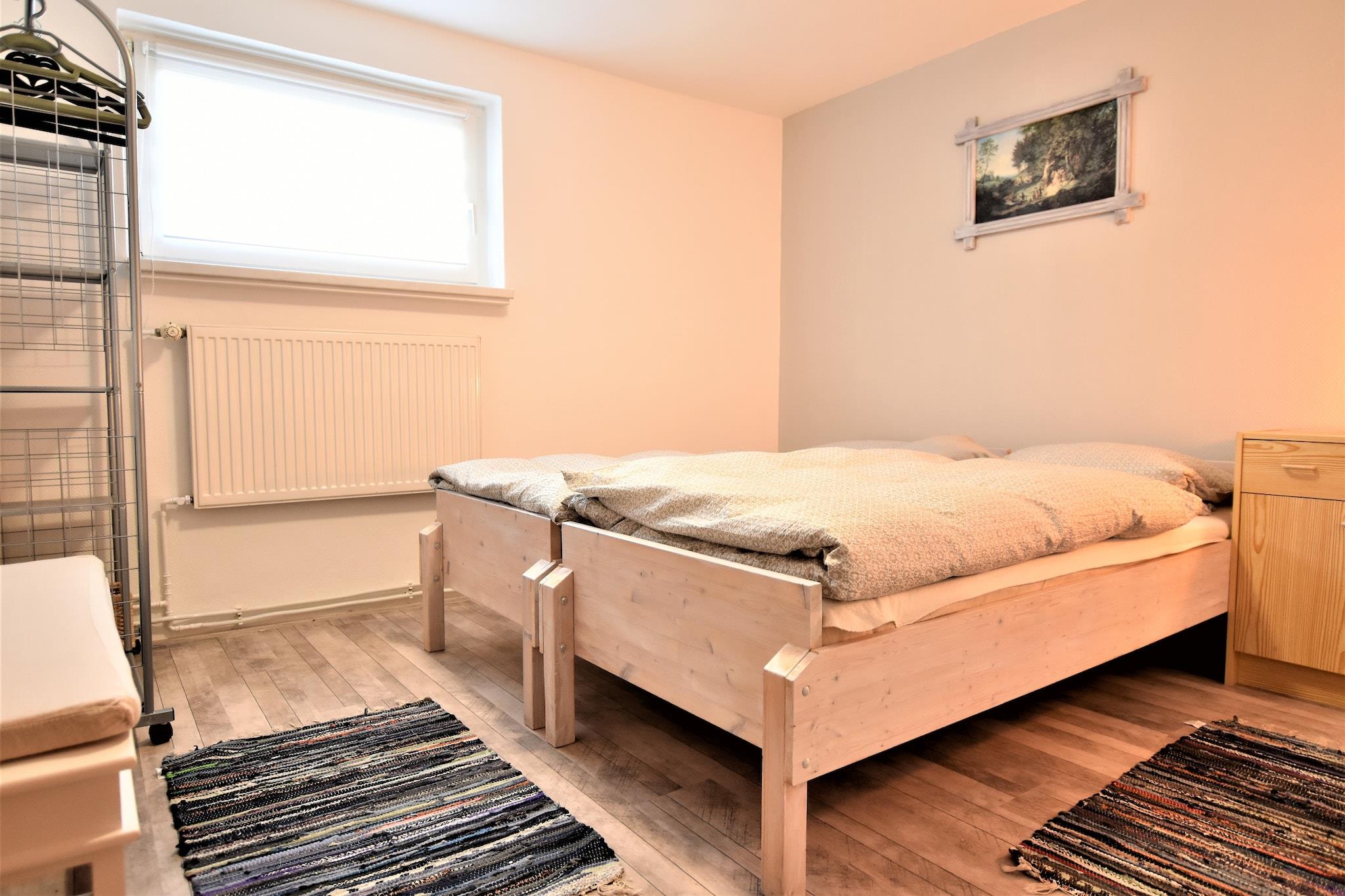Kun 3 km fra stranden og 200 meter fra butikker og et bageri tilbyder denne charmerende kælderlejlighed i Gägelow et fredeligt og praktisk ophold for familier eller små grupper. Stuen har satellit-tv og et behageligt opholdsområde, mens det åbne køkken omfatter en elektrisk kogeplade med 2 kogeplader, kaffemaskine, mikroovn og køleskab - perfekt til nem selvforplejning. Sovearrangementer inkluderer et soveværelse med dobbeltseng og et andet værelse med en køjeseng (80 × 170 cm), opholdsområde, radio og håndvask - ideel til børn eller ekstra gæster. Det moderne badeværelse har bruseniche, toilet og håndvask, og indretningen sikrer komfort og privatliv overalt. Udenfor kan du nyde en indhegnet have med terrasse, grill og legeredskaber samt parkering på stedet og en carport. Med et indkøbscenter, cykeludlejning og offentlig transport inden for 500 meter, og Wismars attraktioner kun 5 km væk, blander dette sted bekvemmelighed, charme og kystadgang