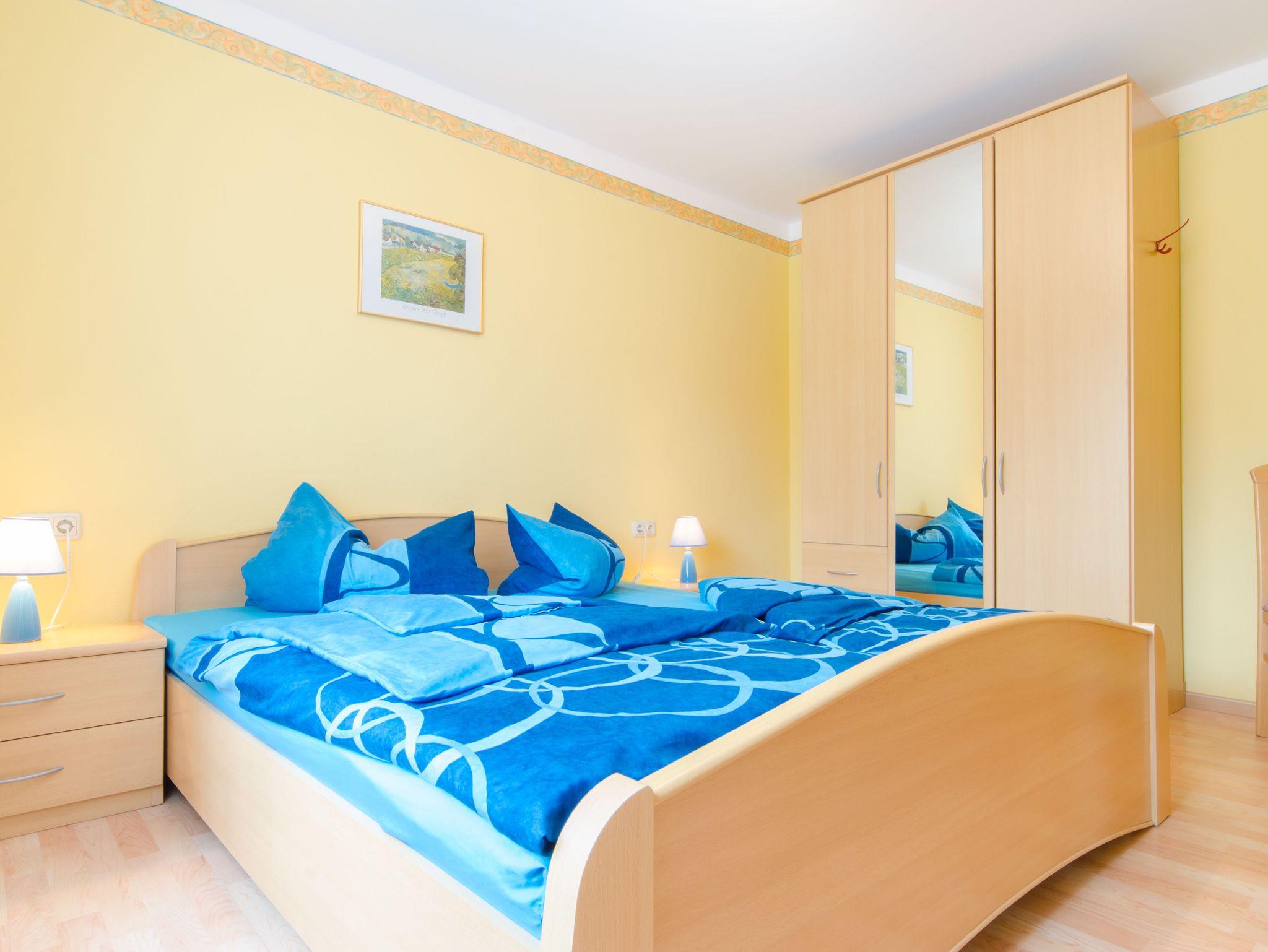 Unsere geräumige Ferienwohnung II ist 60 m² groß und befindet sich im 1. Stock. Sie verfügt über 2 getrennte Schlafzimmer mit Doppelbetten, einer voll ausgestatteten Küche (inkl. Spülmaschine) mit Sitzecke, Wohnzimmer mit Sat/TV und einem Bad mit Dusche/WC. Von der Küche und einem Schlafzimmer aus kann man auf die jeweiligen Balkone gelangen (Schlafzimmer mit Südbalkon und Küche mit Westbalkon).