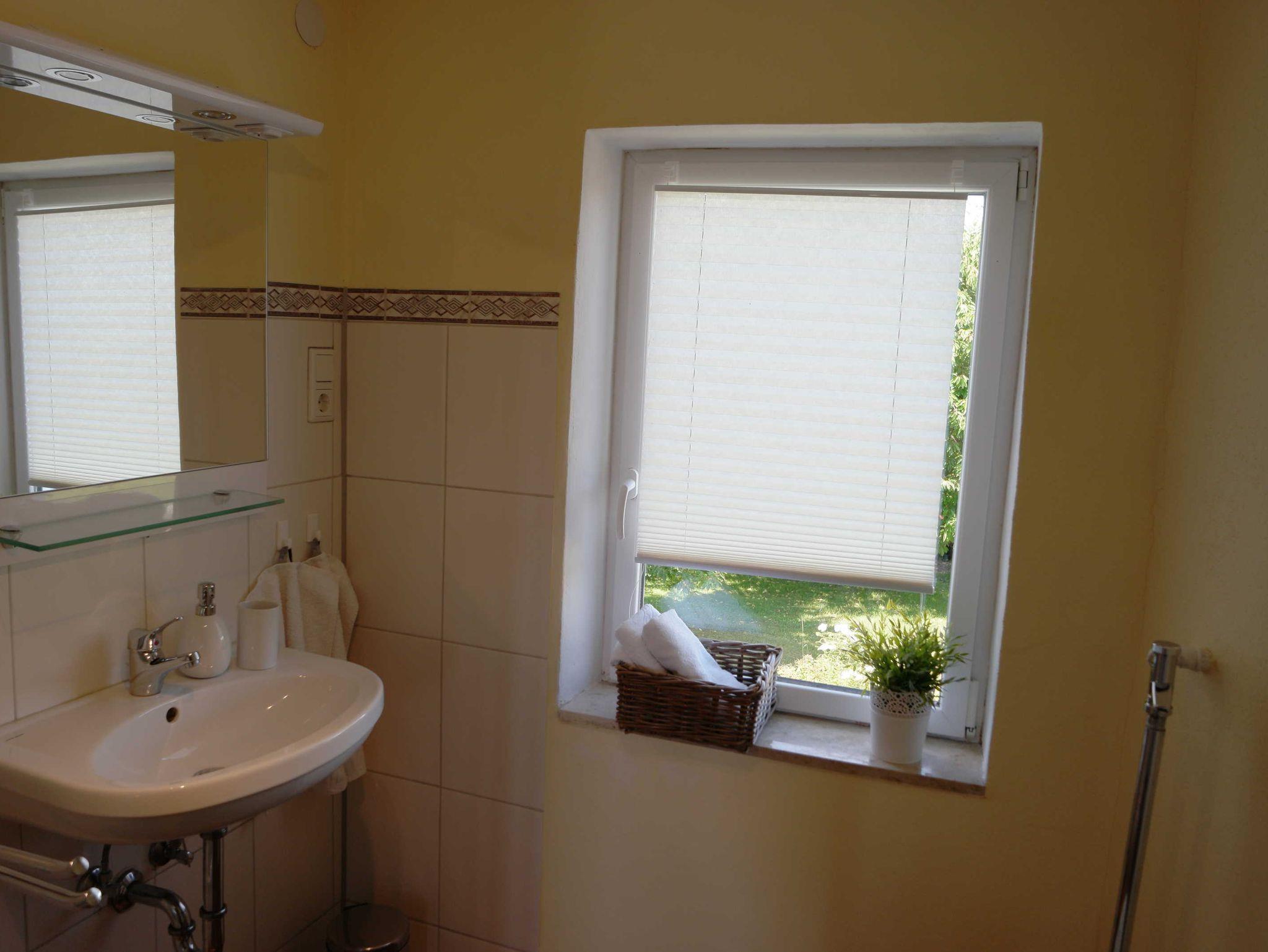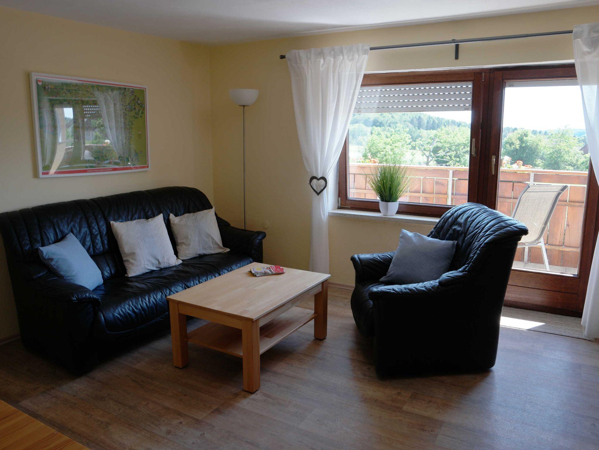Unsere Nichtraucher-Ferienwohnung Reiperts im ersten Stock ist ca. 45 m² groß und bietet Platz für zwei Personen. Die Wohnung erreichen Sie über einen separaten Eingang. Die Wohnung verfügt über einen hellen Wohn- und Essbereich mit offener Küche, ein Bad mit Tageslicht und ein separates Schlafzimmer mit Doppelbett. Die Küche ist ausgestattet mit einem Cerankochfeld, Backofen, Kühlschrank mit Gefrierfach, Toaster, Wasserkocher und einer Kaffeefiltermaschine. Kochutensilien, Geschirr, Gläser und Reinigungsmittel sind ebenfalls vorhanden. Vom Wohnzimmer aus gelangen Sie auf den Balkon mit Blick in Richtung Süden. Dieser lädt Sie am Morgen zu einem ausgiebigen Frühstück mit Blick in die Natur ein. Oder genießen Sie einen herrlichen Sonnenuntergang mit einem Gläschen Wein und lassen den Abend entspannt ausklingen.