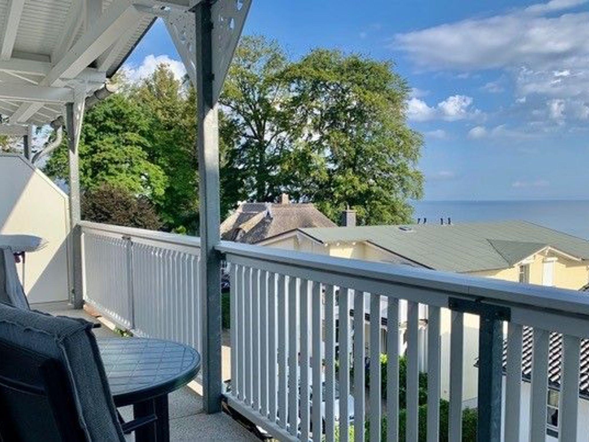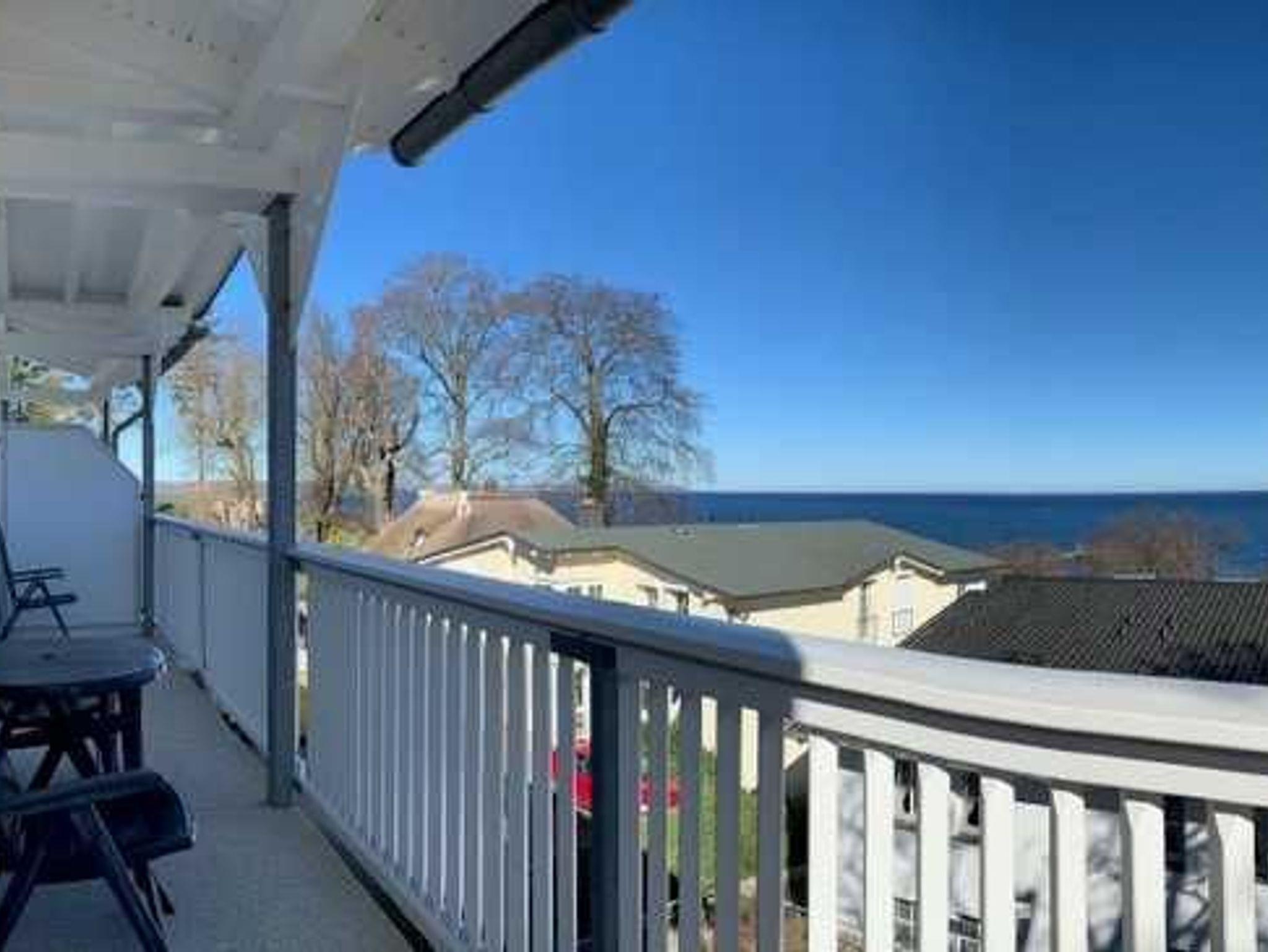 Der sehr große Balkon mit herrlichem Meerblick ist vom Wohnzimmer zu erreichen.