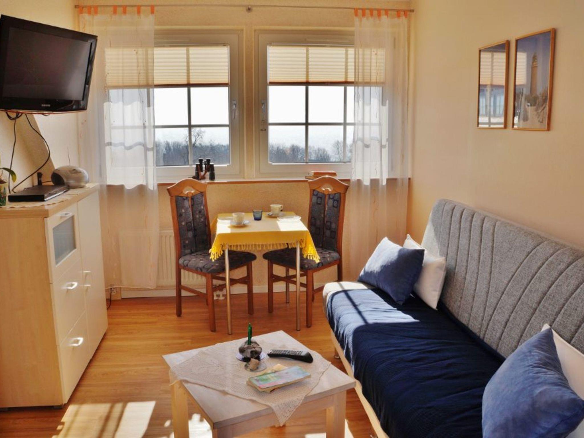 Vom Wohnzimmer haben Sie direkten (unverbauten) Blick auf den Südstrand und das Mönchguter Land.
