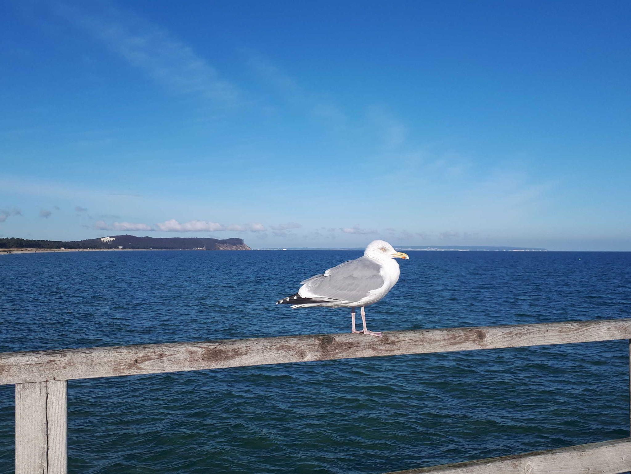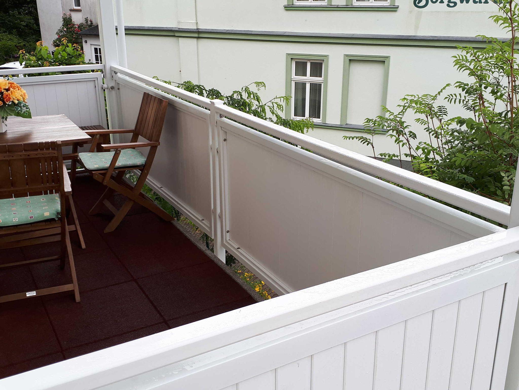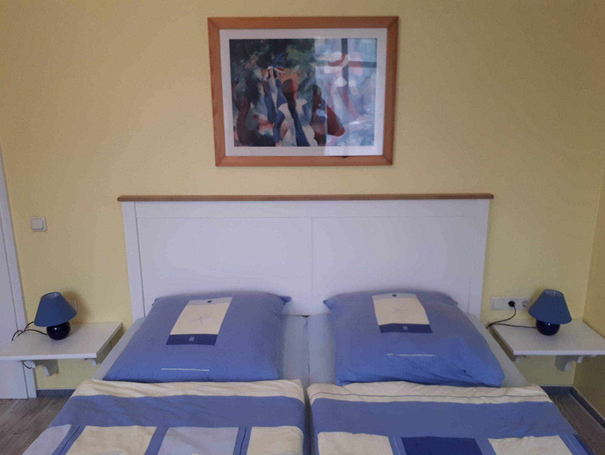 Die 40 qm große 2- Raumwohnung befindet sich in der 1. Etage. Der große Wohnraum beinhaltet eine vollausgestatte Küchenzeile mit Geschirrspüler, Backofen, Kühlschrank, Microwelle, Toaster, Kaffeemaschine, kompletten Geschirr und diversen Küchenutensilien. Ein bequemes Sofa (mit Schlaffunktion 1,20 m x 2,00 m), eine Essecke für 4 Personen und ein Flachbild-TV, kostenfreies WLAN, Bücher und Gesellschaftsspiele bieten alles,was einen gemütlichen Aufenthalt garaniert. Vom Wohnraum gelangt man auf den großzügigen separaten Südost-Balkon, wo kein Nachbar stört. Nach dem Blätterfall, im Winter ist ein seitlicher Meerblick möglich.