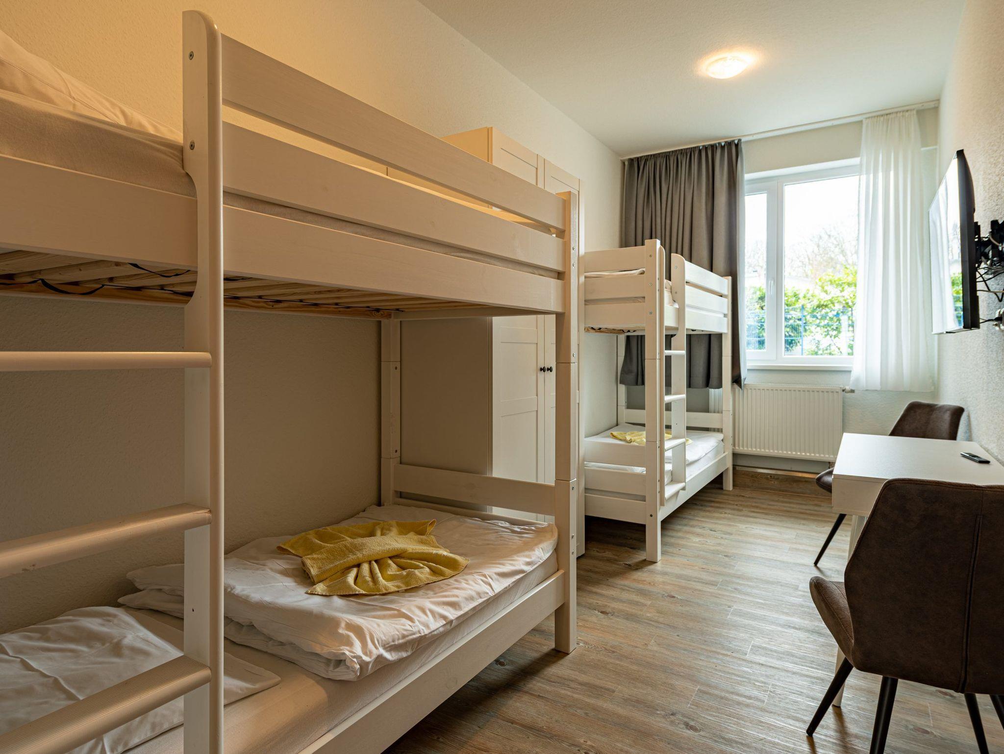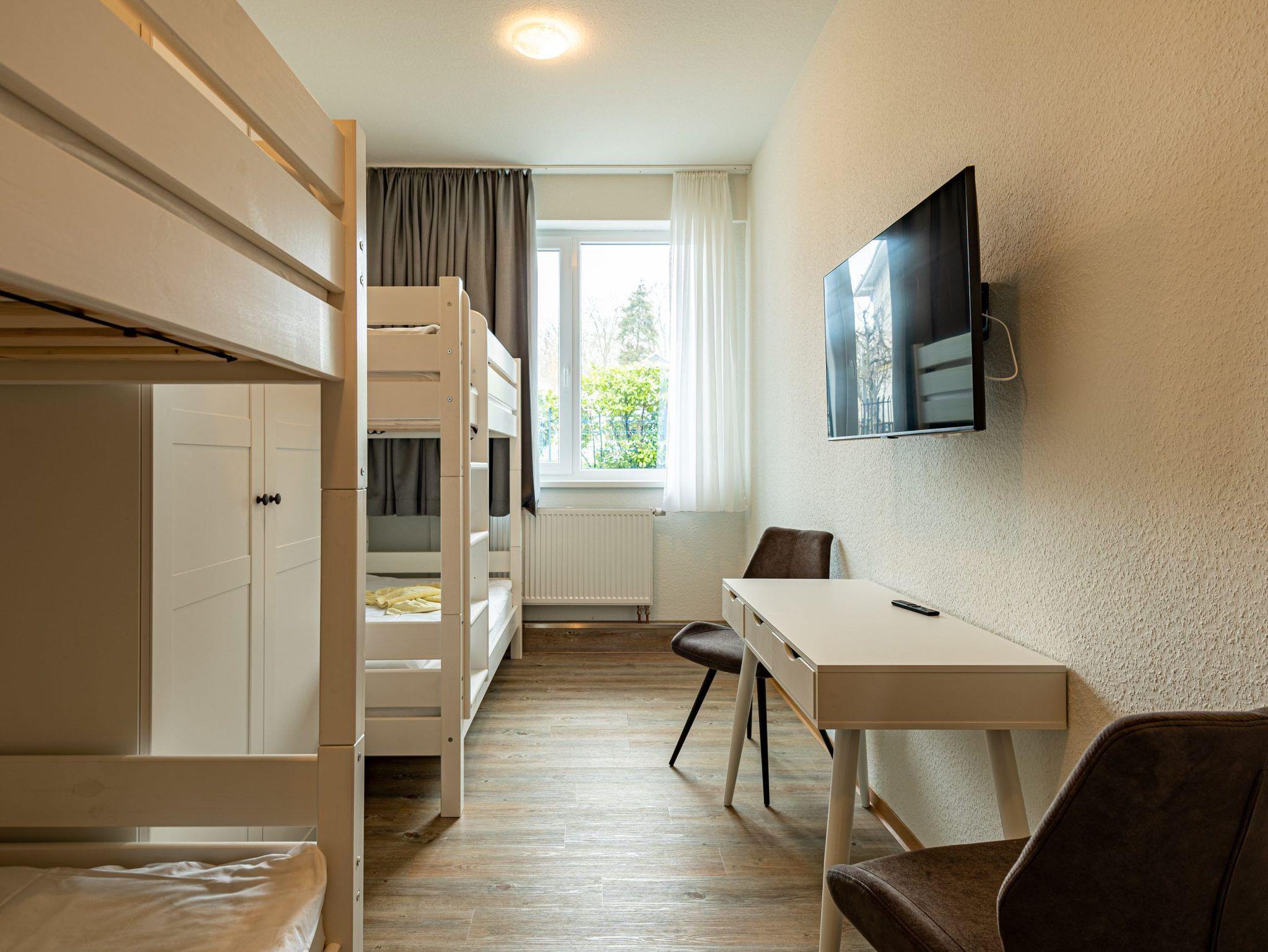 * Schlafzimmer mit 2 Stockbetten (90 x 200 cm), Großem Kleiderschrank, Schreibtisch und Flachbild Fernseher