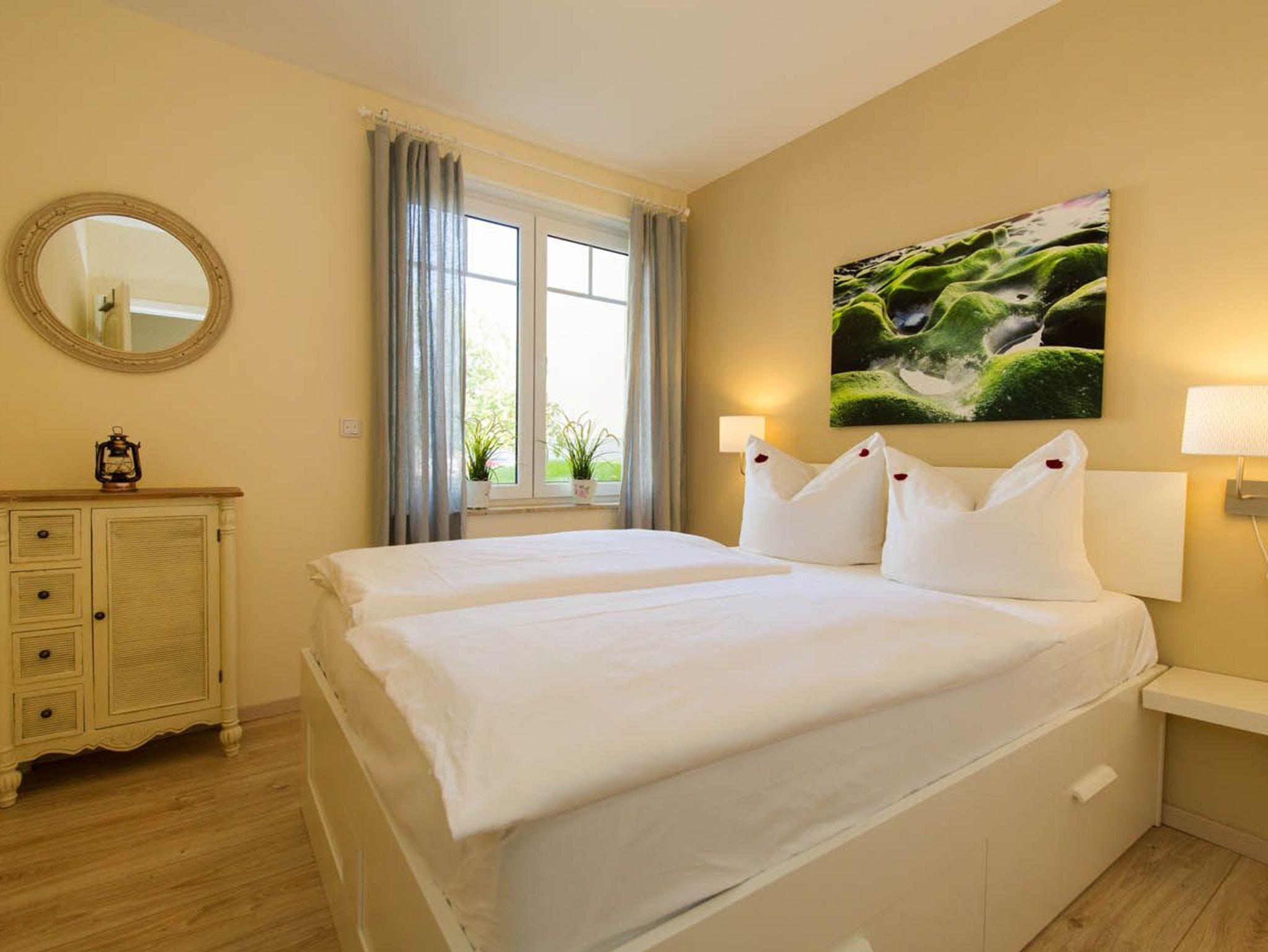 Sowohl für Familien, als auch zu zweit oder 2 befreundete Paare stehen Ihnen hier sehr schöne und hochwertig ausgestattete 3-Raum-Ferienwohnungen zur Verfügung. Alle Ferienwohnungen sind modern eingerichtet und verfügen u. a. über 2 Schlafzimmer und Meerblick. Die Wohnung Nr. 2 bietet darüber hinaus auch einen Kamin.