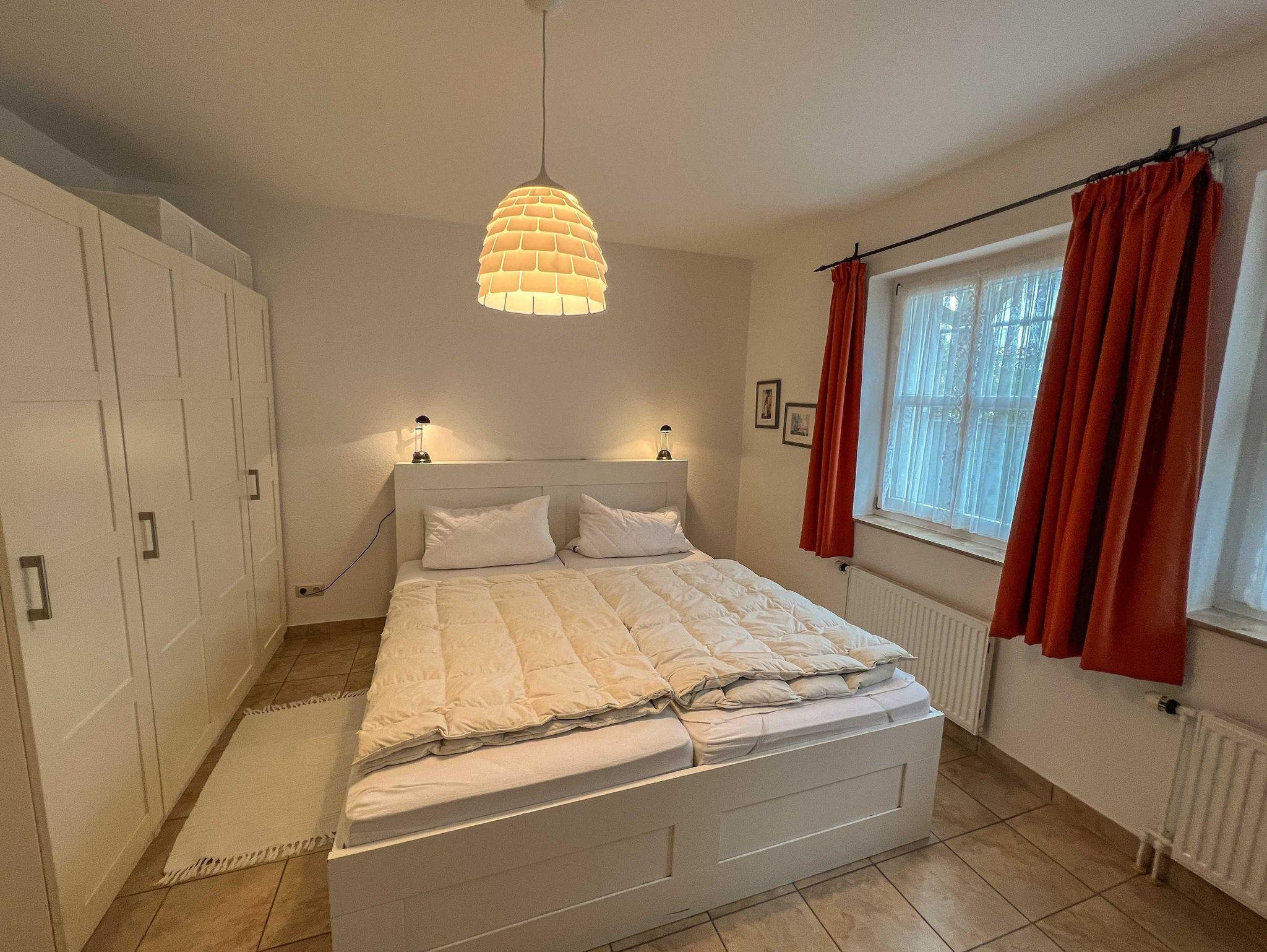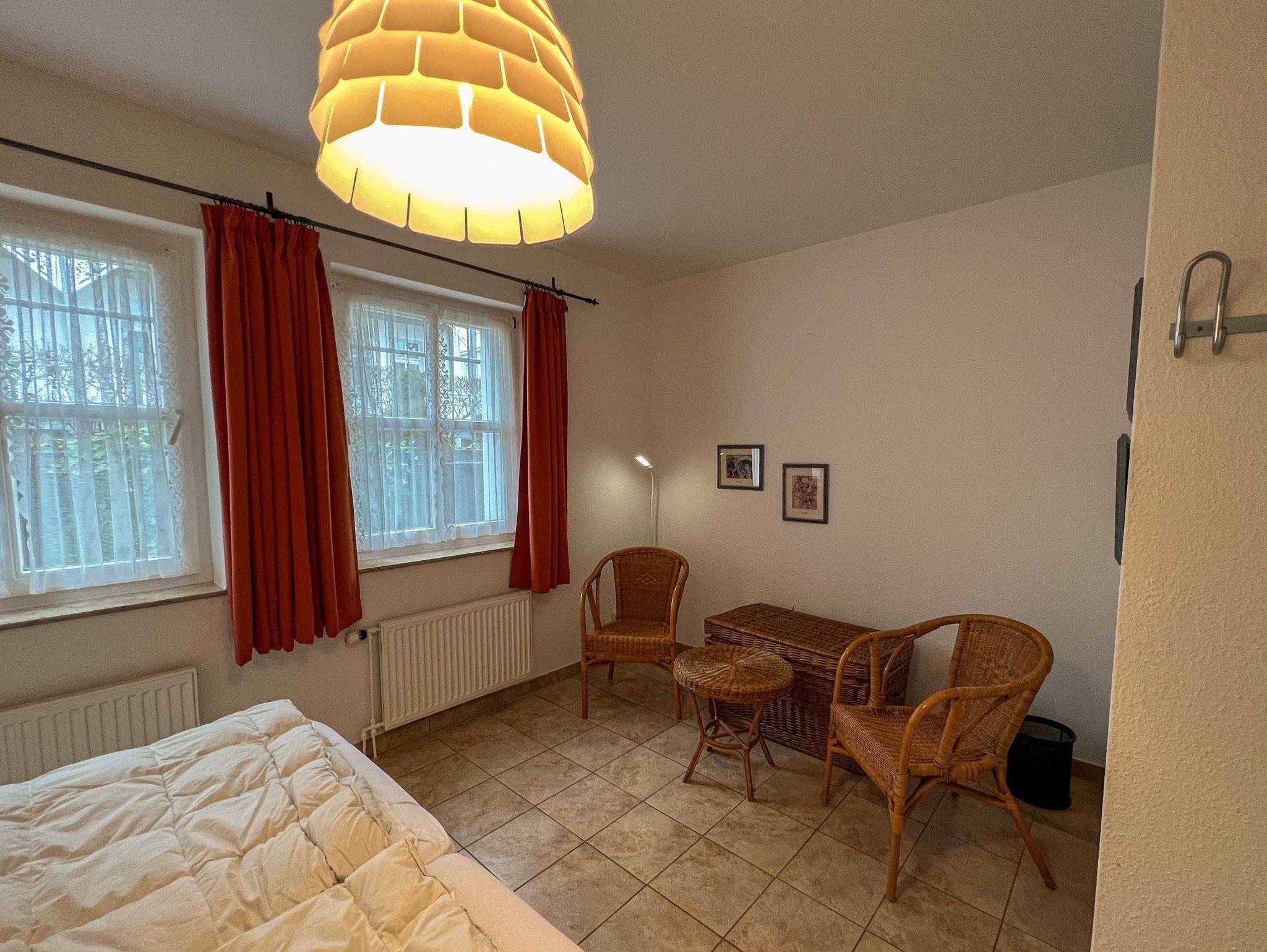 Im Erdgeschoß befinden sich das Schlafzimmer mit einem Doppelbett, Schlafcouch und einer Korbstuhlgarnitur, das Bad mit Dusche / WC, Windfang und Flur mit Garderobe.