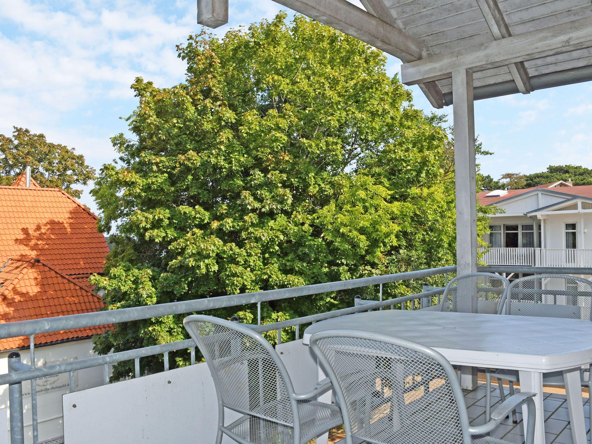 Der schöne Balkon mit Gartenmöbeln lädt zu gemütlichen Stunden ein. Hier können Sie die Abende bei einem Glas Wein ausklingen lassen und jederzeit die gute Ostseeluft und Sonne auf Rügen genießen.