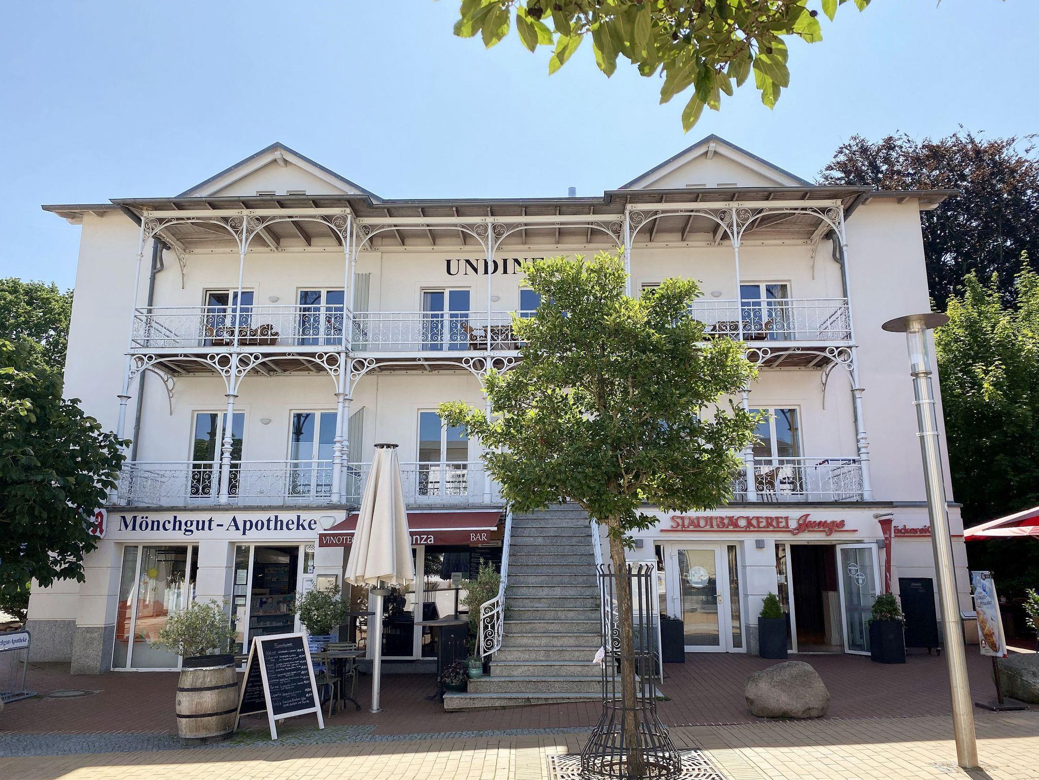 Das Haus Undine ist ein Appartementhaus mit historischer Bäderstilfassade. Es befindet sich im Ortskern von Göhren und bietet einen idealen Ausgangspunkt für Ausflugsziele jeder Art. Von hier aus sind es nur drei Gehminuten über die Flaniermeile bis zum feinen Sandstrand. Eine Apotheke und eine allgemeinmedizinische Arztpraxis für Ihr Wohlbefinden befindet sich im Haus. Eine kleine, aber feine Vinothek wartet auf Ihren Besuch. Die gemütlichen Wohnungen sind mit Fußbodenheizung ausgestattet und verfügen über einen eigenen Stellplatz am Haus. Ein Fahrradverleih befindet sich direkt nebenan.