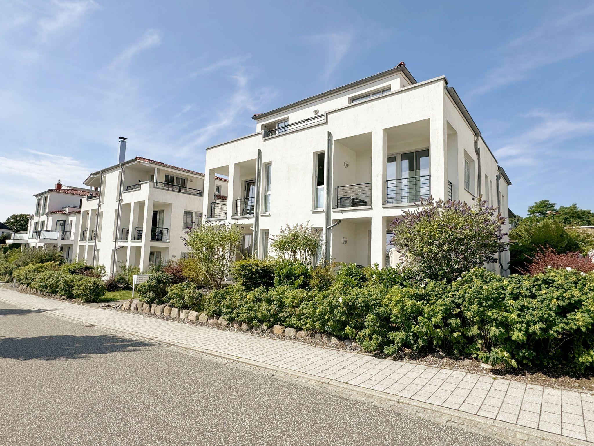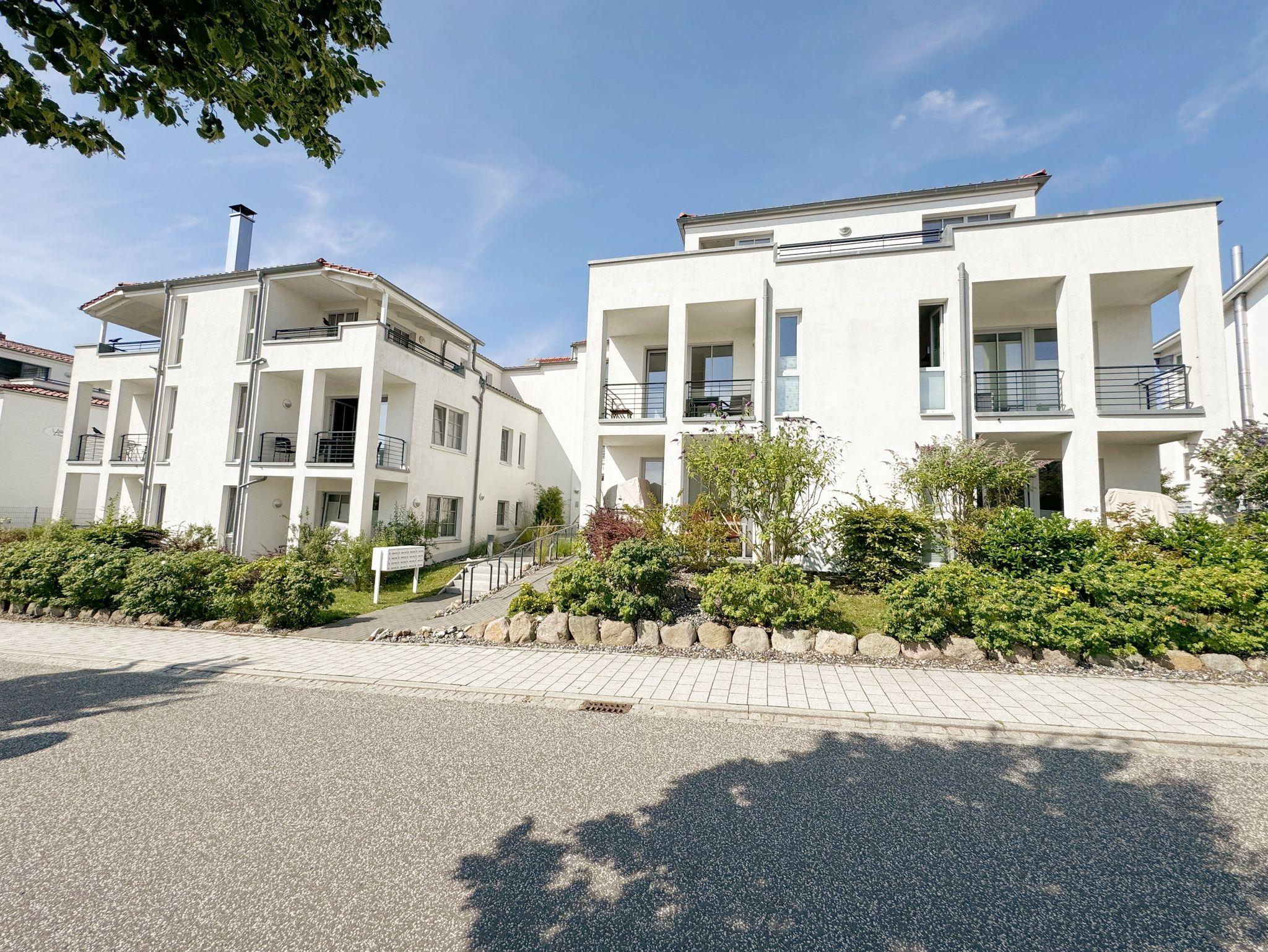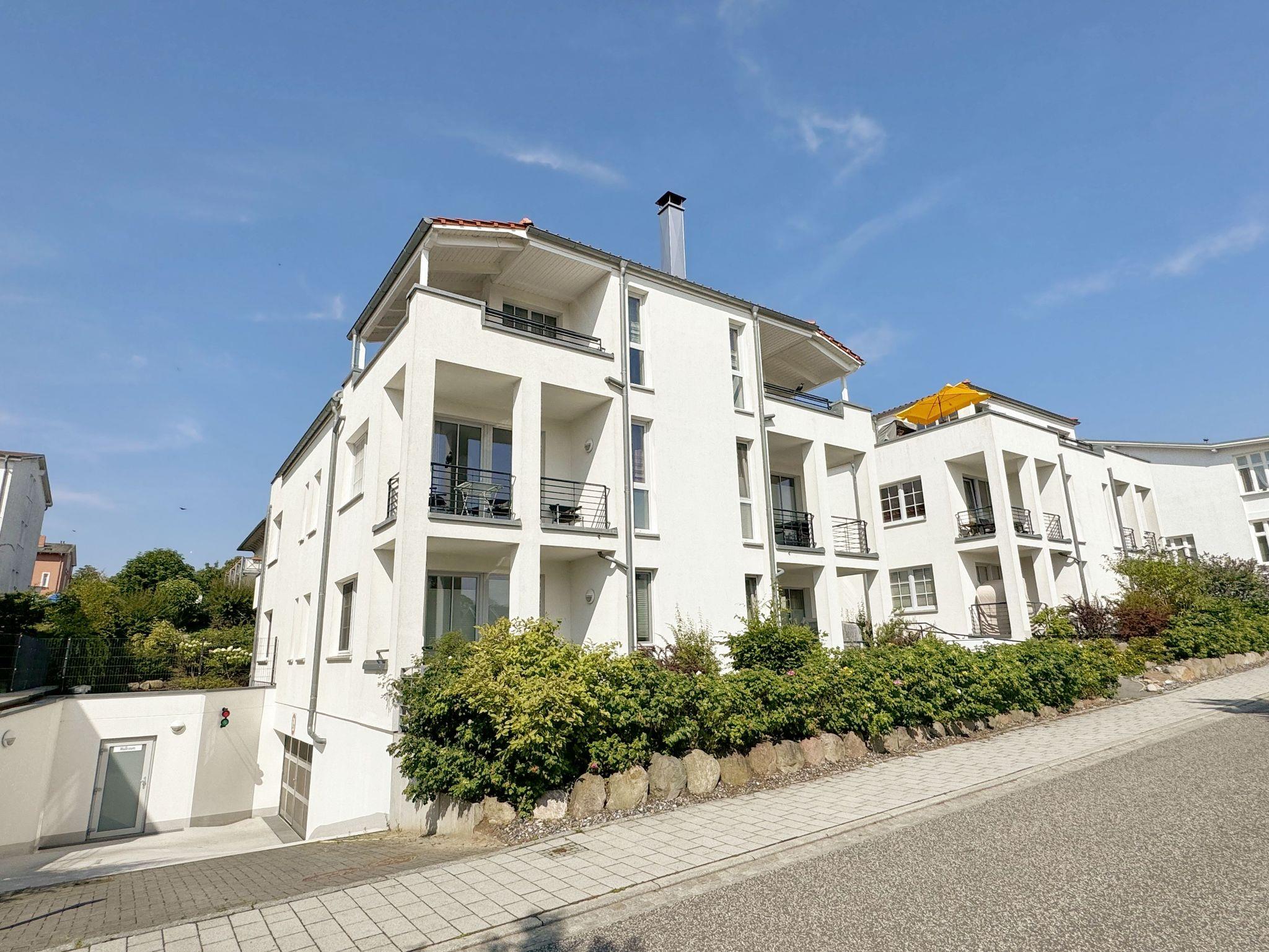 Die weiße Villa in der Lindenstrasse fällt auf im Ortsbild von Göhren: keine vorgehängten Holzbalkone, keine Schnörkel, klare Linien - Villa Antje interpretiert Bäderarchitektur im Stil unserer Zeit, außen wie innen. Komfort und Qualität zeigen sich bei den verwendeten Baumaterialien, an der Tiefgarage wie am Fahrstuhl und letztlich auch an der Lage: Bäcker, Einkaufsmöglichkeiten und Restaurants liegen gleich vor der Tür, zum romantischen Südstrand gehen Sie kaum zehn Minuten und um die Ecke finden sich die schönsten Aussichtspunkte mit weitem Blick über die Halbinsel Mönchgut.