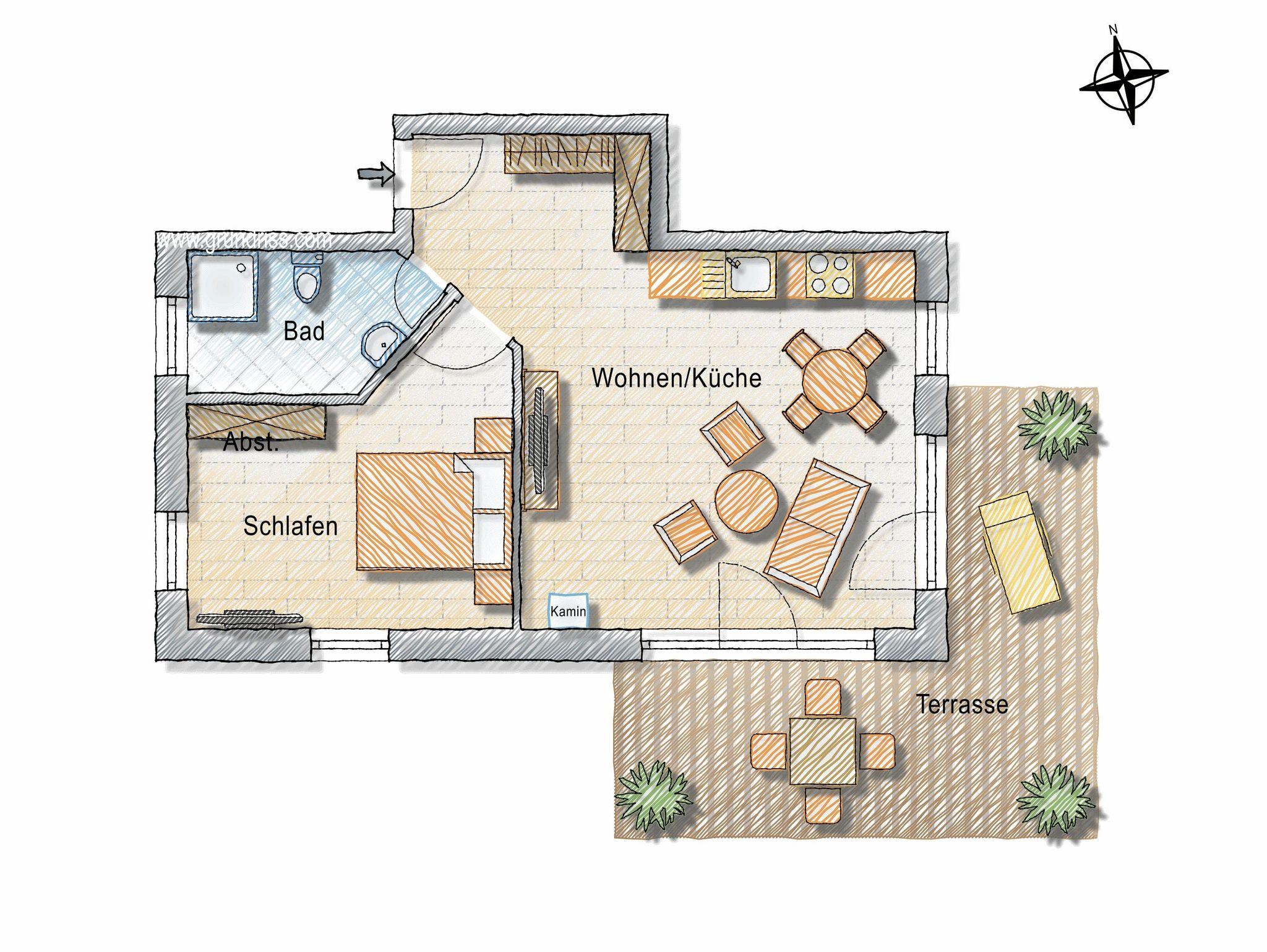 Stillvolle Fewo Nordperd mit Sonnenterrasse und Kaminofen, FeWo 58 qm für max. 4 Gäste SZ