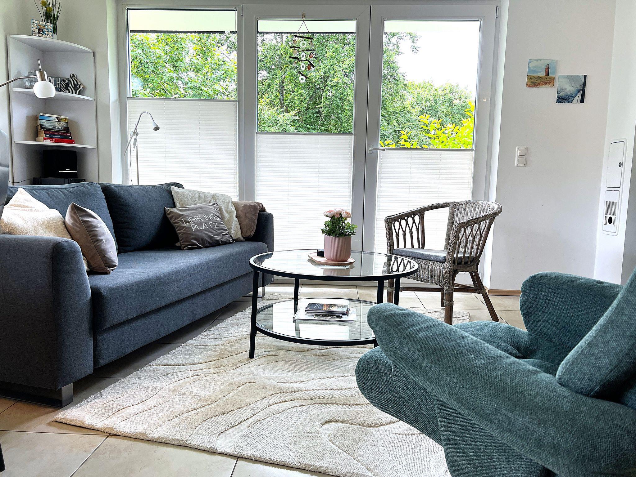 Die Wohnung befindet sich im Erdgeschoss und bietet einen hellen und gemütlichen Wohnbereich mit komfortablem Schlafsofa, eine voll ausgestattete Küche sowie ein Schlafzimmer mit bequemem Bett (160x200). Das moderne Badezimmer ist mit einer großzügige Dusche ausgestattet.