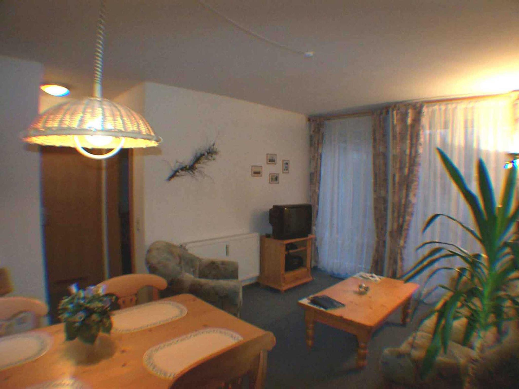 Oder Sie werfen gleich einen Blick ins Wohnzimmer, das mit seinem Comfort (Teppichboden, zweiteilige Couchgarnitur, Essecke, Kabel TV, Radio mit Kassetten- und CD-Funktion, verschiedene Bücher und Gesellschaftsspiele) eine angenehme Stätte der Erholung bietet.
