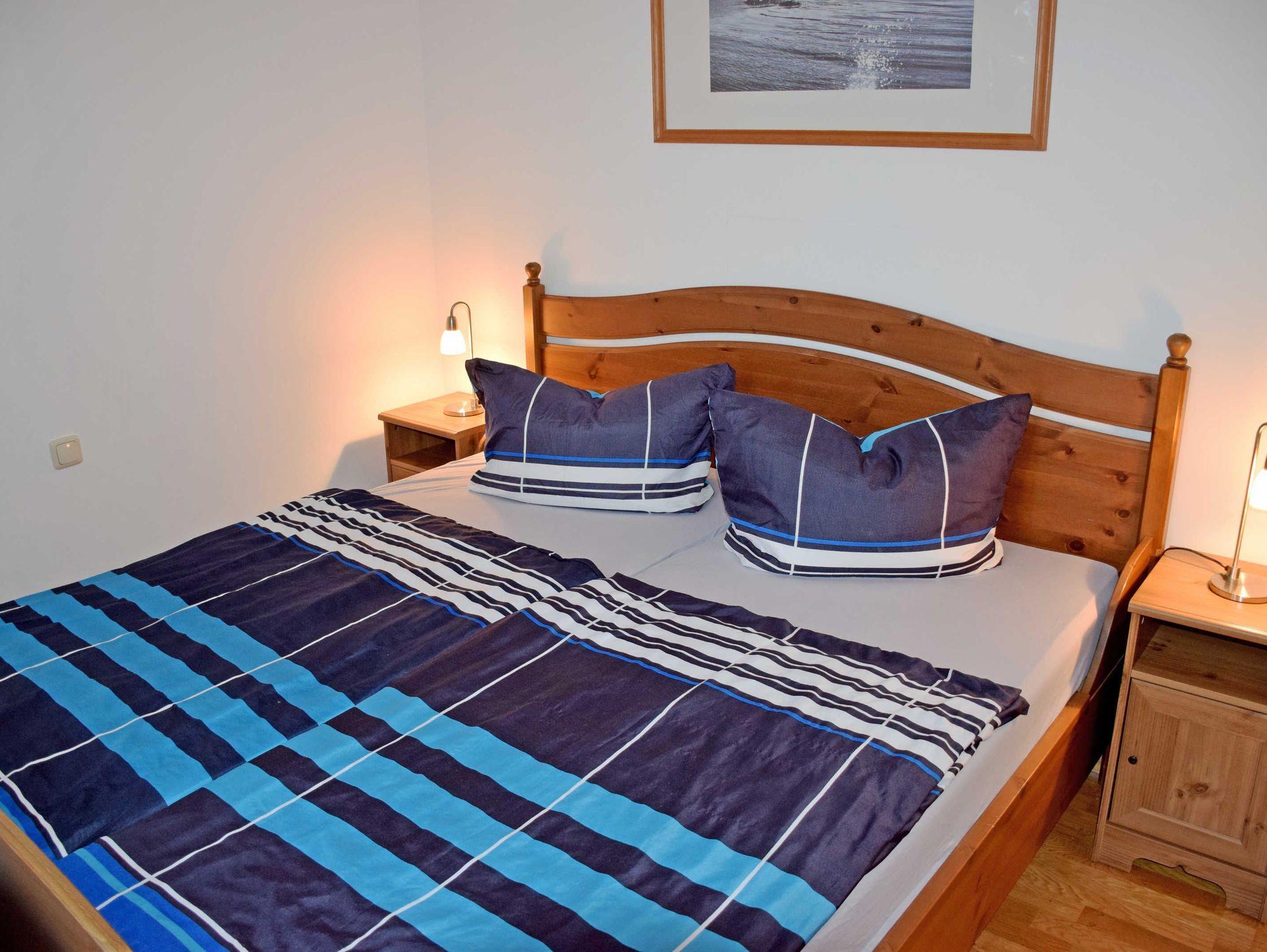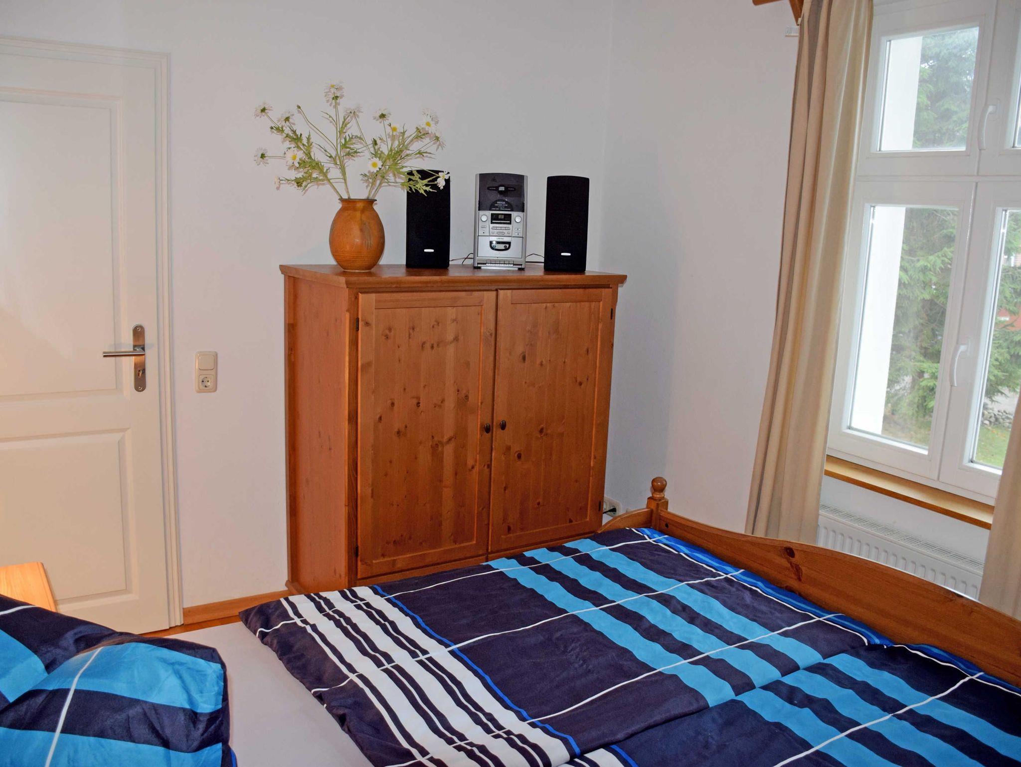 1 Schlafzimmer mit Doppelbett (180 x 200 cm), Nachttischen und großer Kommode sowie CD-Radio-Anlage.