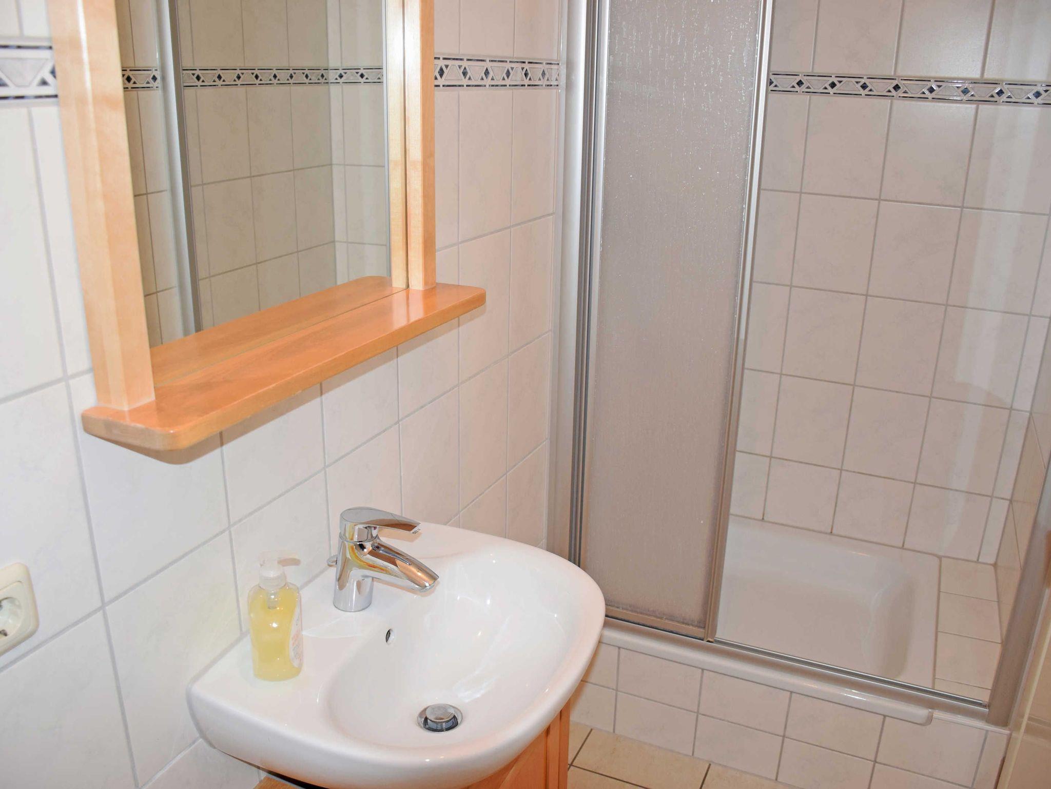 1 Bad mit Dusche, WC und Fön sowie Fußbodenheizung.