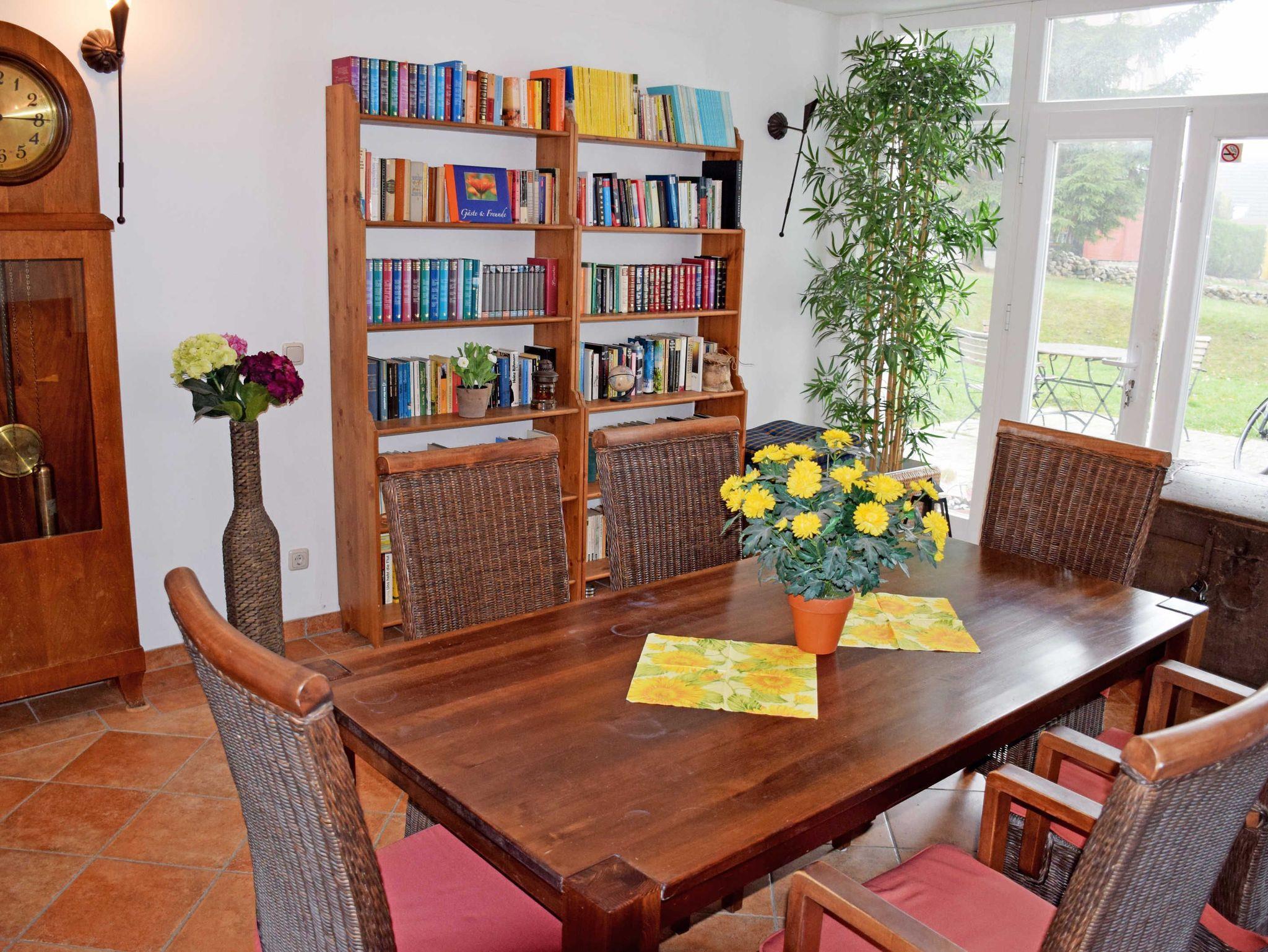 Die vier Nichtraucher-Ferienwohnungen (separater Eingang, 25-35 qm, 1 Wohnzimmer, 1-2 Schlafzimmer, Küchenzeilen, Bad mit Dusche oder Wanne und WC, WLAN-Internet, max. 2 - 4 erwachsene Gäste und ein Kind im Kinderreisebett) sind modern und komfortabel eingerichtet. Zum Objekt gehört im Erdgeschoss ein großer Aufenthaltsraum mit kleiner Bibliothek und Kamin, der zum Verweilen und Entspannen einlädt. Der Innenhof mit einem Grillkamin sowie einer allgemein zugänglichen Terrasse ist für alle Urlauber des Hauses nutzbar.
