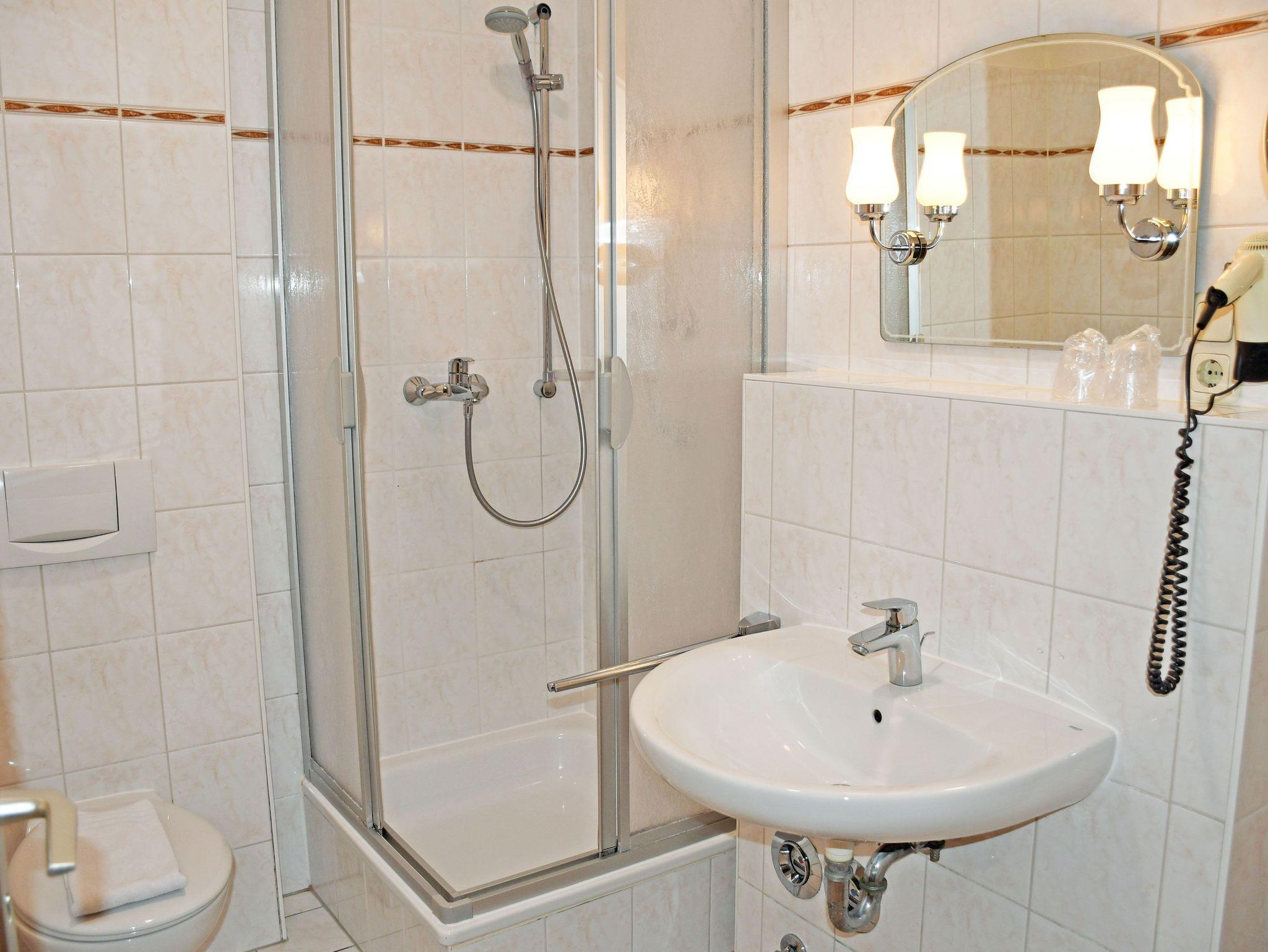 Bad mit Dusche, WC und Föhn
