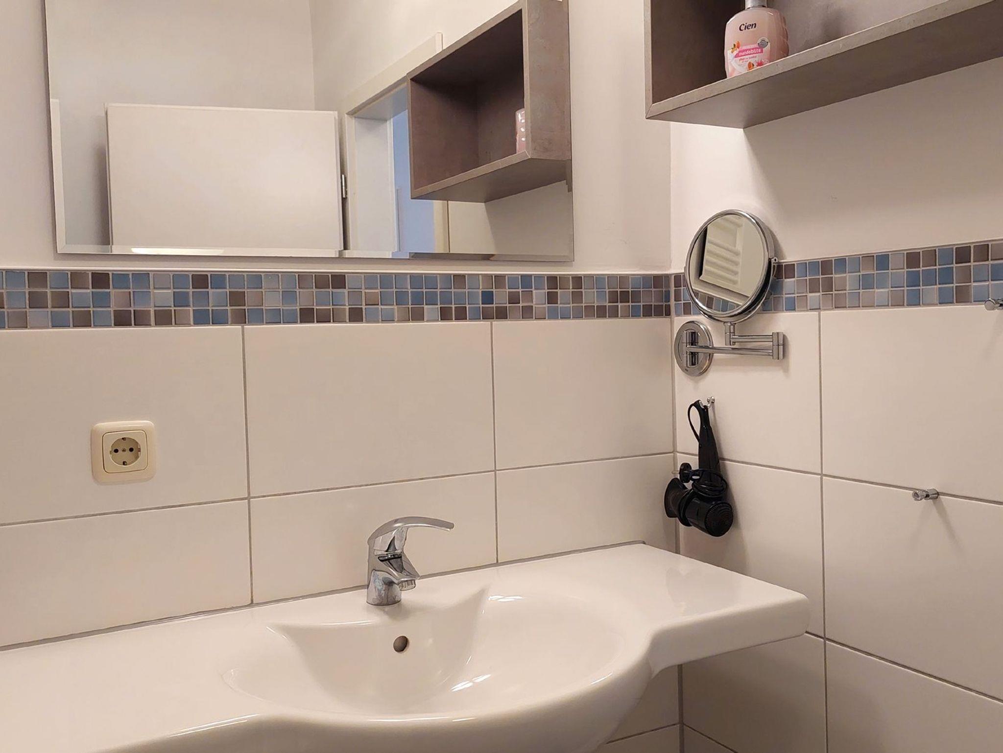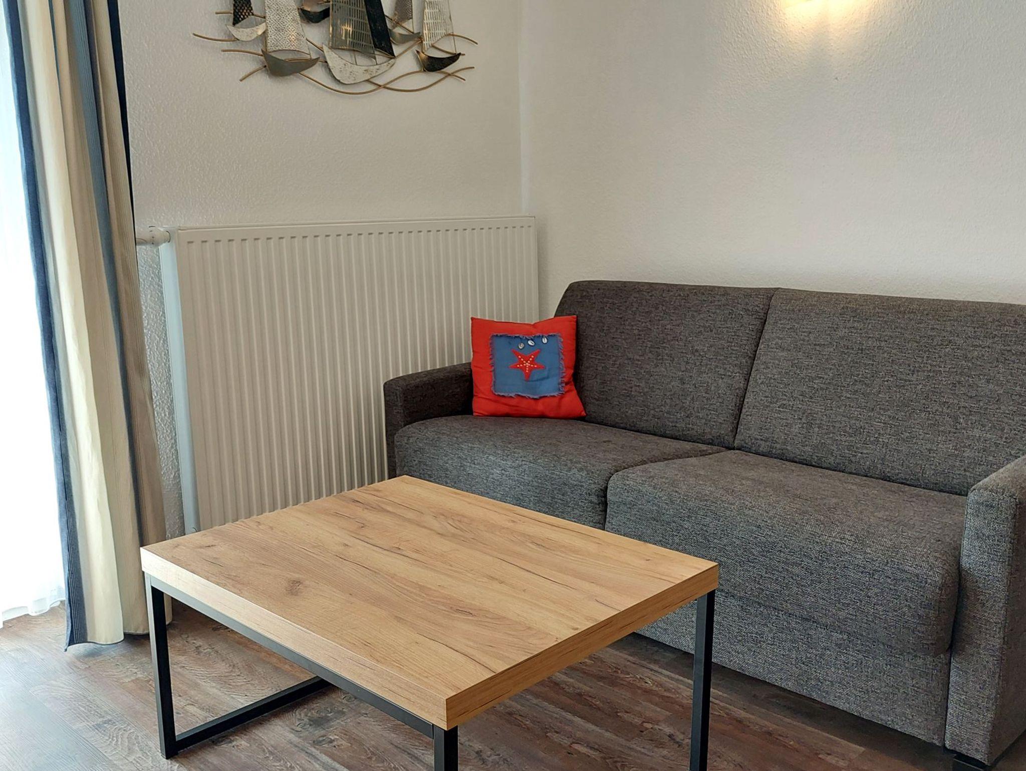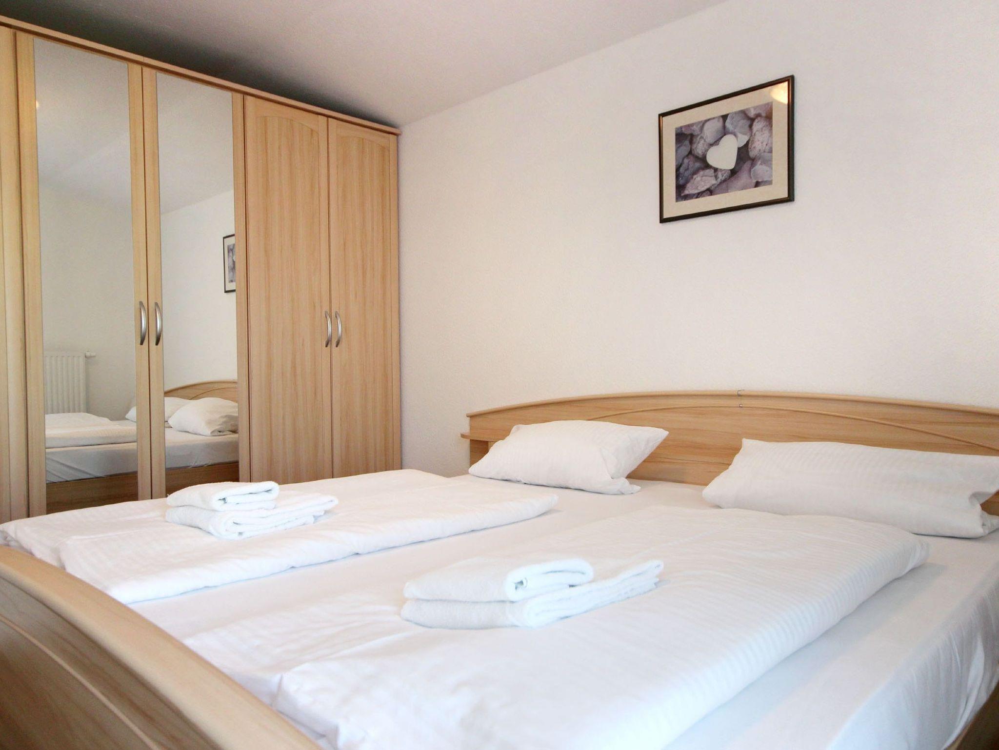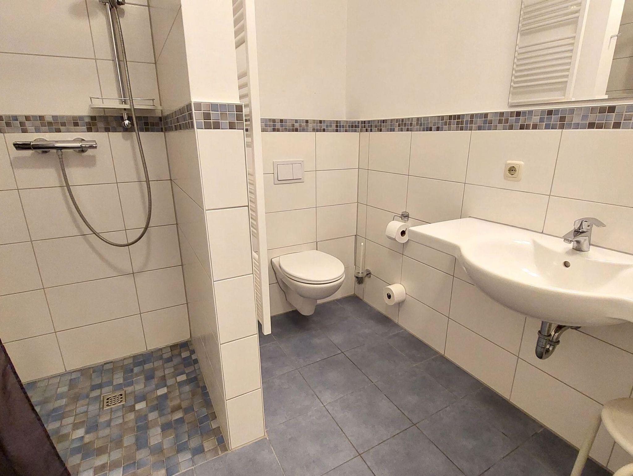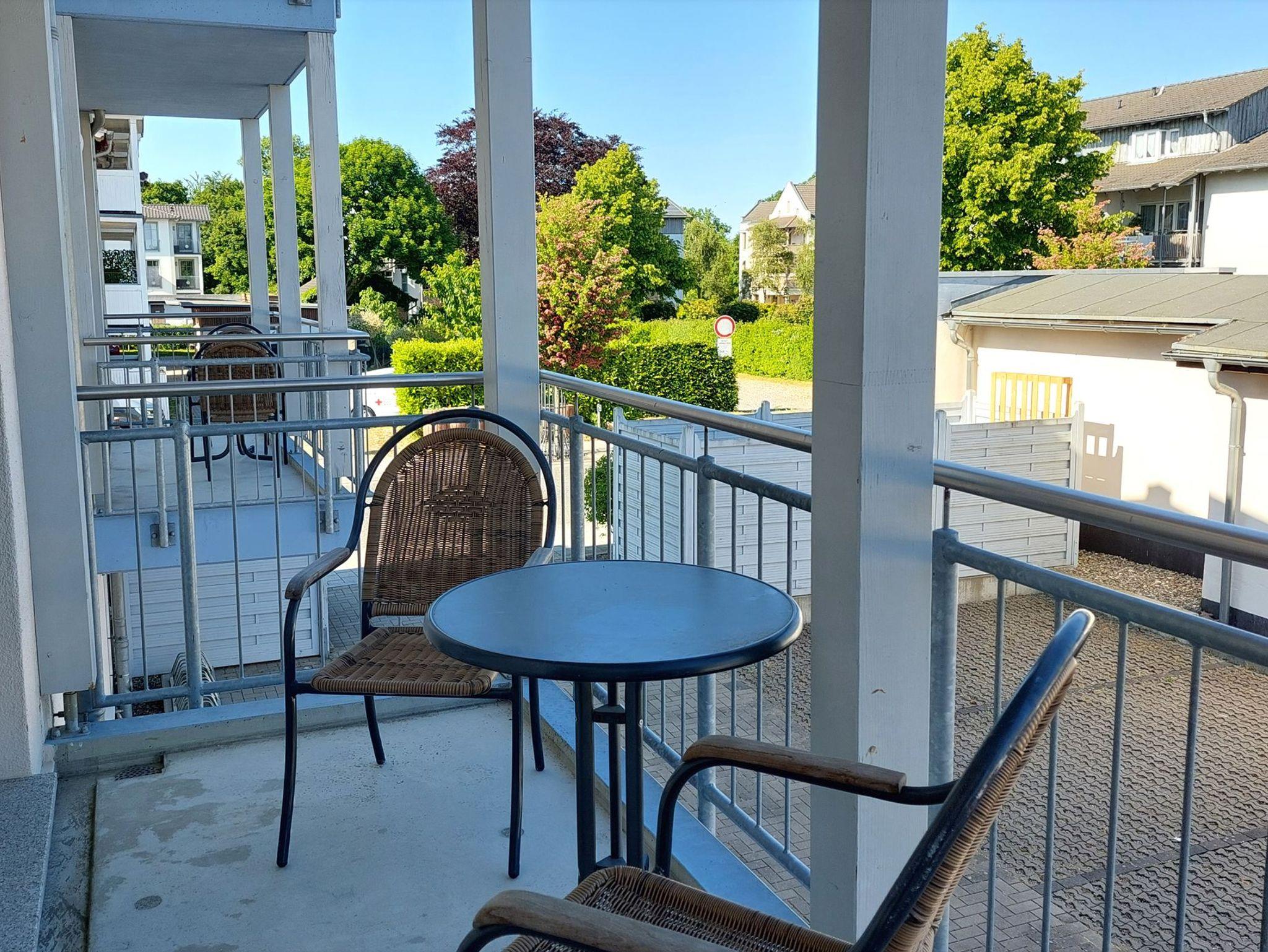 Diese freundliche Wohnung ist aufgeteilt in einen Wohnraum mit Balkon und integrierter Küchenzeile, ein Schlafzimmer ebenso mit Zugang zum Balkon und ein Duschbad mit Waschtisch und WC. Das Wohnzimmer begrüßt Sie mit einem Schlafsofa und Sessel sowie Flachbild-TV. Das Schlafzimmer verfügt über ein Doppelbett (1,80m x 2m) sowie einen Kleiderschrank. Die Küchenzeile ist mit Backofen, Geschirrspüler, Cerankochfeld, Kühlschrank mit kleinem Gefrierfach, Cerankochfeld, Mikrowelle, Kaffeemaschine, Wasserkocher und Toaster ausgestattet. Highlights: Kostenfreies WLAN sowie ein frei wählbarer PKW-Stellplatz direkt am Haus.