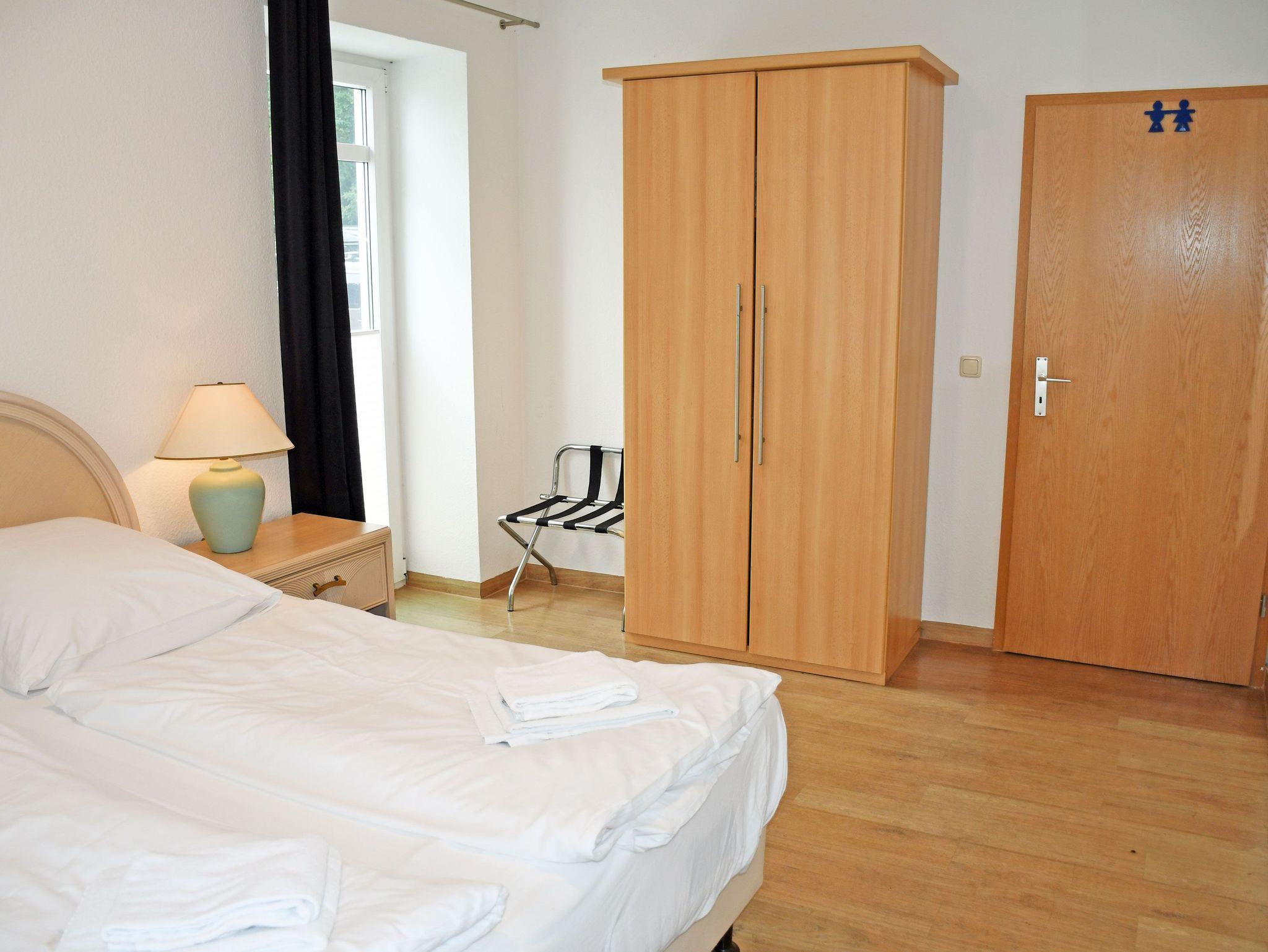 Schlafzimmer mit einem Doppelbett (180 x 200 cm) und großem Kleiderschrank