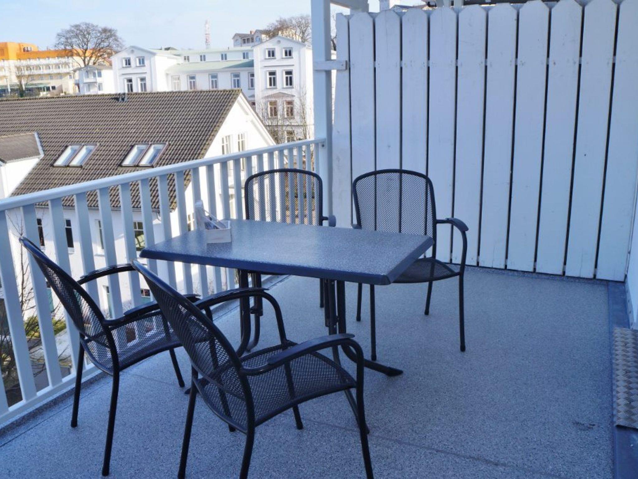 Ein Nordbalkon mit Gartenmöbeln lädt zum Relaxen ein.