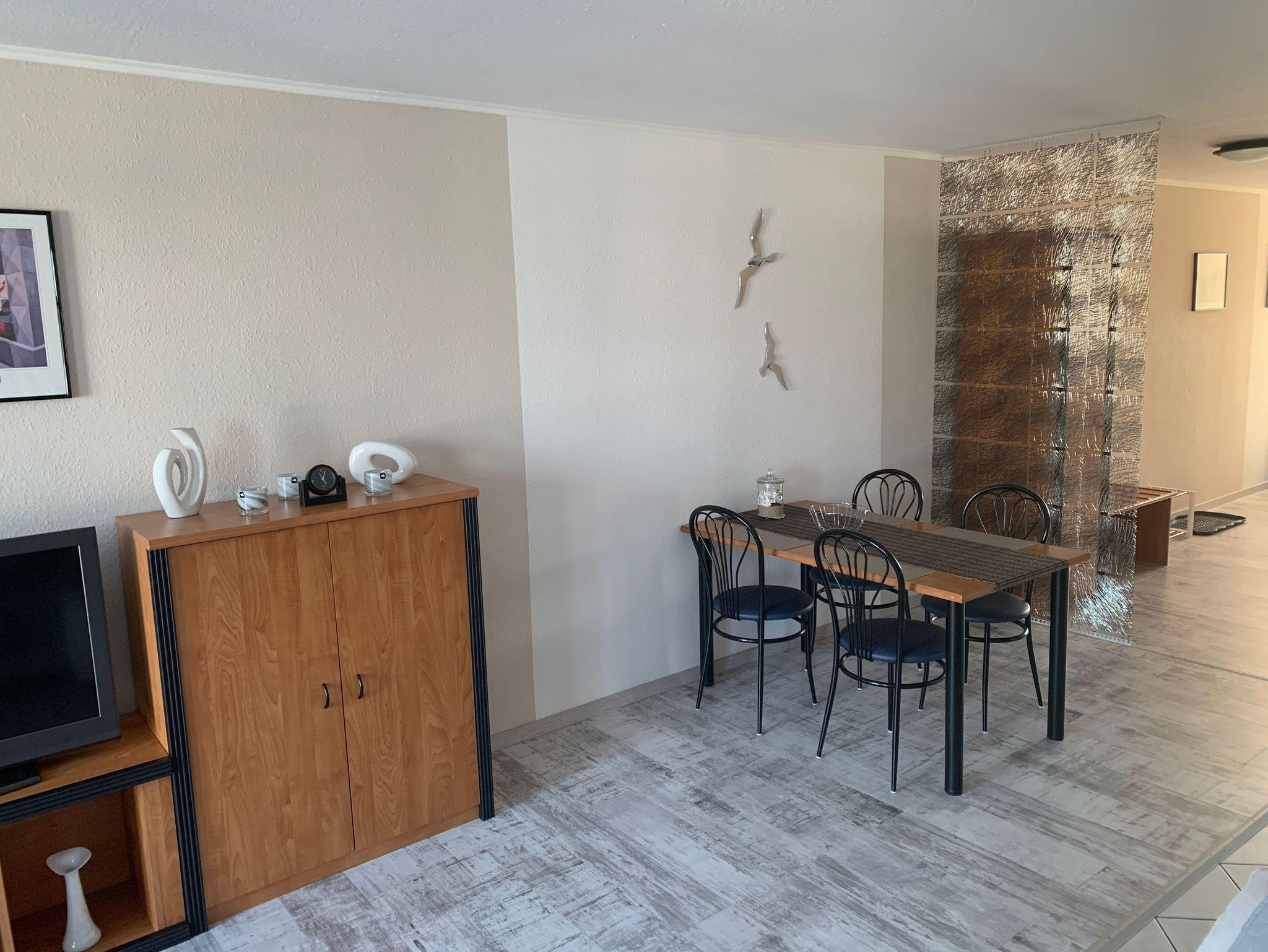 Die Wohnung besteht aus einem Schlafzimmer mit Doppelbett, einem Wohnzimmer mit Schlafsofa, TV mit Videotext und Radio, DVD-Player, einer komplett eingerichteten Küchenzeile (Backofen, Mikrowelle, Kaffeemaschine,Toaster und jegl. Utensilien) mit extra Essbereich. Ein Badezimmer mit Dusche/WC gehört mit zur Aufteilung.