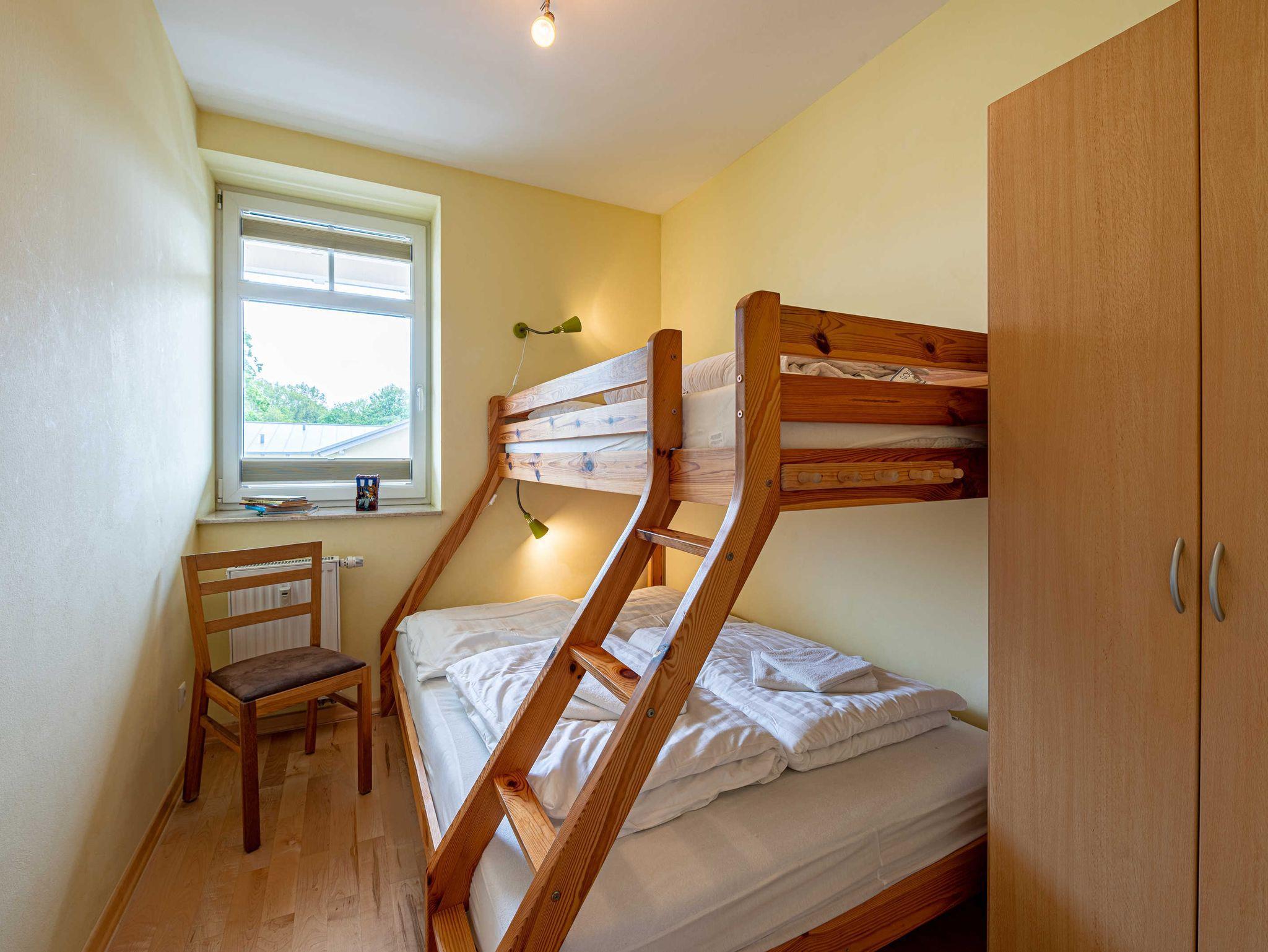 Schlafen 2: Doppelstockbett (unten 1,40 x 2,00 m oben 0,90 x 2,00 m) Verdunkelungsmöglichkeit,