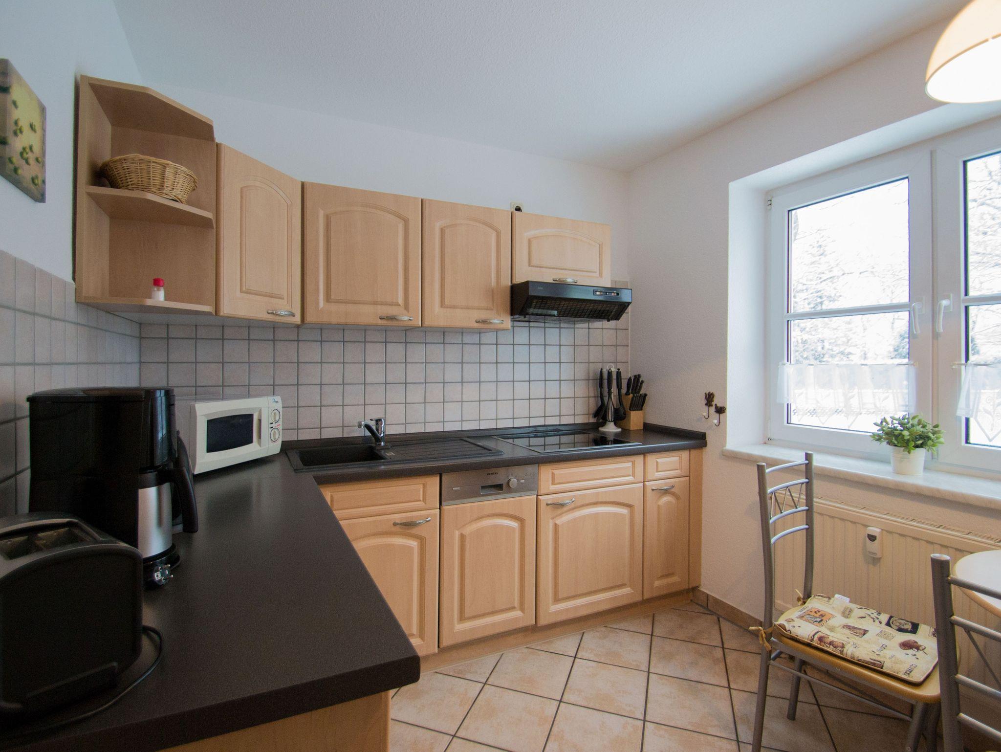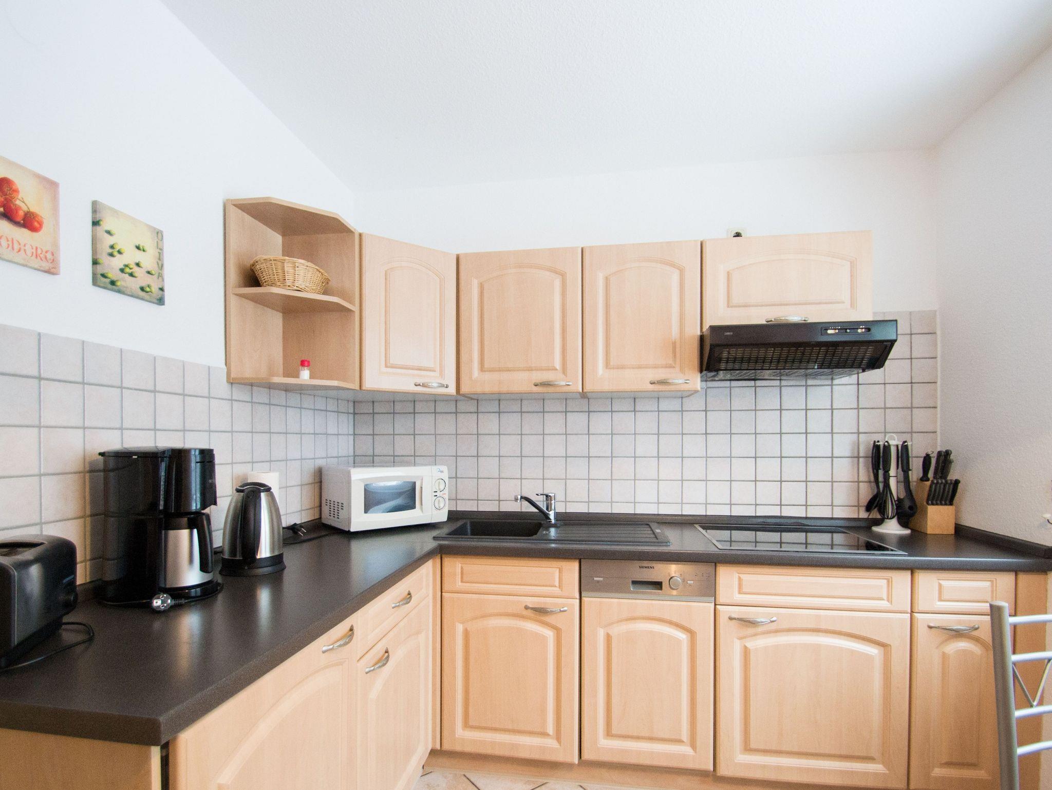 Die Küche ist mit 4 Herdplatten, Geschirrspüler, Kaffeemaschine, Mikrowelle, Toaster, Wasserkocher und diversen Küchenutensilien bestens ausgestattet.