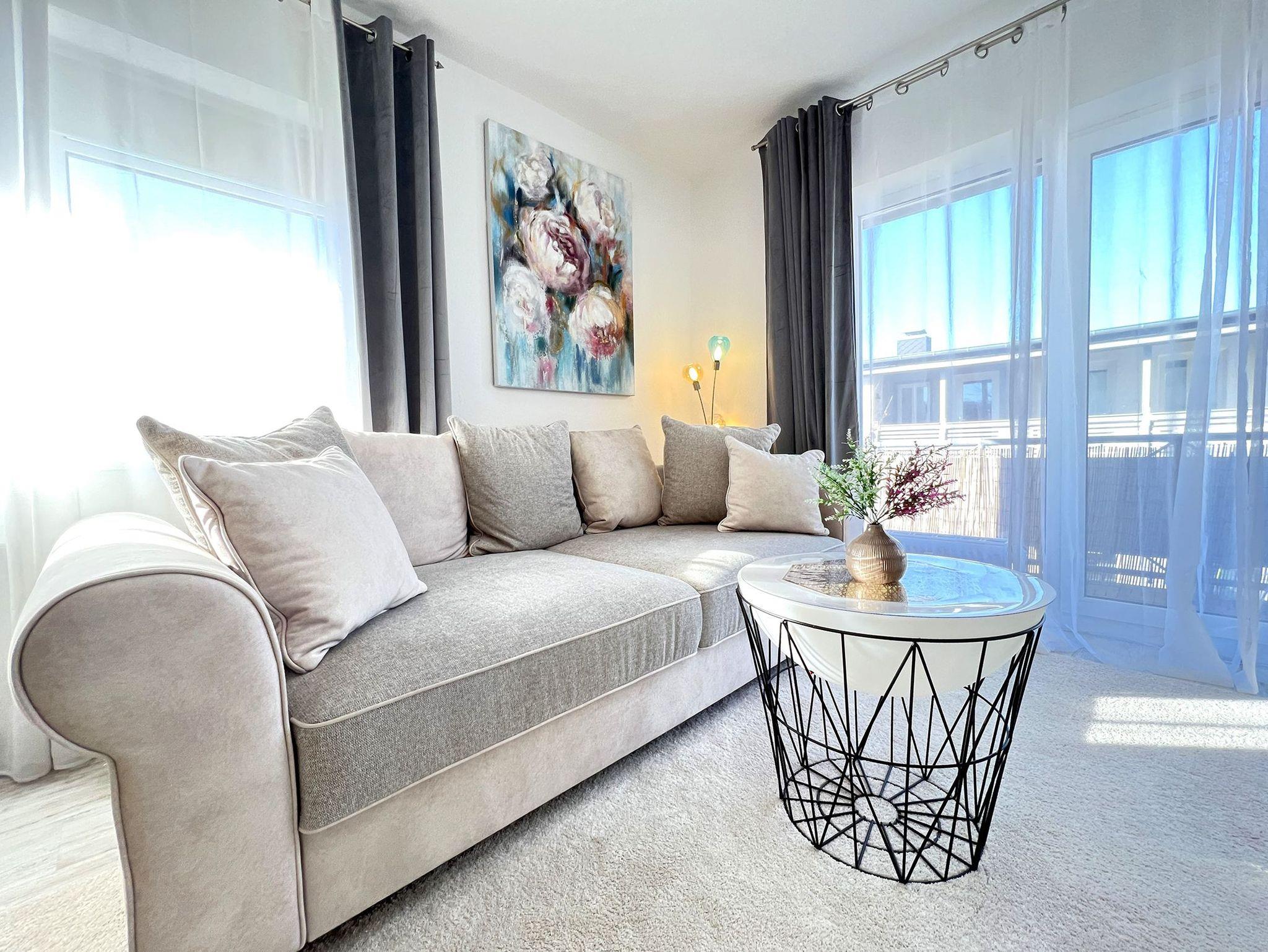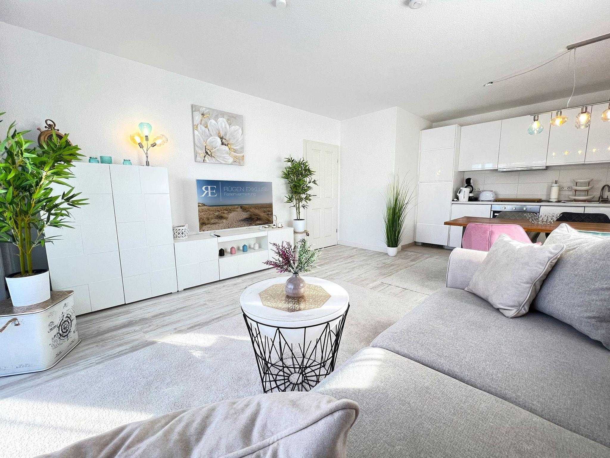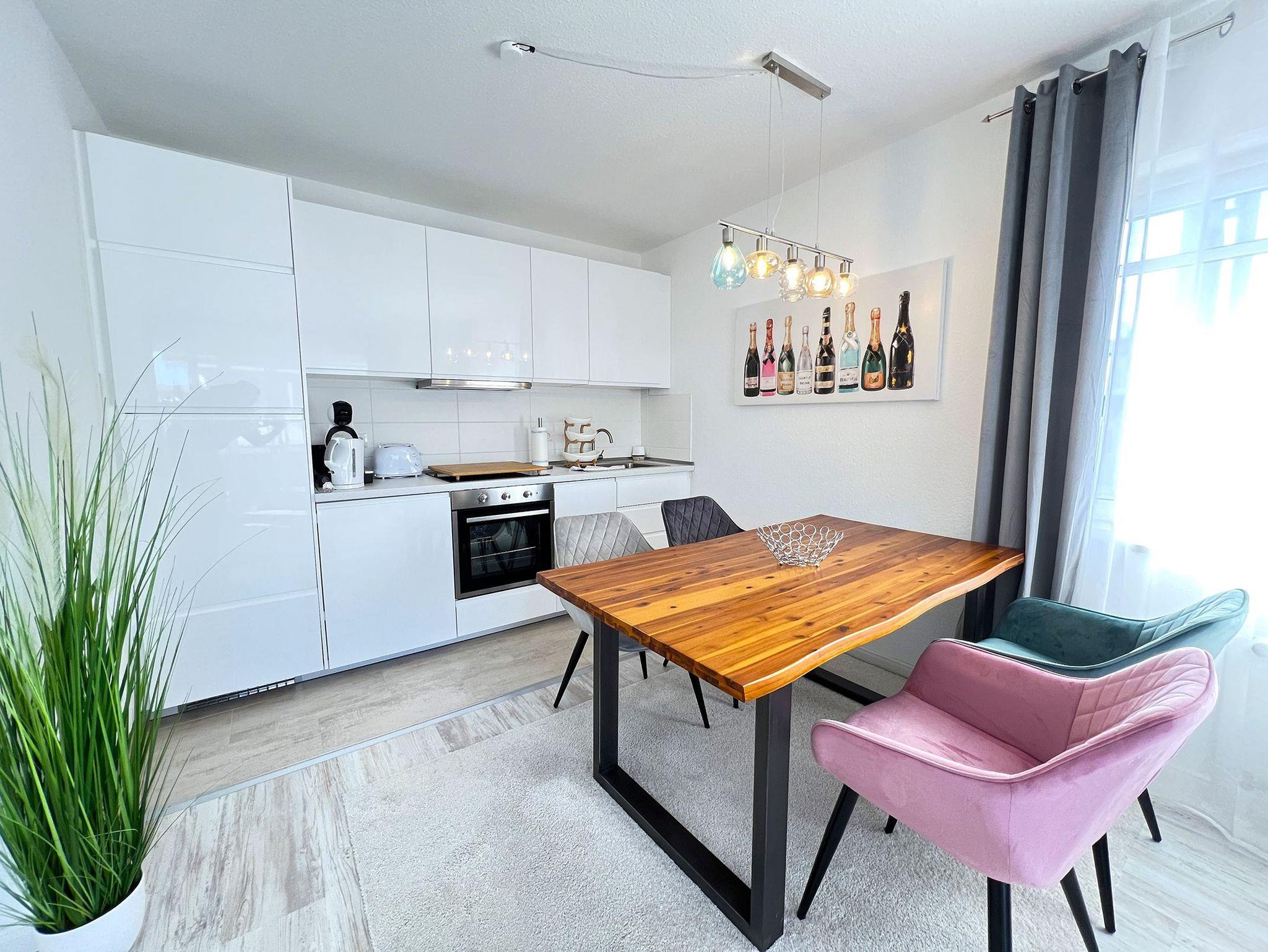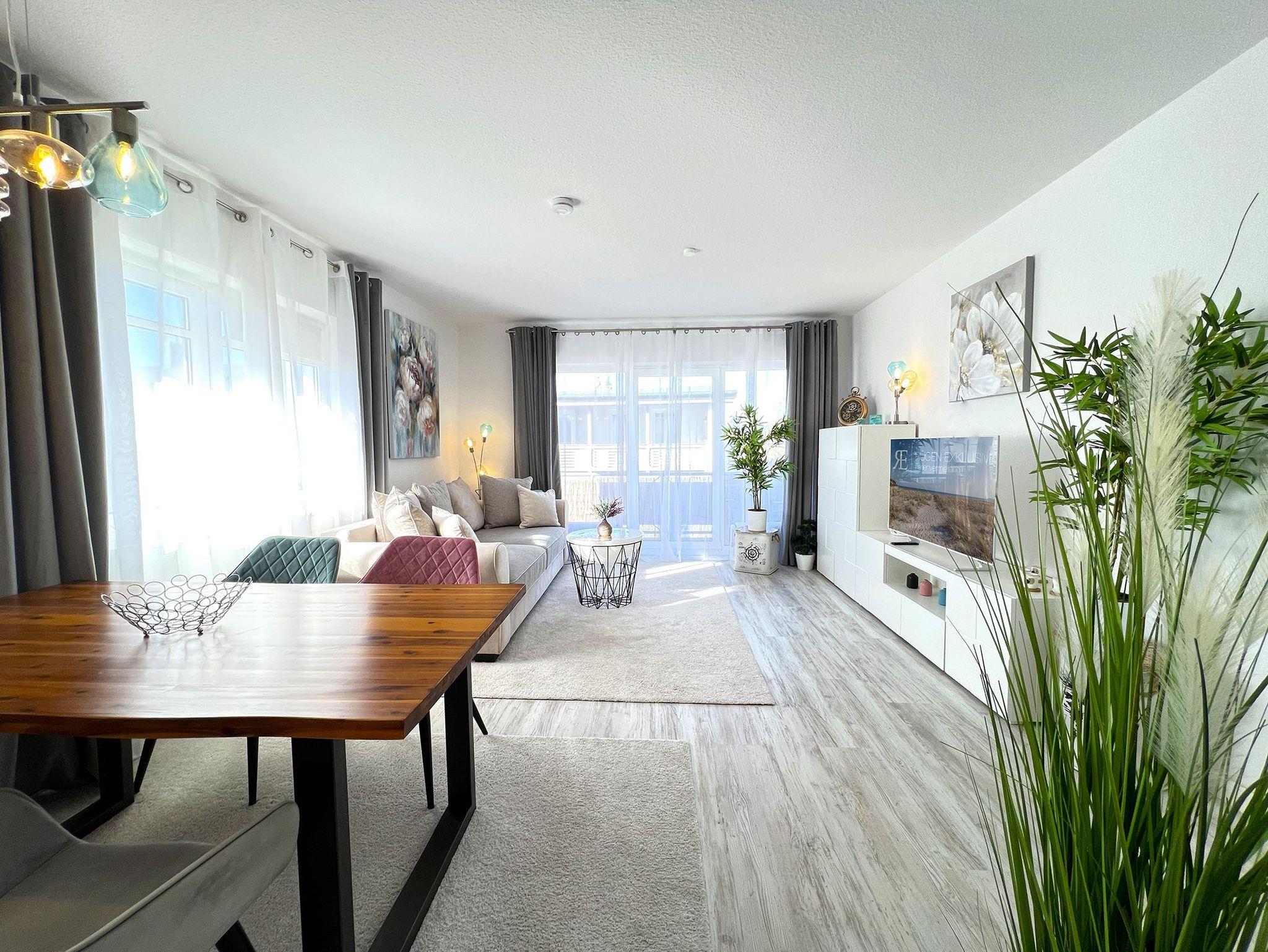 Die Lindenkoje im 1. Obergeschoss vereint stilvolles Design mit maritimem Charme und bietet den perfekten Rückzugsort für einen entspannten Urlaub in Göhren. Die großzügige offene Wohnküche ist hochwertig ausgestattet und lässt keine Wünsche offen ? ideal für gemütliche Kochabende oder ein ausgiebiges Frühstück mit frischen Brötchen vom Bäcker um die Ecke. Der angrenzende Wohnbereich lädt mit einem bequemen Sofa zum Entspannen ein, während große Fenster für viel Licht und eine freundliche Atmosphäre sorgen.