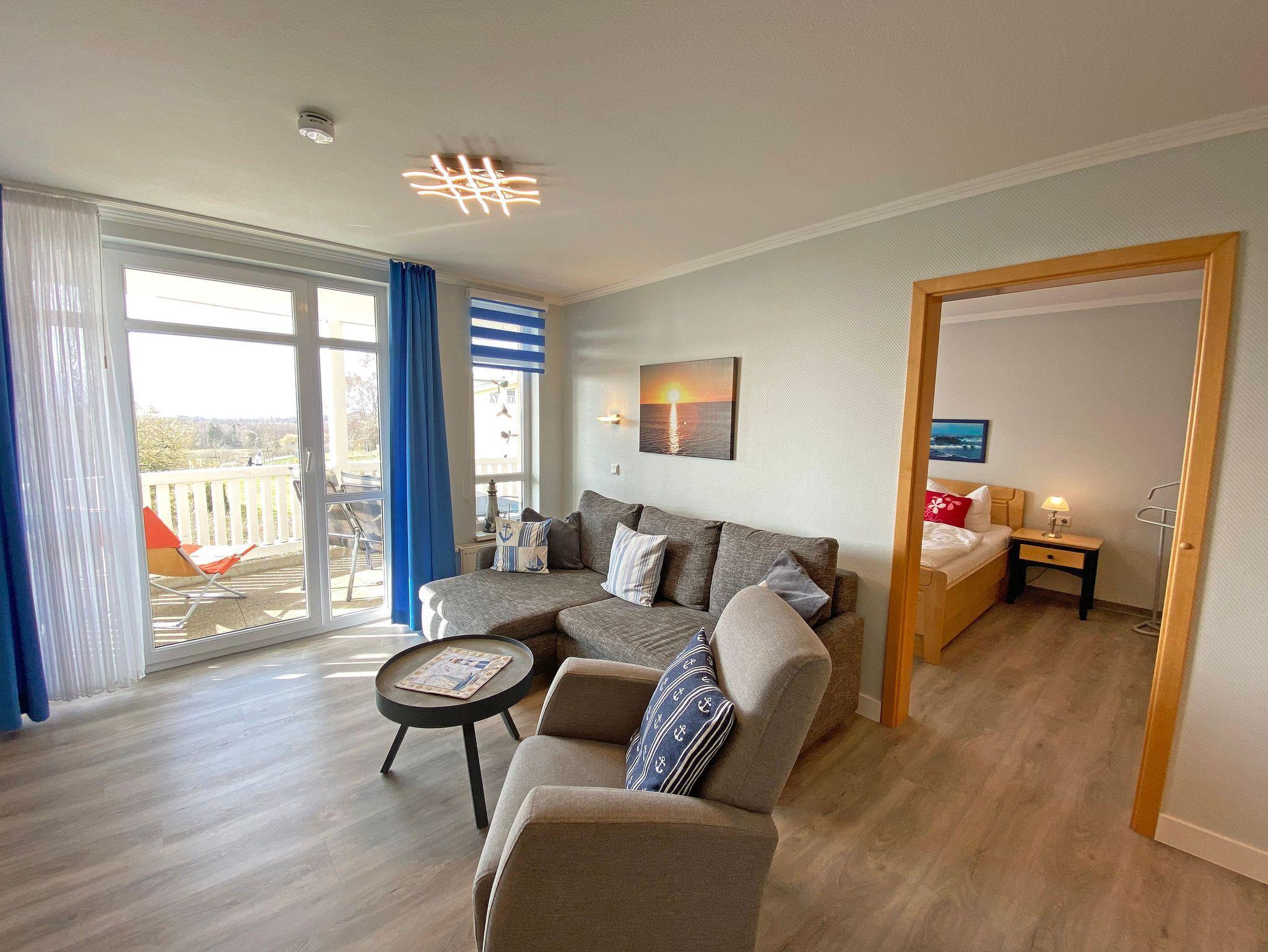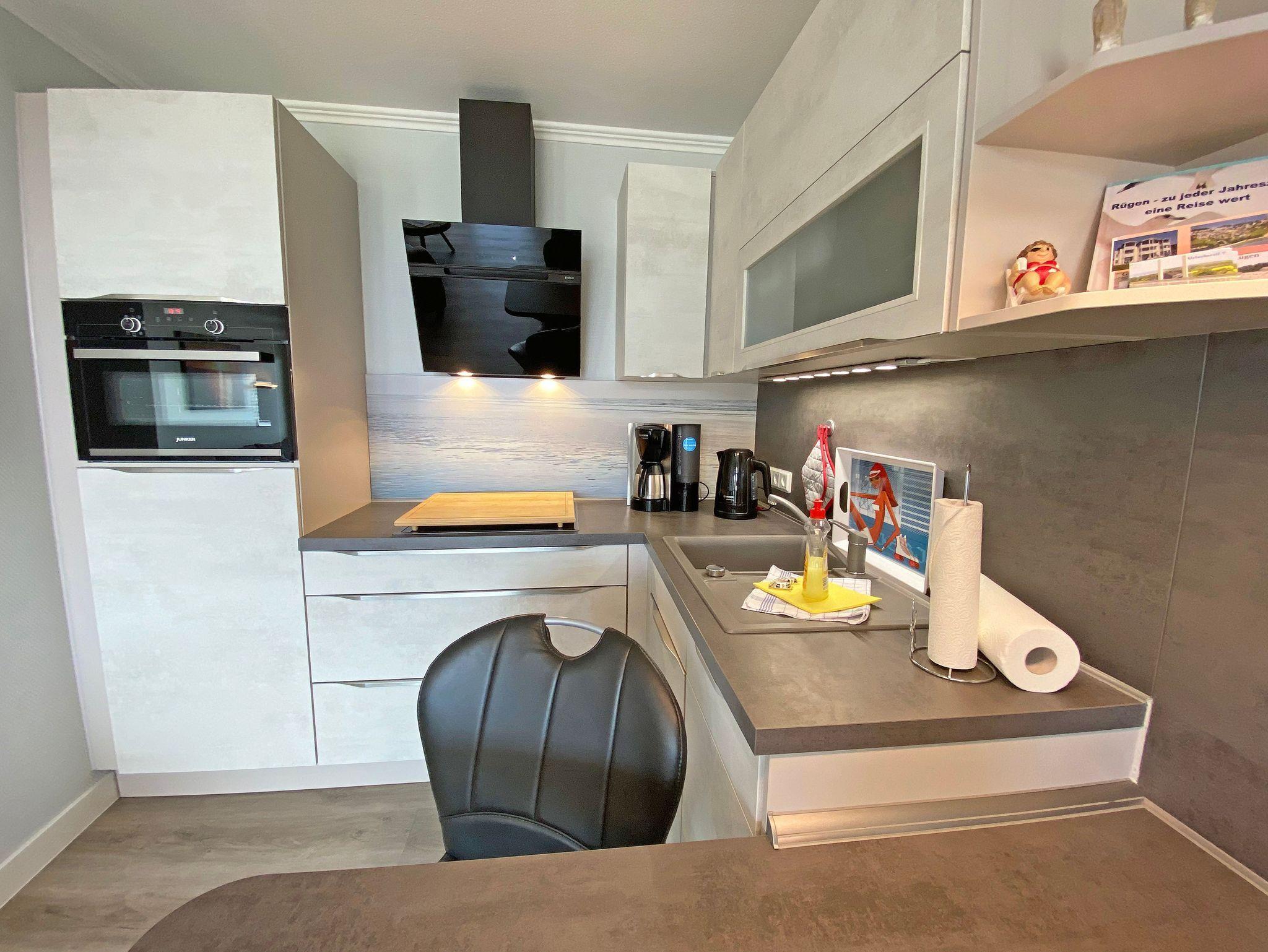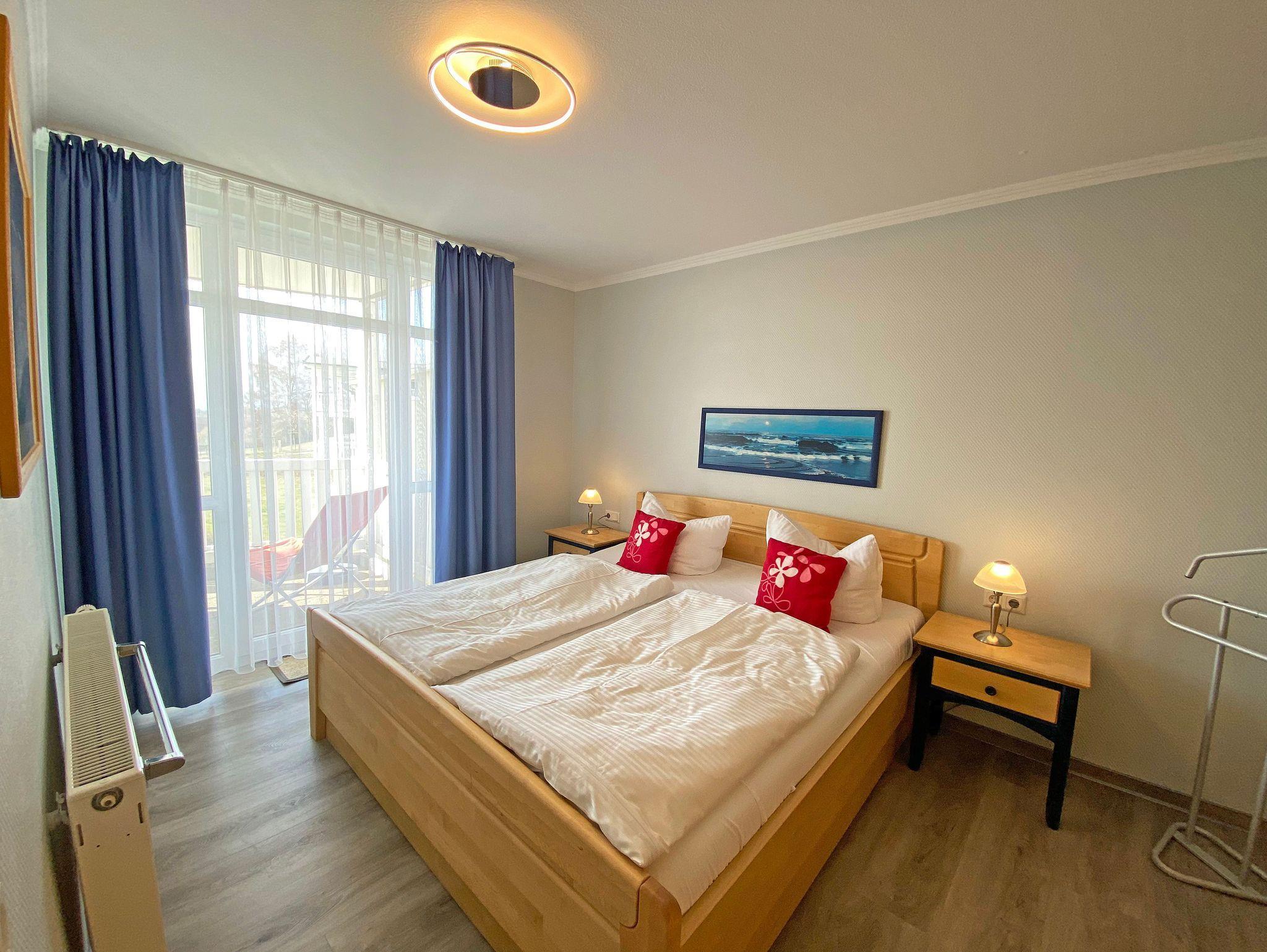 Unsere komfortable Nichtraucherwohnung von ca. 50 qm ist für max. 2 Erwachsene ausgestattet. Sie verfügt über ein Schlafzimmer mit Doppelbett (1,80m x 2,00m), verstellbare Lattenroste, Nachttischkonsolen, Verdunklungsvorhänge und Kleiderschrank. Der Wohnbereich ist mit einer Sitzecke, Leselampe, TV-Board, LCD-TV, DVD-Player und Ministereoanlage eingerichtet. Das Badezimmer ist mit einer Dusche, WC, Kosmetikspiegel und Fön ausgestattet. Die Küchenzeile bietet einen Esstisch und Bestuhlung, Geschirrspüler, 4 Herdplatten mit Backofen, Kühlschrank mit Eisfach, Toaster, Kaffeemaschine, Wasserkocher und diverse Küchenutensilien. Vom bestuhlten Balkon aus genießen Sie die einmalige Aussicht auf die Ostsee. WLAN ist für Sie inklusive nutzbar. Ein PKW-Stellplatz (Nr. 05) sowie eine Unterstellmöglichkeit für Ihre Fahrräder ist am Haus vorhanden. Haustiere sind in der Wohnung nicht gestattet!!! Die Erstausstattung von 2 Wäschepaketen sind ab 5 Nächte inklusive. Jede weitere Erstausstattung eines Wäschepaketes (komplette Bettwäsche, 1 Duschhandtuch, 1 kleines Handtuch) können Sie bis 14 Tage vor Anreise gegen einen Aufpreis dazu buchen oder durch eigene ergänzen. Ab 2 gebuchten Paketen erhalten Sie einmalig 1 Geschirrhandtuch und 1 Duschvorleger hinzu.