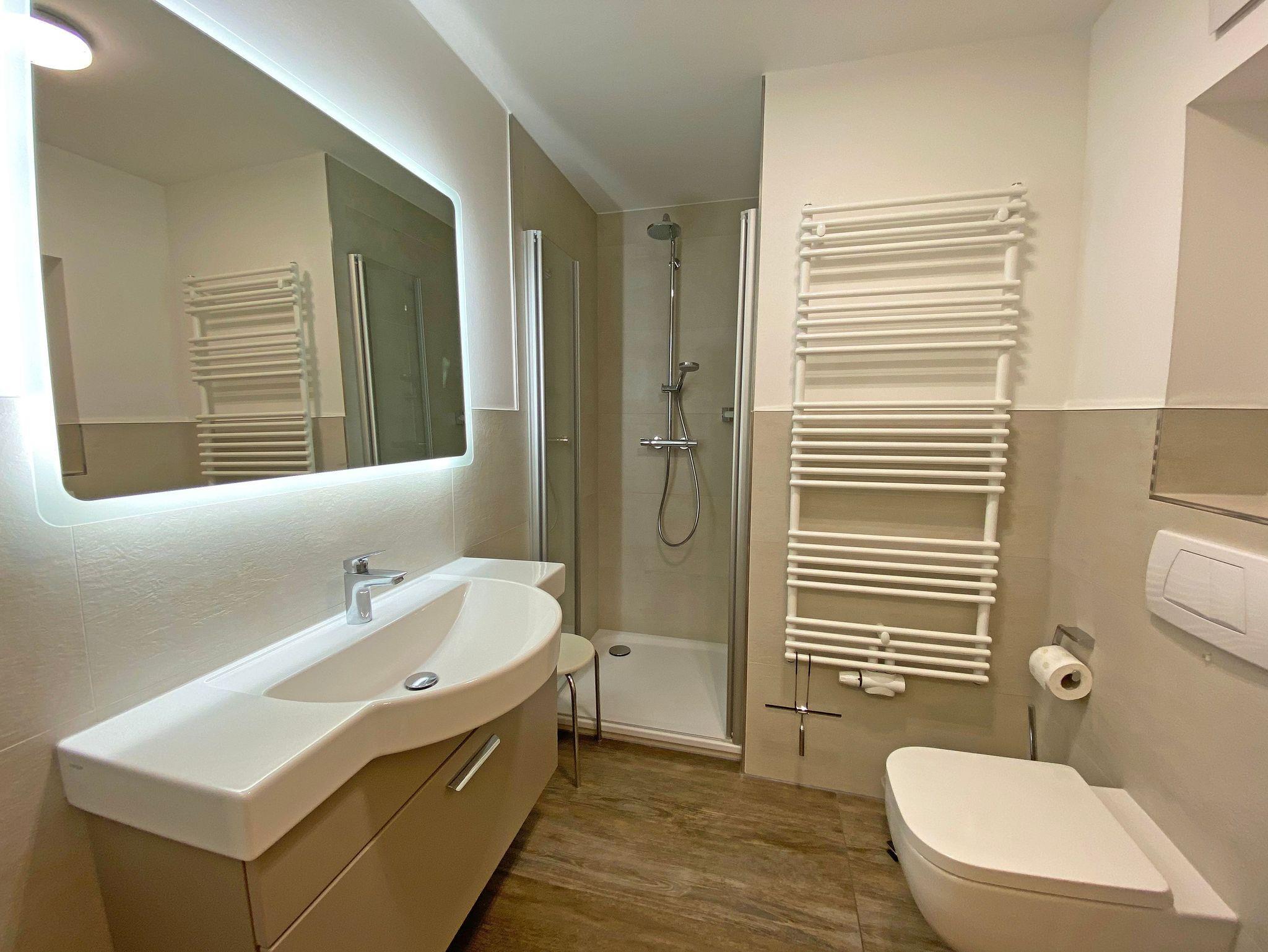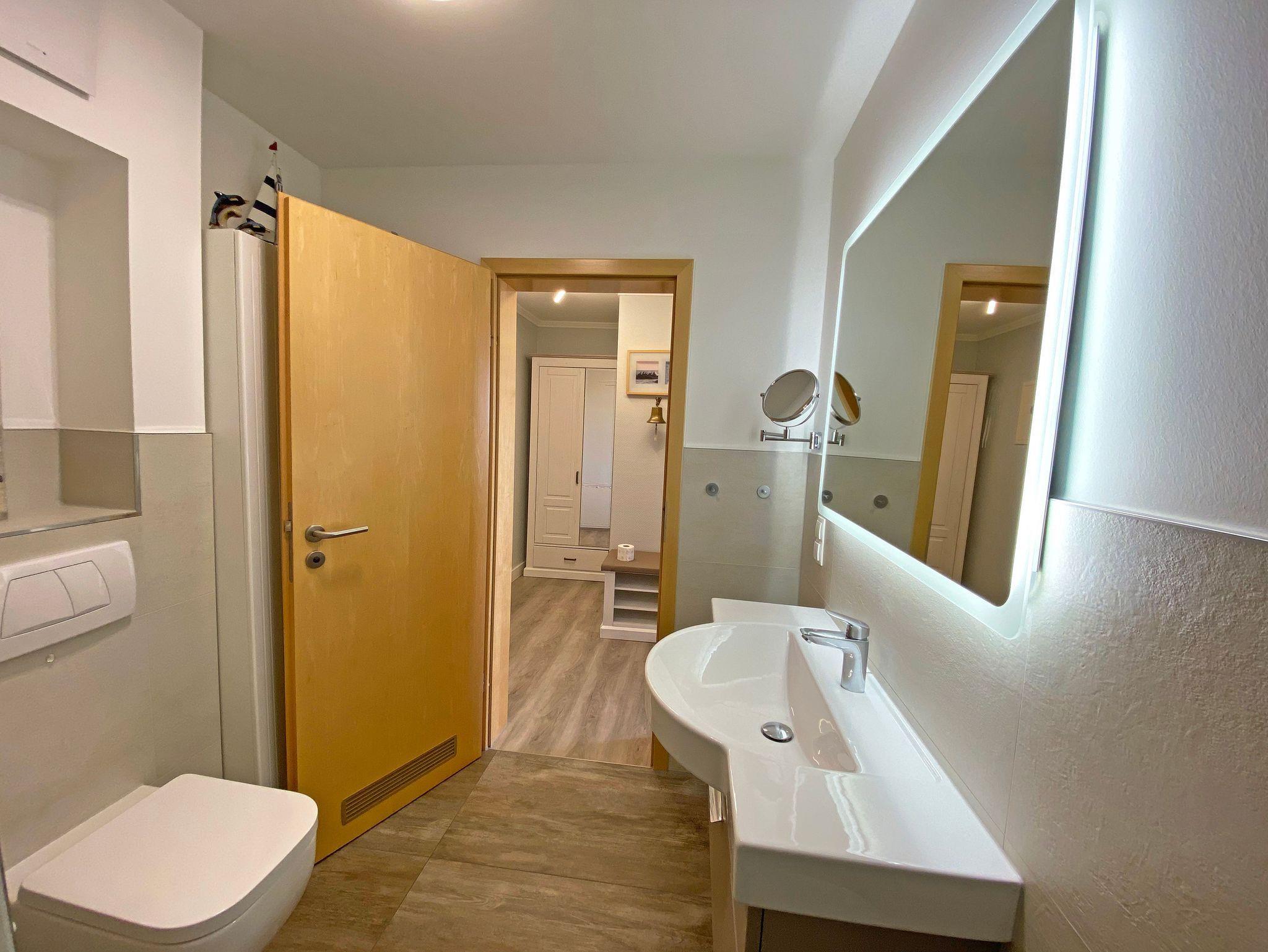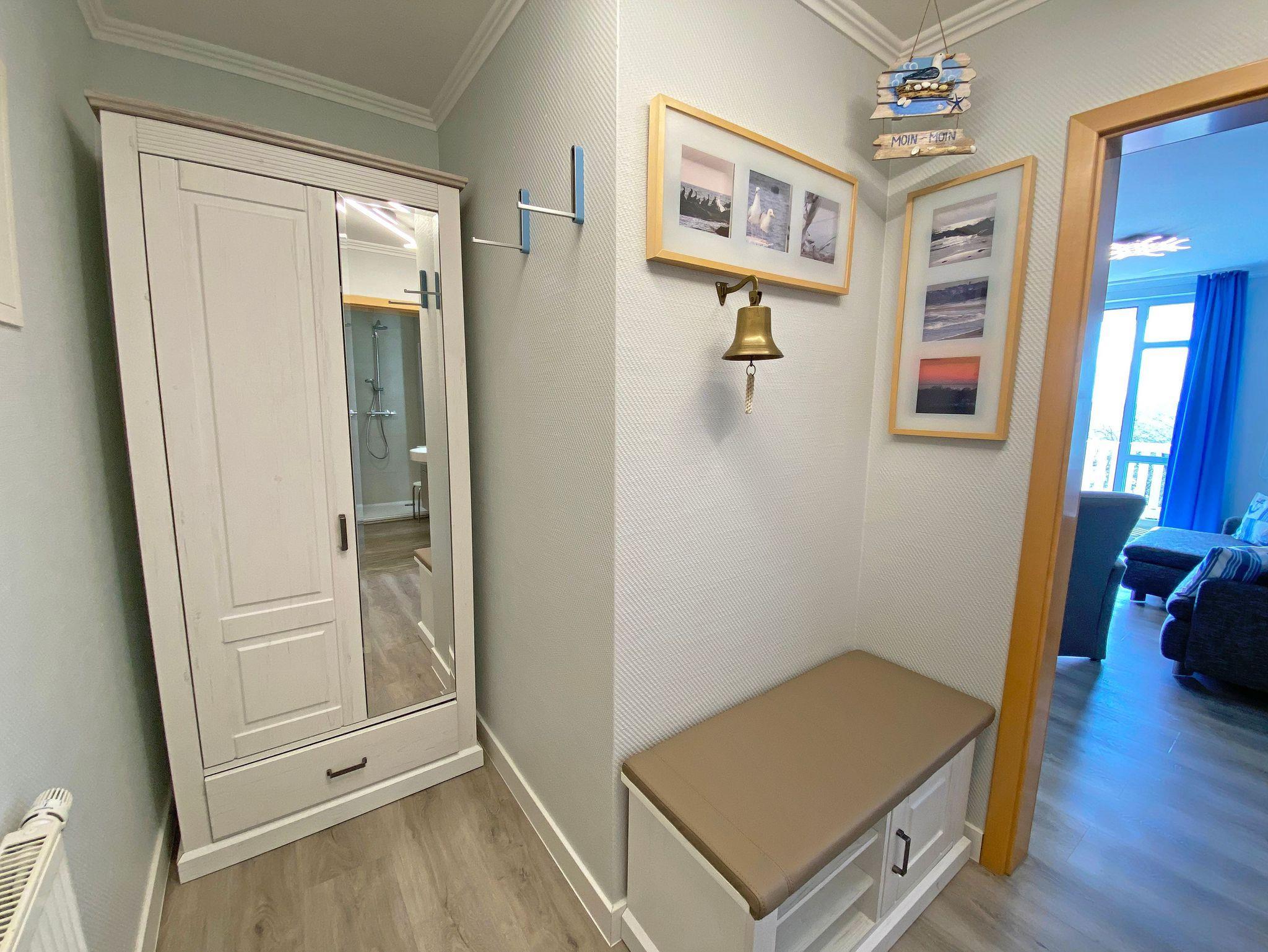 Unsere komfortable Nichtraucherwohnung von ca. 50 qm ist für max. 2 Erwachsene ausgestattet. Sie verfügt über ein Schlafzimmer mit Doppelbett (1,80m x 2,00m), verstellbare Lattenroste, Nachttischkonsolen, Verdunklungsvorhänge und Kleiderschrank. Der Wohnbereich ist mit einer Sitzecke, Leselampe, TV-Board, LCD-TV, DVD-Player und Ministereoanlage eingerichtet. Das Badezimmer ist mit einer Dusche, WC, Kosmetikspiegel und Fön ausgestattet. Die Küchenzeile bietet einen Esstisch und Bestuhlung, Geschirrspüler, 4 Herdplatten mit Backofen, Kühlschrank mit Eisfach, Toaster, Kaffeemaschine, Wasserkocher und diverse Küchenutensilien. Vom bestuhlten Balkon aus genießen Sie die einmalige Aussicht auf die Ostsee. WLAN ist für Sie inklusive nutzbar. Ein PKW-Stellplatz (Nr. 05) sowie eine Unterstellmöglichkeit für Ihre Fahrräder ist am Haus vorhanden. Haustiere sind in der Wohnung nicht gestattet!!! Die Erstausstattung von 2 Wäschepaketen sind ab 5 Nächte inklusive. Jede weitere Erstausstattung eines Wäschepaketes (komplette Bettwäsche, 1 Duschhandtuch, 1 kleines Handtuch) können Sie bis 14 Tage vor Anreise gegen einen Aufpreis dazu buchen oder durch eigene ergänzen. Ab 2 gebuchten Paketen erhalten Sie einmalig 1 Geschirrhandtuch und 1 Duschvorleger hinzu.