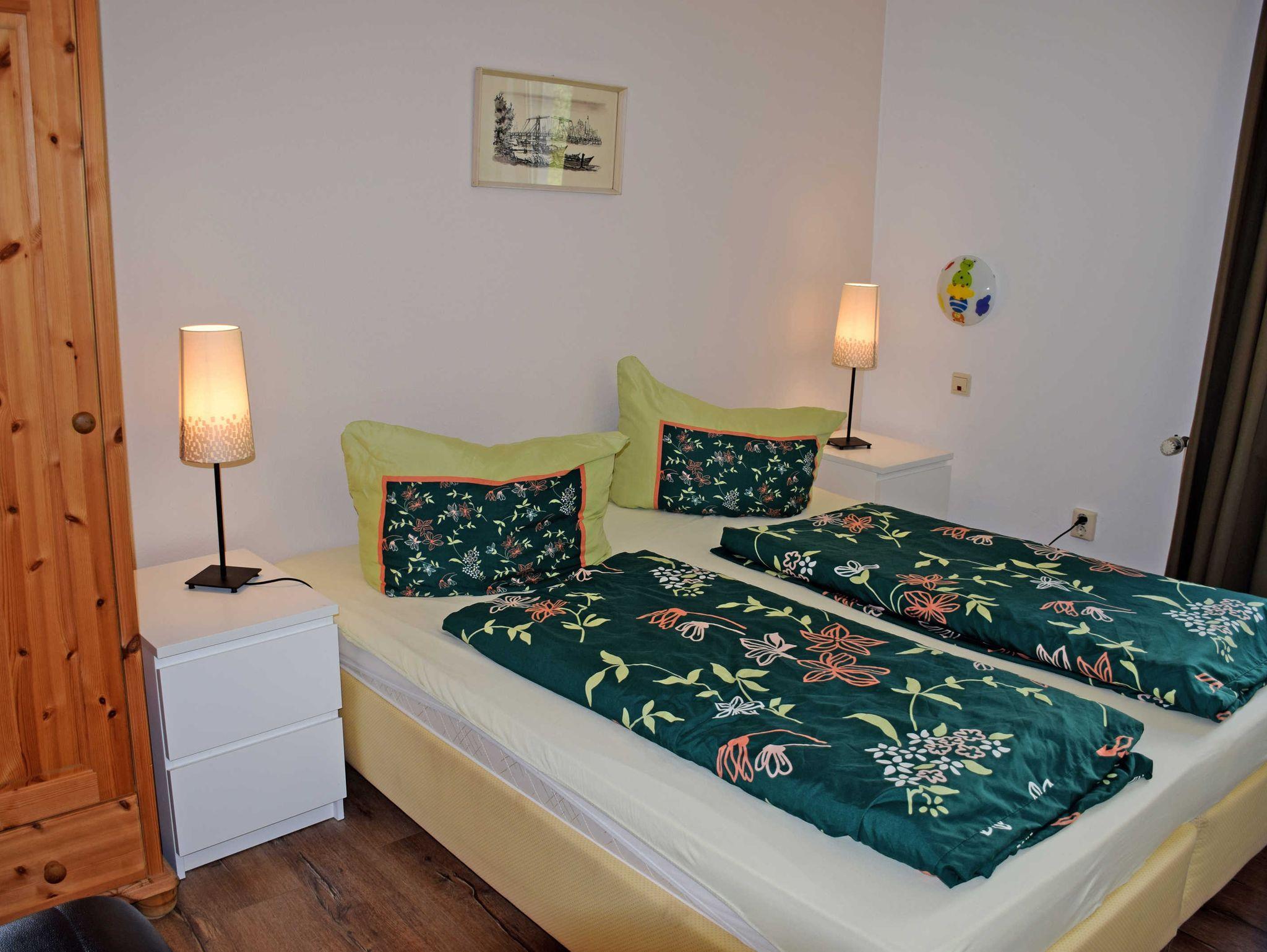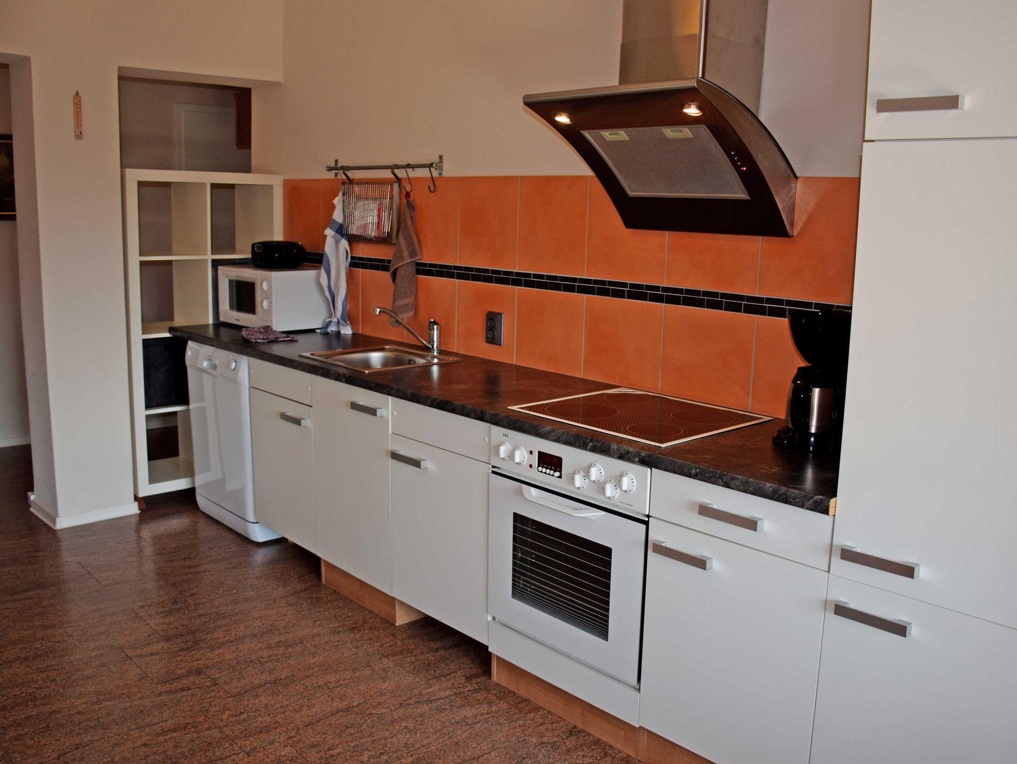 Unsere Ferienwohung 01, (80 qm, mit WLAN) befindet sich im Erdgeschoß und ist für maximal 6 Gäste eingerichtet. Sie ist modern ausgestattet und verfügt über einen Wohnraum mit Schlafcouch, TV und DVD-Player. Die Küche ist komplett ausgestattet mit Herd, Backofen, Kühlschrank, Mikrowelle, Kaffeemaschine, Toaster, Wasserkocher sowie einem Esstisch mit Stühlen. Im ersten Schlafraum steht ein Doppelbett mit Nachtschränken und Leselampen. Im zweiten Schlafraum sind zwei Einzelbetten ebenfalls mit Nachtischen und Leselampen vorhanden. Das moderne Bad verfügt über Dusche, Waschtisch und WC. In der Ferienwohung kann zusätzlich auch ein kleines Kinderreisebett sowie ein Hochstuhl bereit gestellt werden. Eine Erstaustattung von Bettwäsche und Handtücher kann gegen Aufpreis dazu gebucht werden.