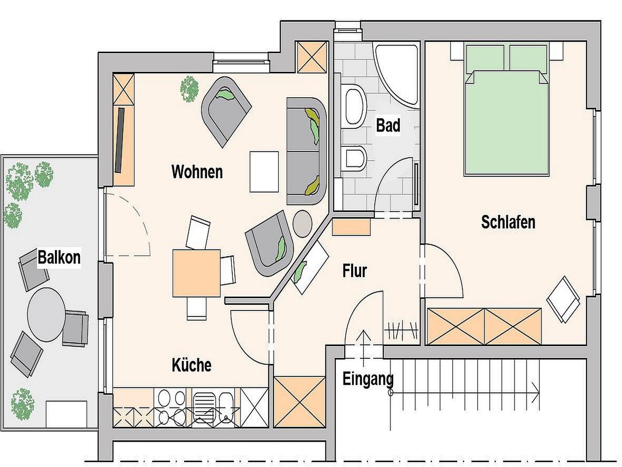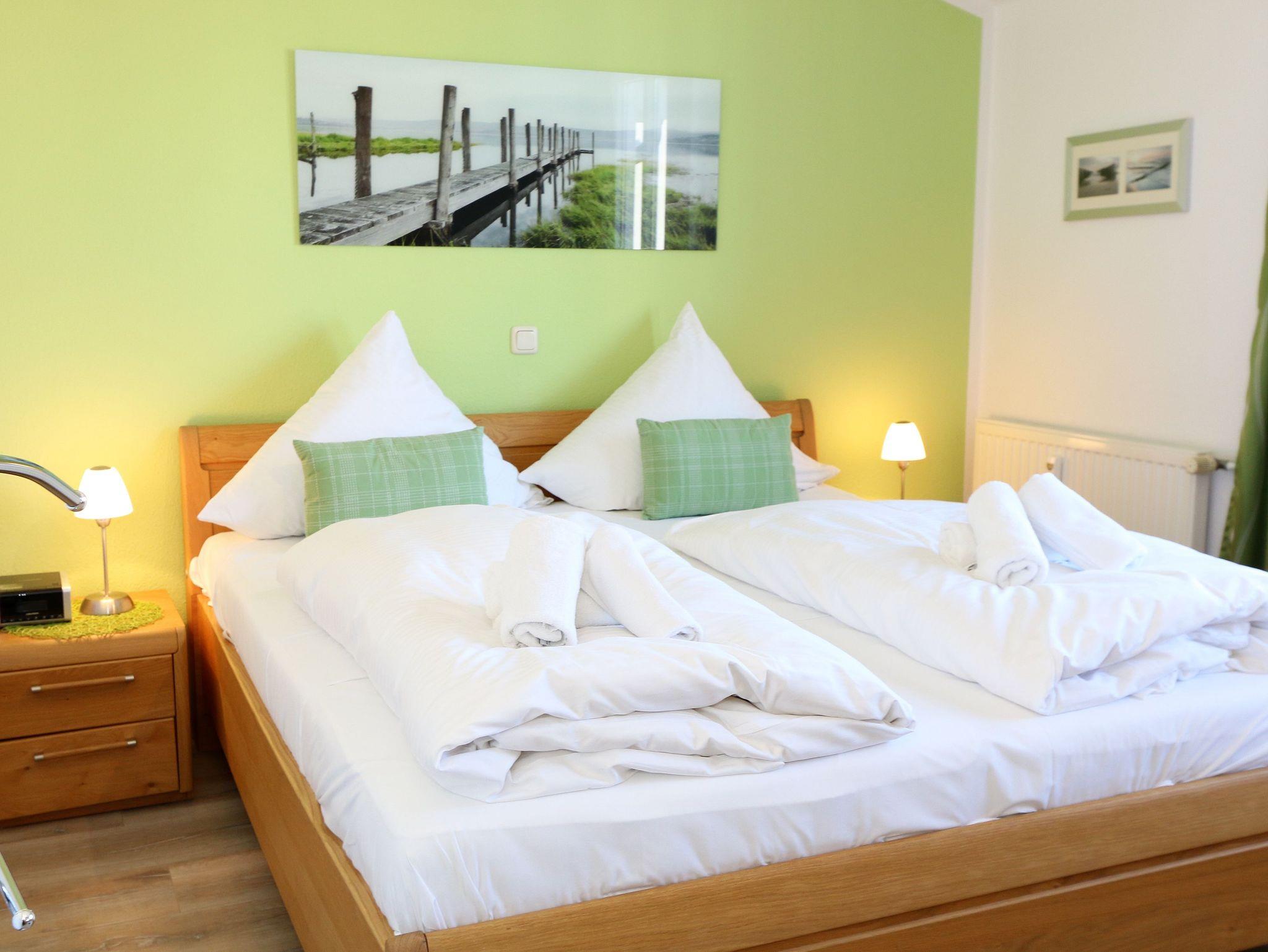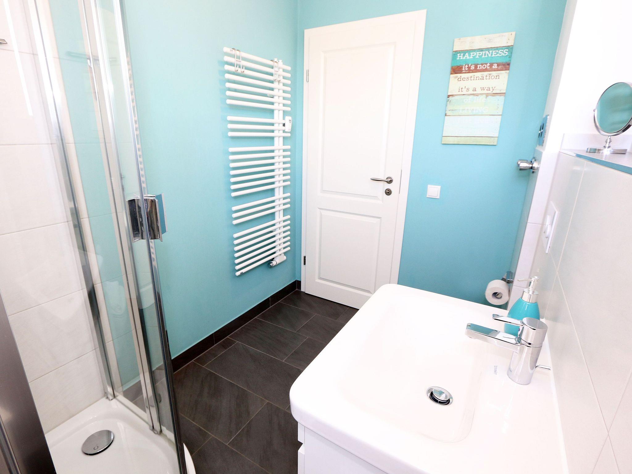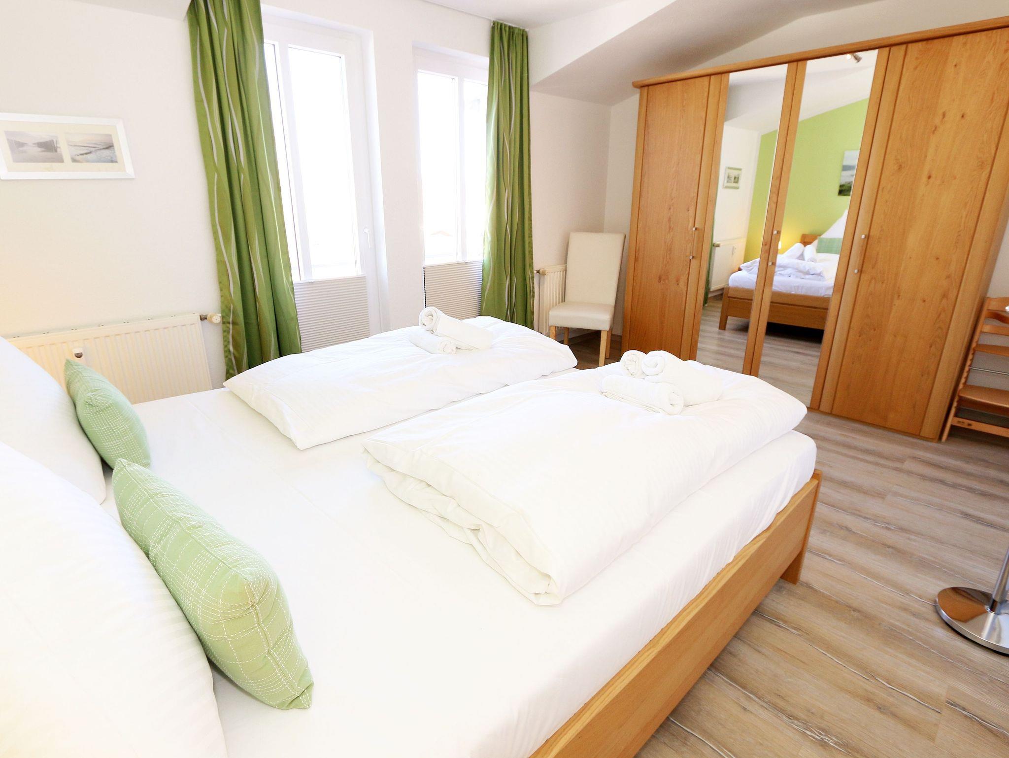Die gemütliche 2-Zimmerwohnung (Nichtraucher) befindet sich im 2. Obergeschoss des modernen Anbaus der Villa Vineta. Die Wohnung ist mit einem Bodenbelag in Holzoptik sowie hellen Wohnzimmermöbeln ausgestattet. Mit Ihren ca. 50 m² bietet Ihnen die Wohnung ausreichend Platz für 2-3 Personen. Die Wohnung besteht aus einem separaten Schlafzimmer (ruhig nach Norden gelegen) mit einem Doppelbett (1,80m x 2,00m), verstellbare Lattenroste, Nachttischkonsolen sowie einem Kleiderschrank. Ein Kinderreisebett mit Matratze (ohne Bett Inlett) kann hier aufgestellt werden. Der kombinierte Wohn-/Essbereich ist mit einer Boxspring Schlafcouch (1,25m x 2,00m, Aufbettungsmöglichkeit für 3. Person) mit Couchtisch, einer Leselampe, kleinem Sideboard mit Smart-TV (43 Zoll) mit HD-Qualität, Blu-Ray-Player und einer Stereoanlage ausgestattet. Die offene, neue Küchenzeile bietet eine komplette Ausstattung mit Backofen, Ceranfeld, Mikrowelle, Geschirrspüler, Kühlschrank mit Gefrierfach, Kaffeemaschine, Senseo Padmaschine, Toaster, Wasserkocher und diversen Küchenutensilien. Ein Essplatz mit Tisch und Stühlen schließt sich dem Küchenbereich an. Vom Wohnbereich aus erreichen Sie den überdachten und bestuhlten Südbalkon, von dem Sie einen Meerblick in Richtung Südstrand und der Halbinsel Mönchgut haben. Das Schlafzimmer sowie der Wohnbereich sind mit Insektenschutz und Verdunklungsplissees versehen. Das geflieste Tageslichtbad ist mit einem Waschtisch, Fön, Kosmetikspiegel, WC und Dusche ausgestattet. Ein PKW-Stellplatz Nr. 14 gehört zur Wohnung und befindet sich hinter dem Haus. Für Ihre geliehenen oder auch mitgebrachten Fahrräder steht Ihnen ein Fahrradständer sowie ein Fahrradkeller zur Verfügung. Auf einen Internetzugang (WLAN) brauchen Sie nicht zu verzichten. Dieser ist inklusive für Sie. Haustiere sind nicht erlaubt. Die Erstausstattung eines Wäschepaketes (komplette Bettwäsche, 1 Duschhandtuch, 2 kleine Handtücher) können Sie bis 14 Tage vor Anreise gegen einen Aufpreis dazu buchen oder durch eigene ergänzen. Ab 2 gebuchten Paketen erhalten Sie einmalig 1 Geschirrhandtuch und 1 Duschvorleger hinzu.