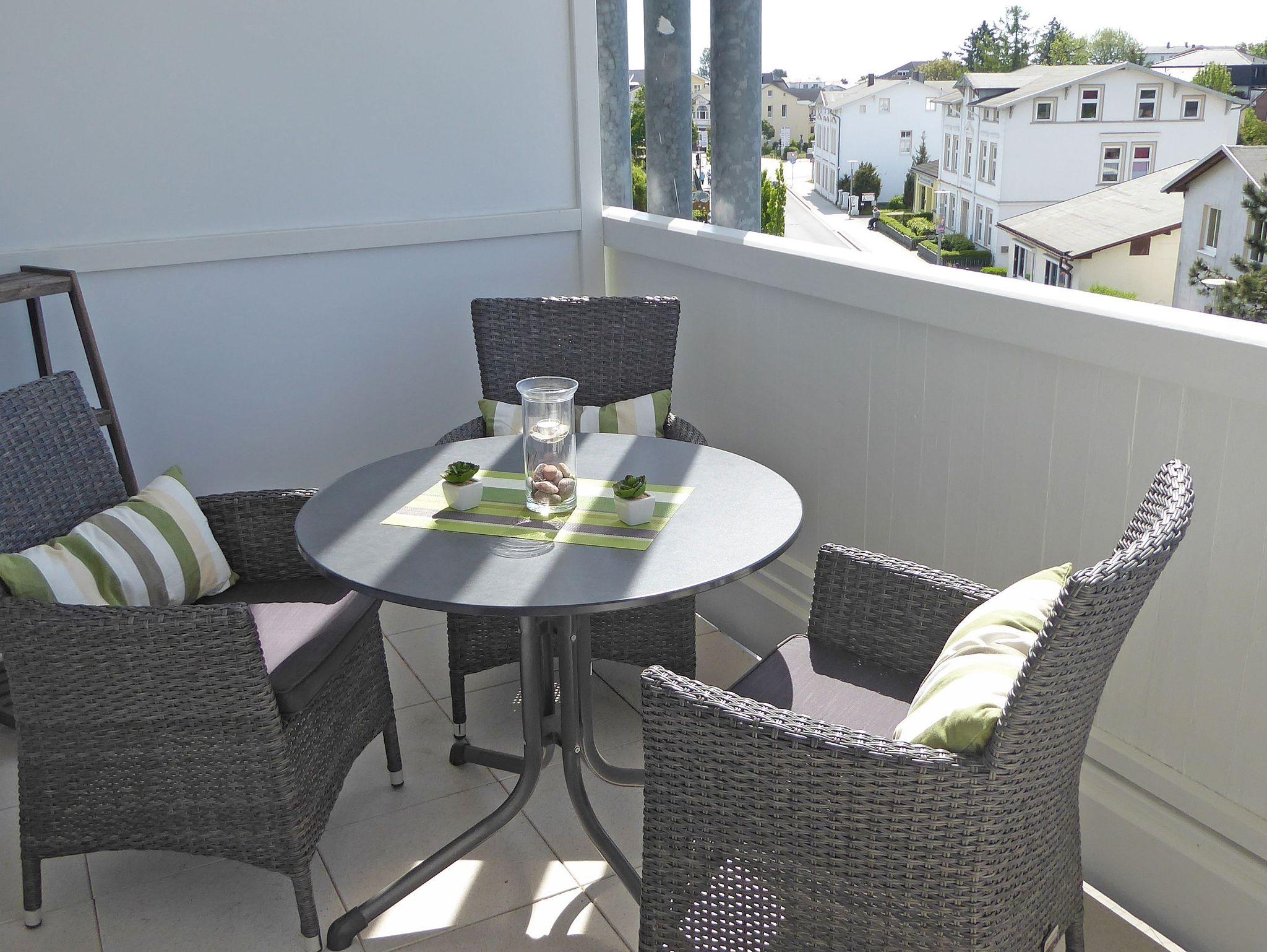 Die gemütliche 2-Zimmerwohnung mit einer hellen und freundlichen Einrichtung befindet sich im 2. Obergeschoss des modernen Anbaus der Villa Vineta. Das Ortszentrum mit vielen Restaurants, Cafes und Einkaufsmöglichkeiten erreicht man in wenigen Gehminuten. Die beiden Strände, der feinsandige Nordstrand und der natürliche Südstrand, die romantische Bernsteinpromenade und die Seebrücke sind ca. 500m von der Ferienwohnung entfernt. Zur Bahnstation Rasender Roland sind es ca. 450m. Die Wohnung bietet eine gute Ausgangslage für Wanderungen und Radtouren in die nähere Umgebung und weiter auf die Halbinsel Mönchgut. Eine Bushaltestelle mit Verbindungsmöglichkeiten zu den umliegenden Ostseebädern befindet sich in der näheren Umgebung.