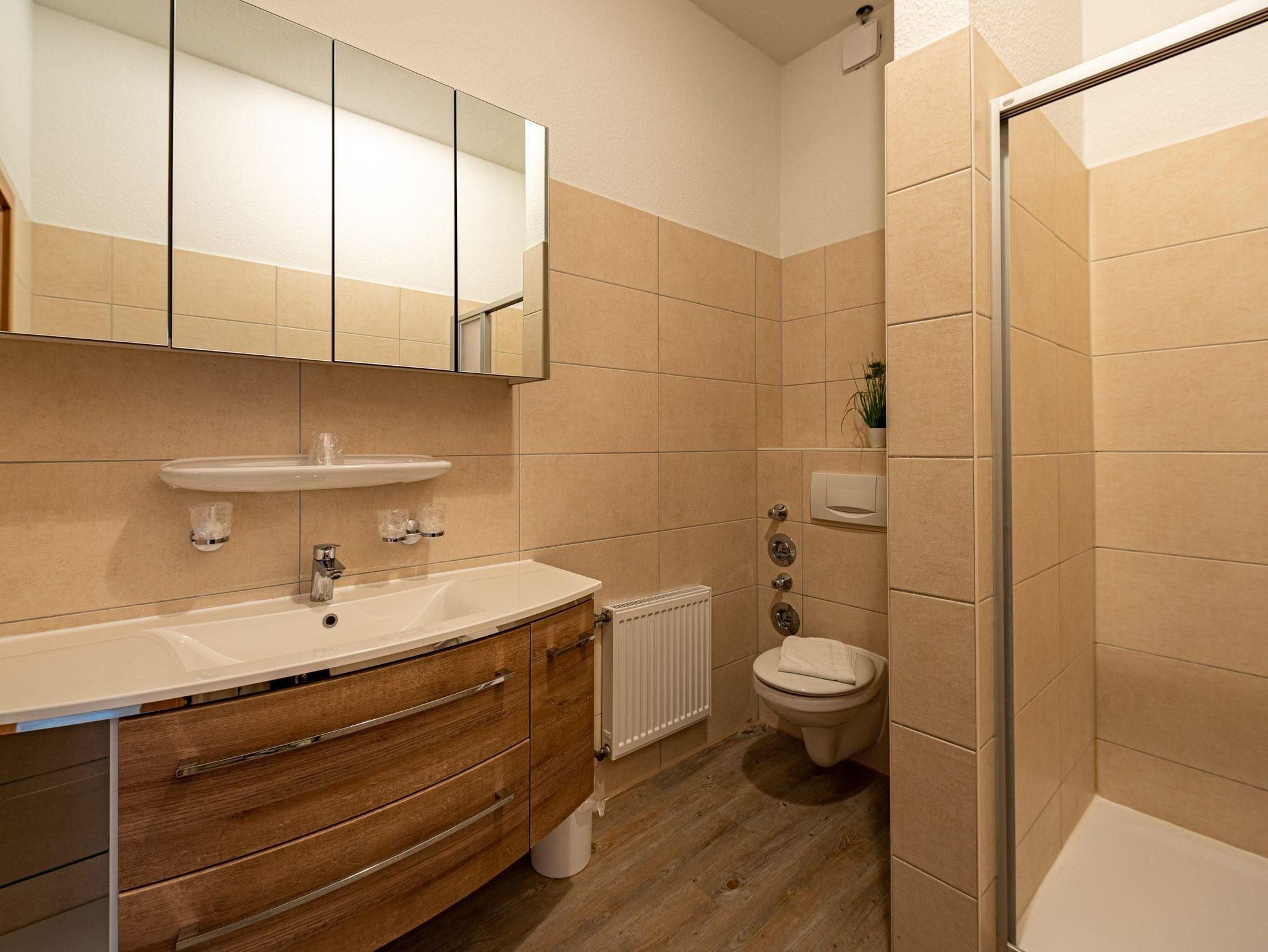 * Bad mit Dusche, WC und Föhn