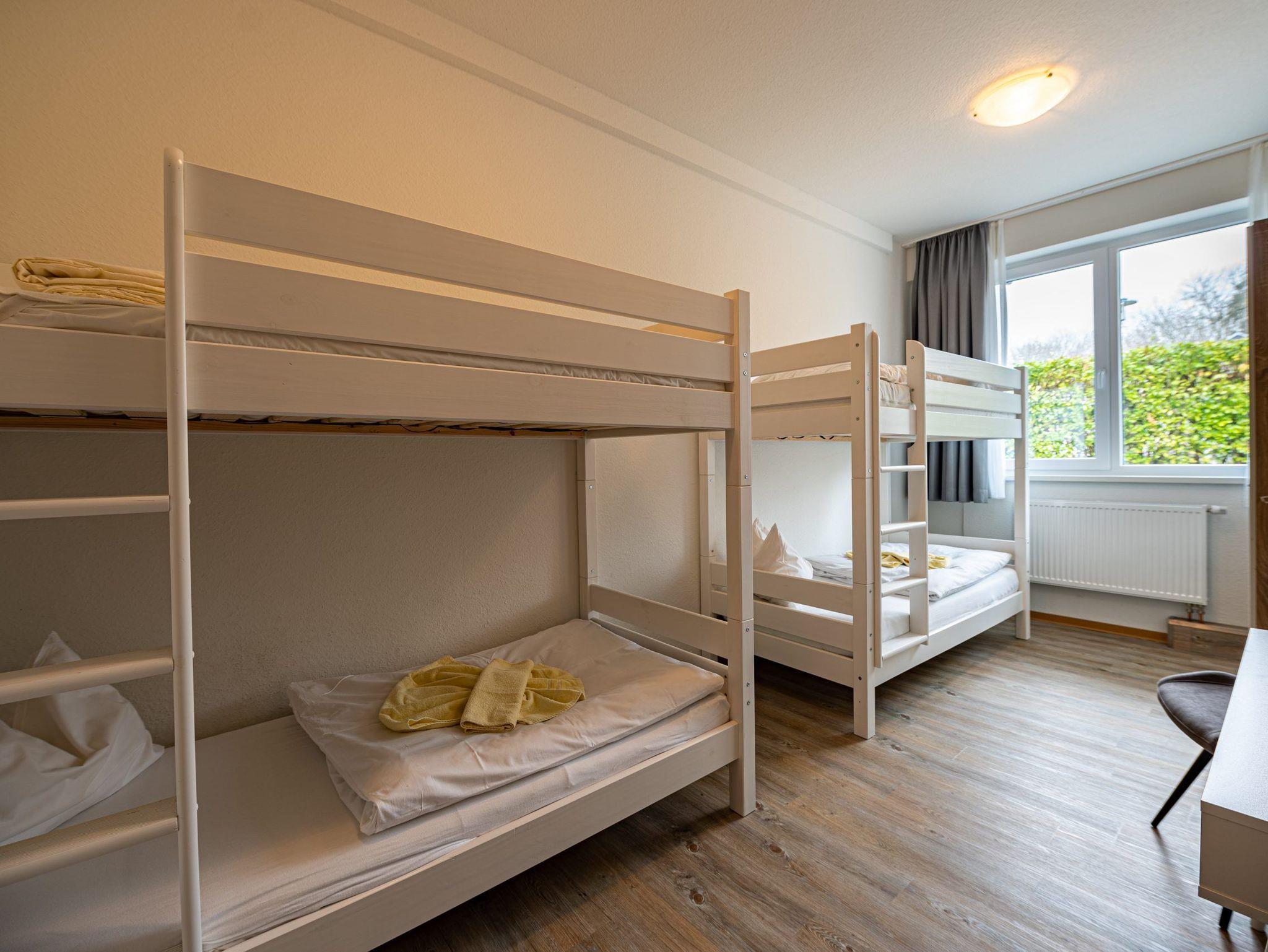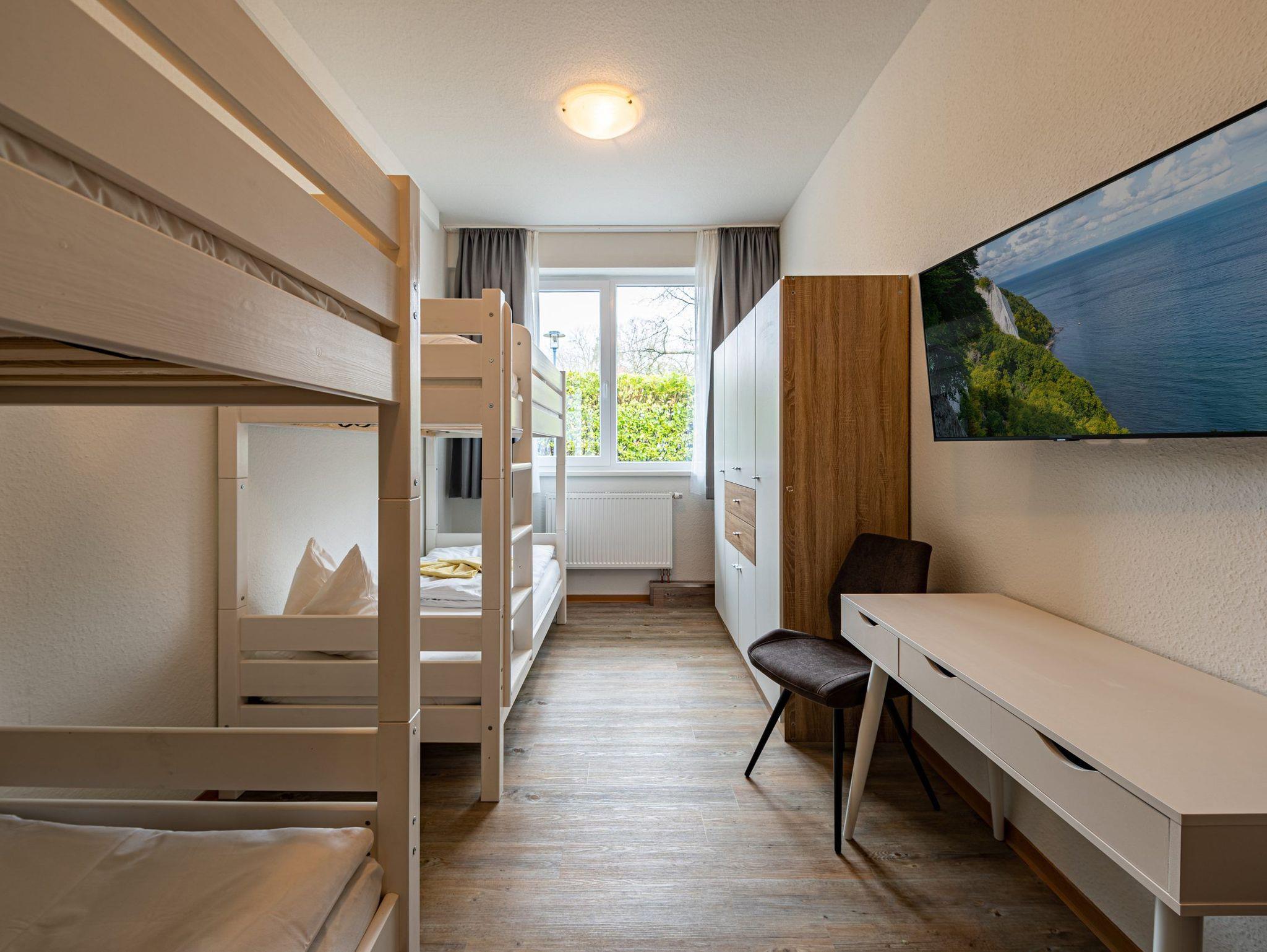 * Schlafzimmer mit 2 Stockbetten (90 x 200 cm), Großem Kleiderschrank, Schreibtisch und Flachbild Fernseher