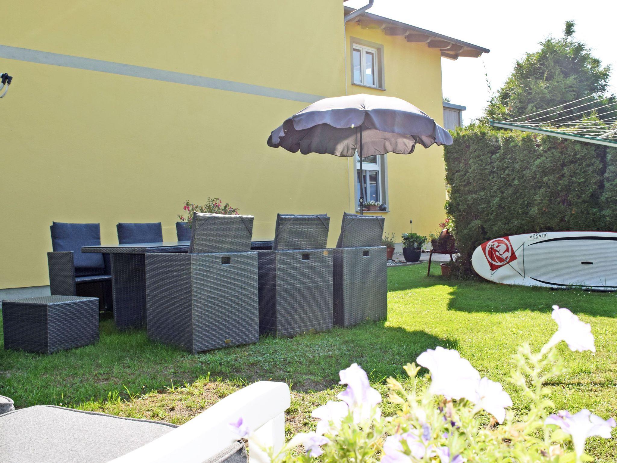 Apartment 5 und 6 haben weder Balkon noch Terrasse - trotzdem können Sie Ihre Zeit draußen verbringen, nutzen Sie den Garten mit neuen schönen und bequemen Gartenmöbeln, Grill usw.