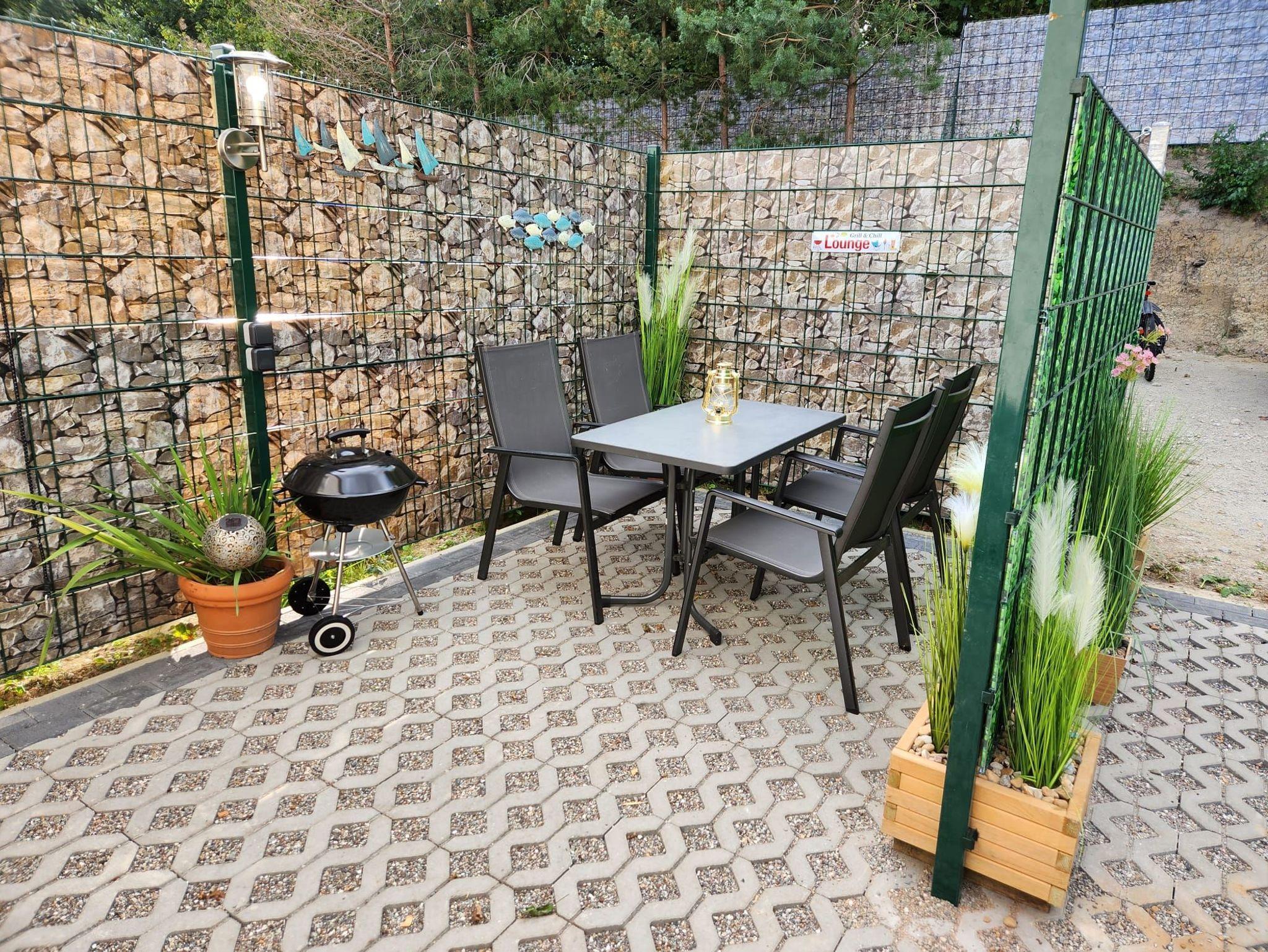 Freuen Sie sich auf einen gemütlichen Freisitz mit Holzkohle Grill.Der Parkplatz befindet sich direkt vor dem Strandhaus Malia.