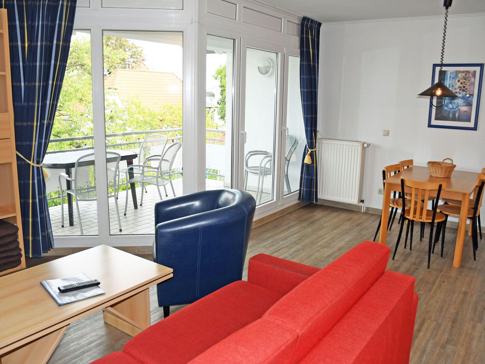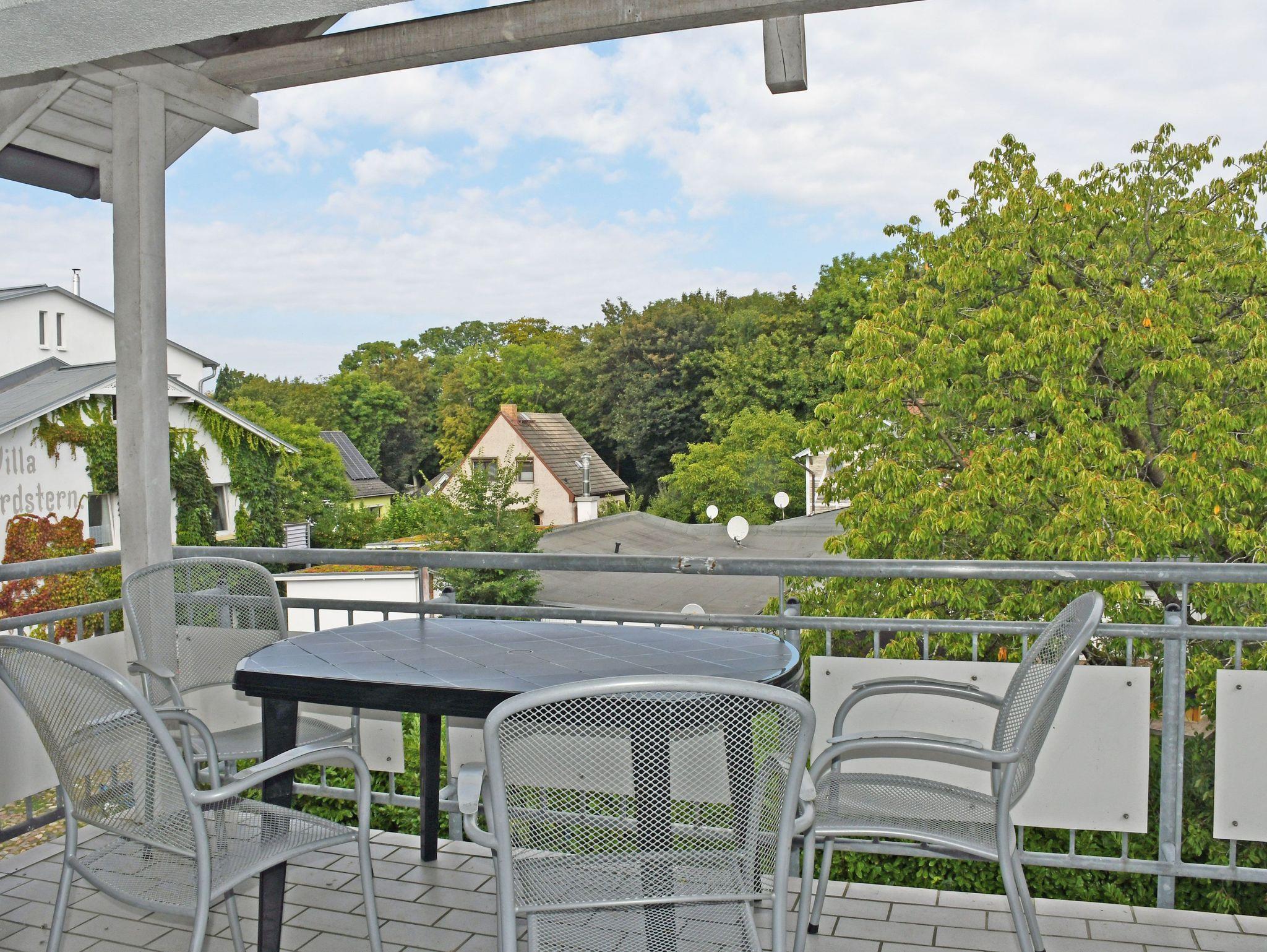 Der schöne Balkon mit Gartenmöbeln lädt zu gemütlichen Stunden ein. Hier können Sie die Abende bei einem Glas Wein ausklingen lassen und jederzeit die gute Ostseeluft und Sonne auf Rügen genießen.