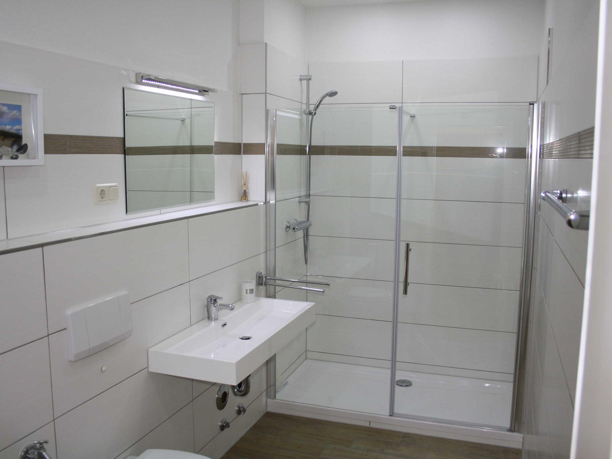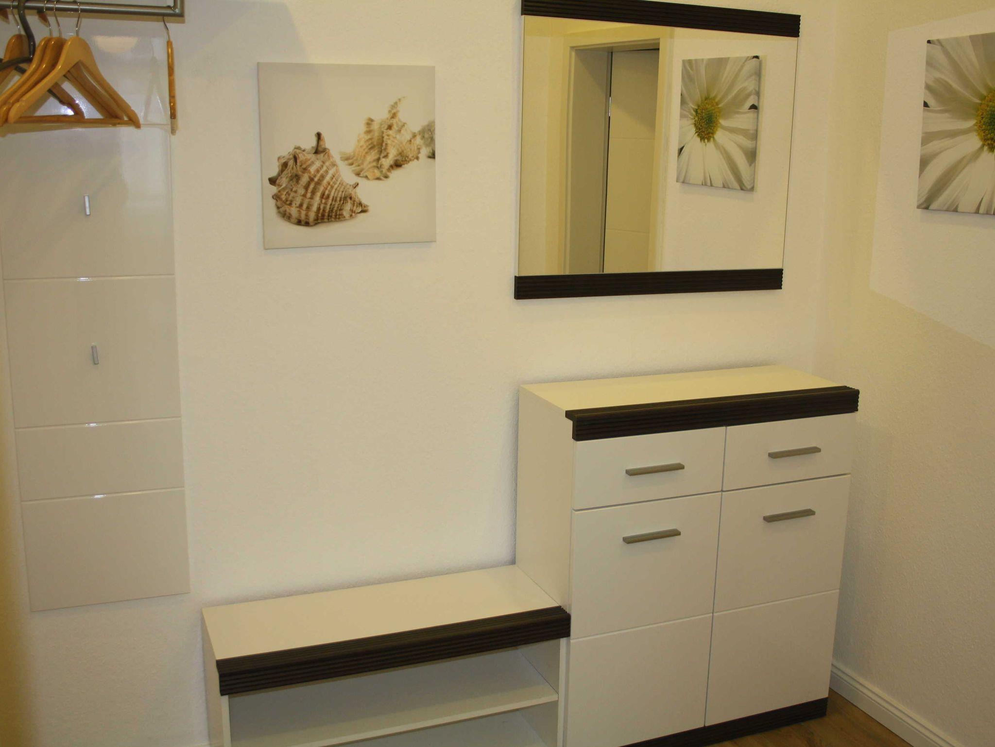 Die Anfang 2016 komplett sanierte und neu eingerichtete 2-Raum-Fewo befindet sich im Erdgeschoß. Sie ist ca. 69 qm groß und für 5 Personen ausgestattet. Die Fewo besteht aus aus einem Wohnzimmer mit Sitzecke (Doppelschlafcouch) und TV und einer offenen Küche - komplett eingerichtet mit Esstisch, Kühl- und Gefrierkombi, Geschirrspüler, Ceranfeld, Backofen, Kaffeemaschine, Wasserkocher und komplett Geschirr etc. Das Schlafzimmer ist ausgestattet mit Doppelbett, einem großen Kleiderschrank und TV. Für die 5. Person ist ein Klappbett vorhanden, welches ins Schlafzimmer gestellt werden kann. Vor dem Wohnzimmer ist ein großer ebenerdiger Ballkon mit Sitzmöglichkeiten. Das Bad ist mit einer großen Dusche, Waschbecken, WC und Waschmaschine bestückt.