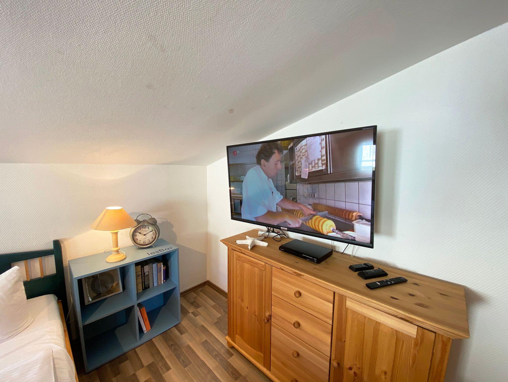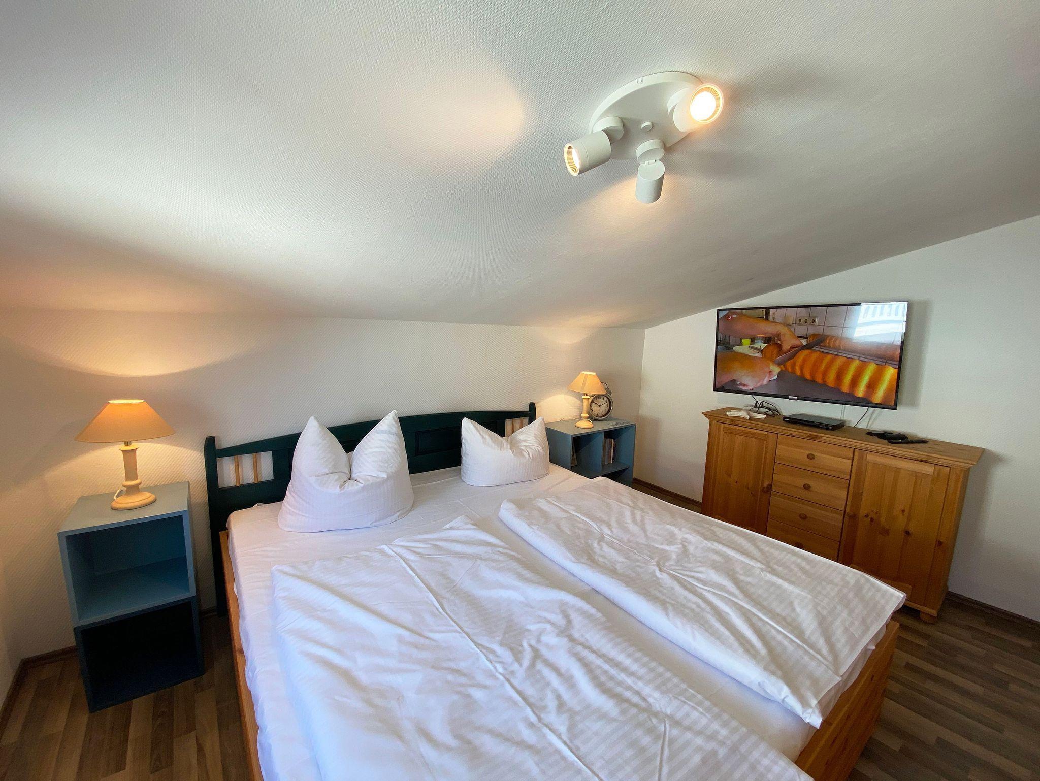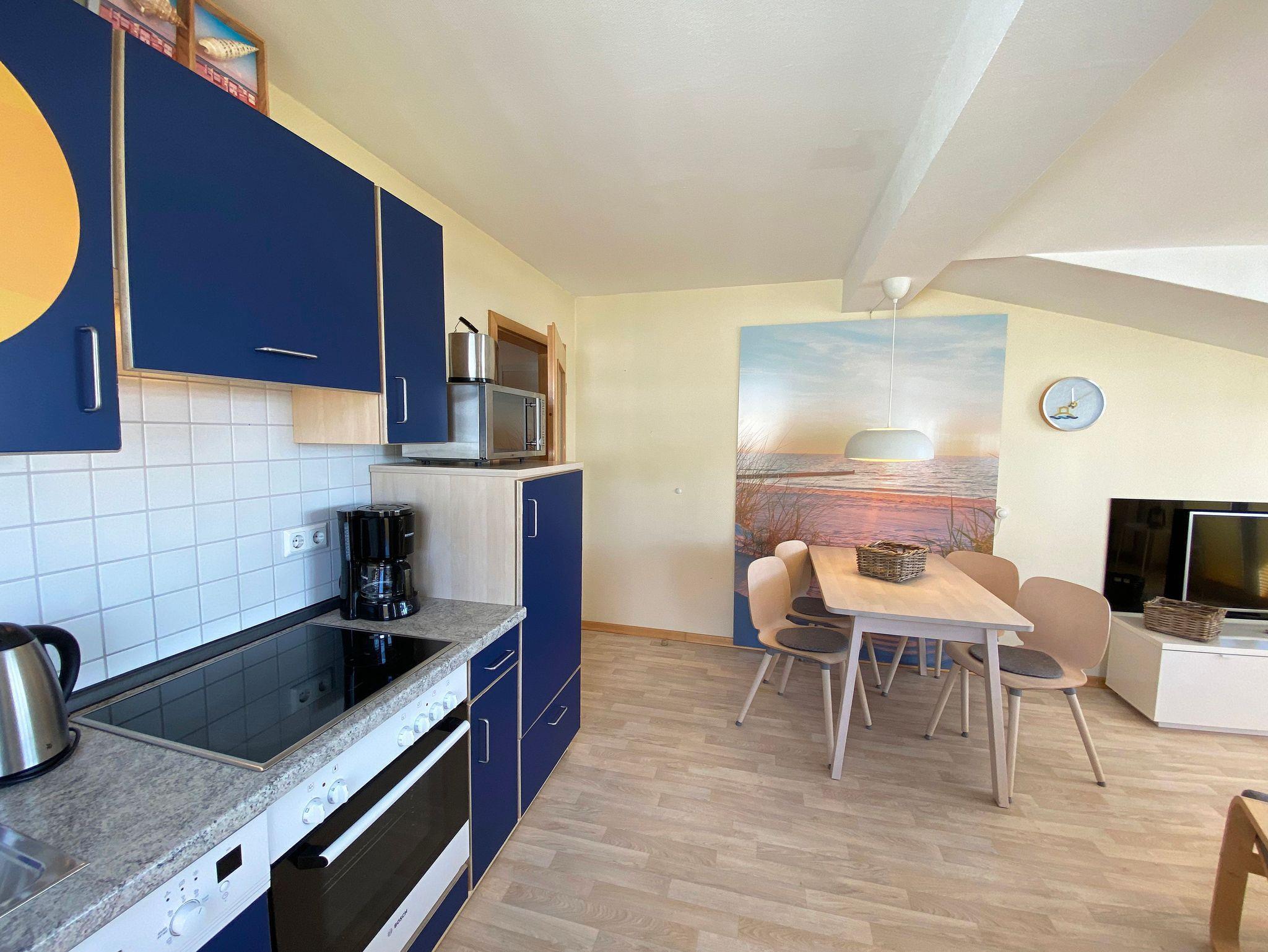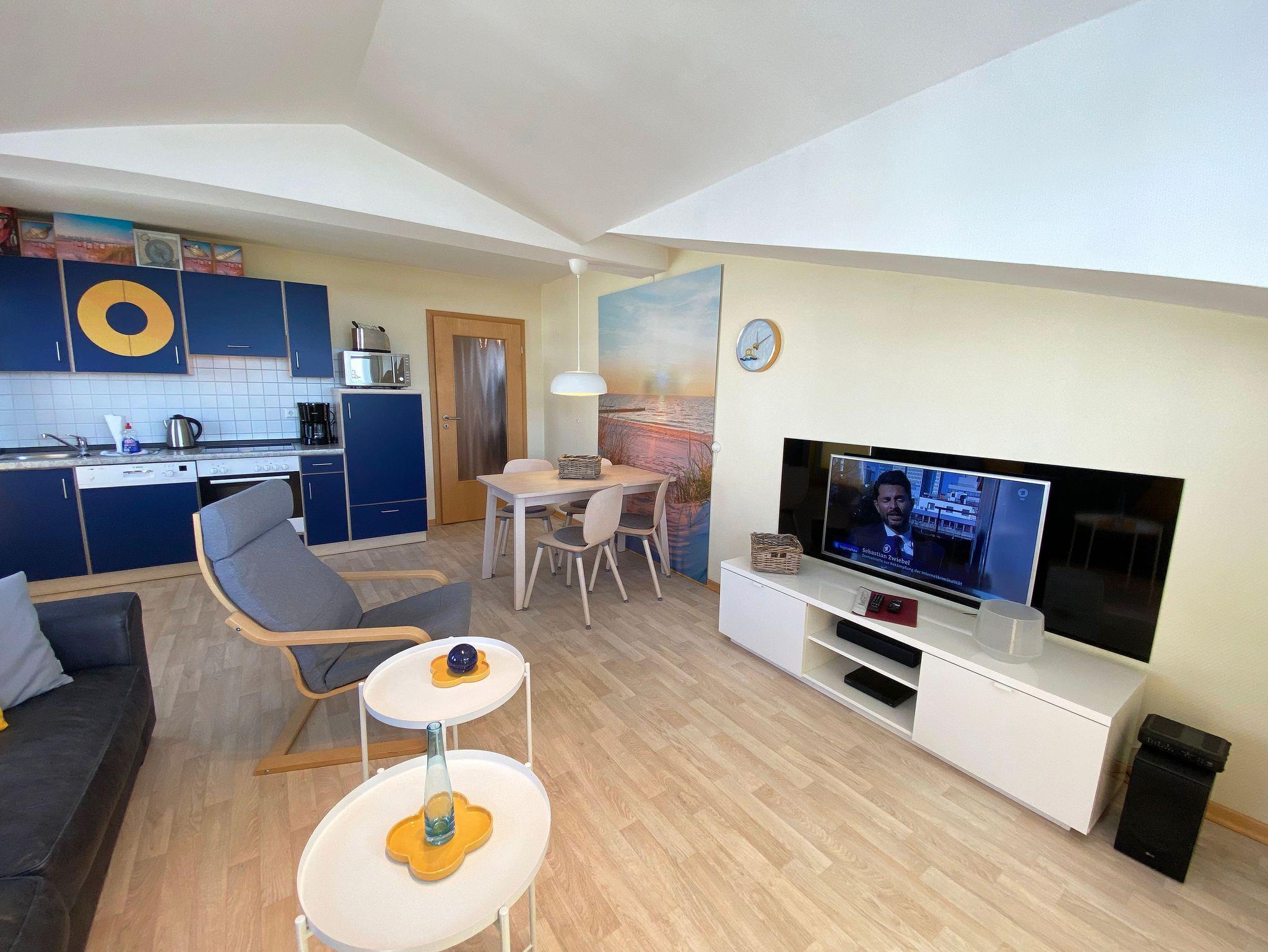 Unsere komfortable Nichtraucherwohnung von ca. 60 qm für 2 bis max. 4 Erwachsene und 1 Kleinkind bis 3 Jahre im Kinderreisebett verfügt über ein Schlafzimmer mit Doppelbett, Nachttischkonsolen und Kleiderschrank sowie ein zweites Schlafzimmer mit französischem Bett (1,40 m) und einen weiteren Kleiderschrank. Der Wohnbereich ist mit einer Sitzecke, Sessel, TV-Board, Smart-TV mit Radioprogrammen und DVD-Player eingerichtet. Von hier aus gelangen Sie auf den bestuhlten Balkon sowie auf den kleinen Seitenbalkon, von wo aus Sie die einmalige Sicht auf die Ostsee genießen können. Das Badezimmer ist mit einer Dusche, WC und Fön ausgestattet. Die Küchenzeile bietet einen Esstisch und 4 Stühlen, Geschirrspüler, 4 Cerankochfeldern mit Backofen, Toaster, Kaffeemaschine, Wasserkocher und diverse Küchenutensilien. Insektenschutzgitter sind vorhanden. Kinderreisebett (ohne Matratze und Bett Inlett) und Hochstuhl können für unsere kleinen Gäste gegen eine Gebühr gestellt werden. WLAN ist für Sie inklusive nutzbar. Ein PKW-Stellplatz (Nr. 09) sowie eine Unterstellmöglichkeit für Ihre Fahrräder ist am Haus vorhanden. 2 Haustiere sind gegen eine Gebühr gern gesehene Gäste. Die Erstausstattung eines Wäschepaketes (komplette Bettwäsche, 1 Duschhandtuch, 1 kleines Handtuch) können Sie bis 14 Tage gegen einen Aufpreis dazu buchen oder durch eigene ergänzen. Ab 2 gebuchten Paketen erhalten Sie einmalig 1 Geschirrhandtuch und 1 Duschvorleger hinzu.