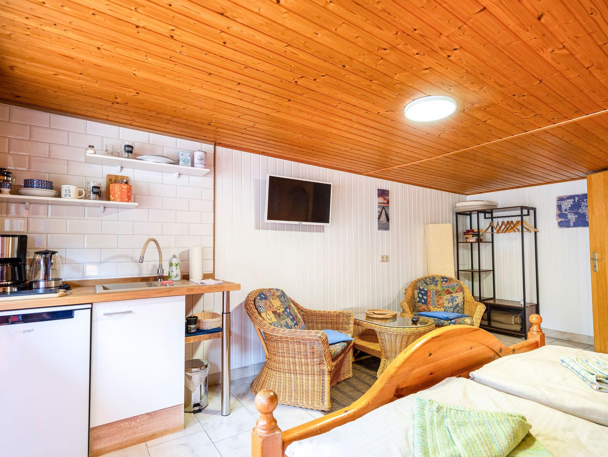 Das Ferienzimmer Silbermöwe eignet sich für 2 Personen. Das Zimmer verfügt über einen Schlafraum mit großem Bett, TV und Kleiderschrank sowie ein Badezimmer mit Dusche und WC. Weiterhin sind ein Kühlschrank, etwas Geschirr, ein Toaster, ein Wasserkocher, ein Eierkocher und ein Kaffeebereiter vorhanden. Abends kann die Terrasse mit Sitzgelegenheiten zum Entspannen genutzt werden. Parkplätze befinden sich im Hinterhof. Internet (WLAN) ist kostenfrei vorhanden.