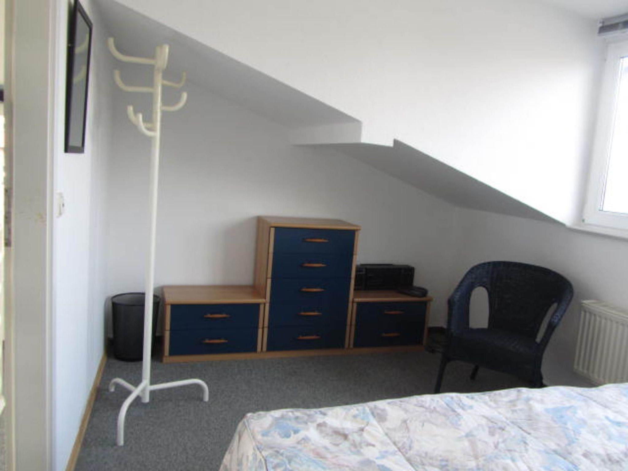 Über eine Wendeltreppe gelangen Sie ins Dachgeschoss zu den beiden Schlafzimmern mit jeweils einem französischen Bett ( 1,40 * 2,00 m), großem Kleiderschrank und einer Korbstuhlgarnitur.