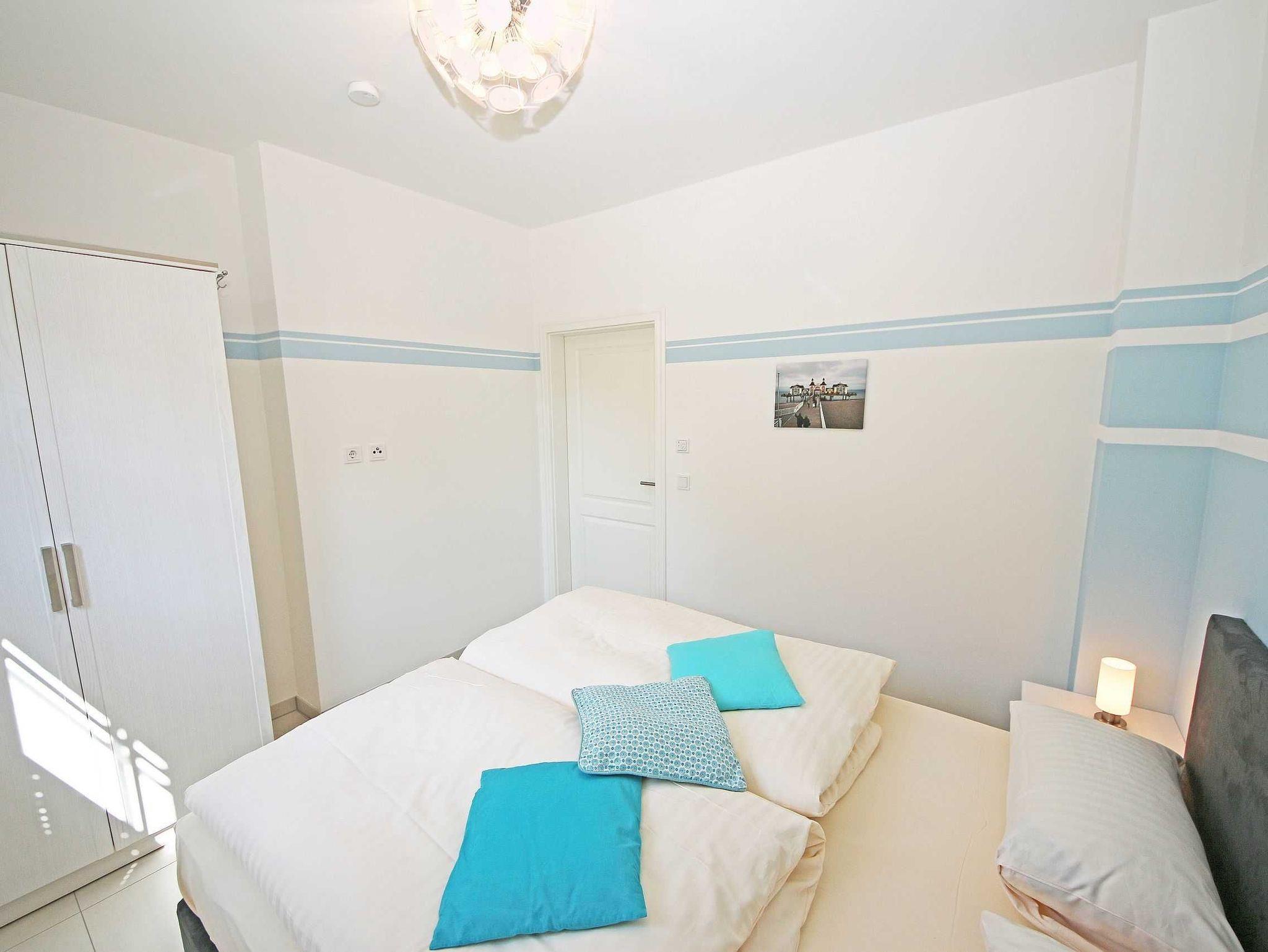 Die Wohnung Nr. 1 der Villa Antje ist eine komfortable, ca. 61 qm große und mit viel Liebe zum Detail eingerichtete Nichtraucherferienwohnung im Erdgeschoss. Sie bietet mit Ihren 2 Schlafzimmern ausreichend Platz für 2 - 4 Personen. Der kombinierte Wohn-/Koch- und Essbereich mit der modernen und integrierten Küchenzeile lässt mit Ceranfeld, Backofen, Geschirrspüler, Kühlschrank mit Gefrierfach, Mikrowelle, Kaffeemaschine, Wasserkocher, Toaster und diversen Küchenutensilien keine Wünsche offen. Der offene Wohnbereich ist geschmackvoll mit Massivholzmöbeln, gemütlicher Eckcouch, Stehlampe und einer Vitrine eingerichtet. Ein LCD-Flachbild-TV, eine Yamaha Dolby-Surround-Anlage mit DVD-Player und Radio sowie Bluetooth-Adapter für alle Smartphones sorgen für Ihre Unterhaltungsmöglichkeiten. Auch auf einen Internetanschluss WLAN müssen Sie in Ihrem Urlaub nicht verzichten. Dieser ist für Sie inklusive! Der Essbereich wird durch einen Esstisch mit 4 Stühlen abgerundet. Die nach Süden ausgerichtete überdachte und bestuhlte Terrasse ist direkt vom Wohnbereich aus zu erreichen. Die angrenzende Grünfläche kann mit genutzt werden. Mit einem vorhandenen Elektrogrill können Sie den Abend in Ruhe ausklingen lassen. Das 1. Schlafzimmer ist mit einem Doppelbett (1,80 m x 2,00m), Nachttischkonsolen, einem LCD-Flachbild-TV und Kleiderschrank ausgestattet. Das 2. Schlafzimmer verfügt über ein modernes Boxspringbett (1,60m x 2,00m), Nachttischkonsolen und einen Kleiderschrank. Beide Schlafzimmer lassen sich mit Plissees optimal abdunkeln. Das hochwertige Bad ist mit einer ebenerdigen Dusche, Waschplatz, WC, Kosmetikspiegel, Handtuchheizkörper und Fön ausgestattet. Alle Räumlichkeiten sind mit einer Fußbodenheizung versehen. Ein eigener PKW-Stellplatz (Nr.01) befindet sich in der Tiefgarage (Einfahrtshöhe 2,00m) des Hauses. Im Keller können Sie gegen eine geringe Gebühr einen allgemeinen Waschraum mit Waschmaschine und Trockner nutzen. Mitgebrachte oder auch gemietete Fahrräder können im gemeinschaftlichen Fahrrad-Abstellraum untergestellt werden. Haustiere sind in der Wohnung nicht erlaubt! Die Erstausstattung eines Wäschepaketes (komplette Bettwäsche, 1 Duschhandtuch, 2 kleine Handtücher, 2 Geschirrhandtücher) können Sie bis 14 Tage vor Anreise gegen einen Aufpreis dazu buchen oder durch eigene ergänzen.