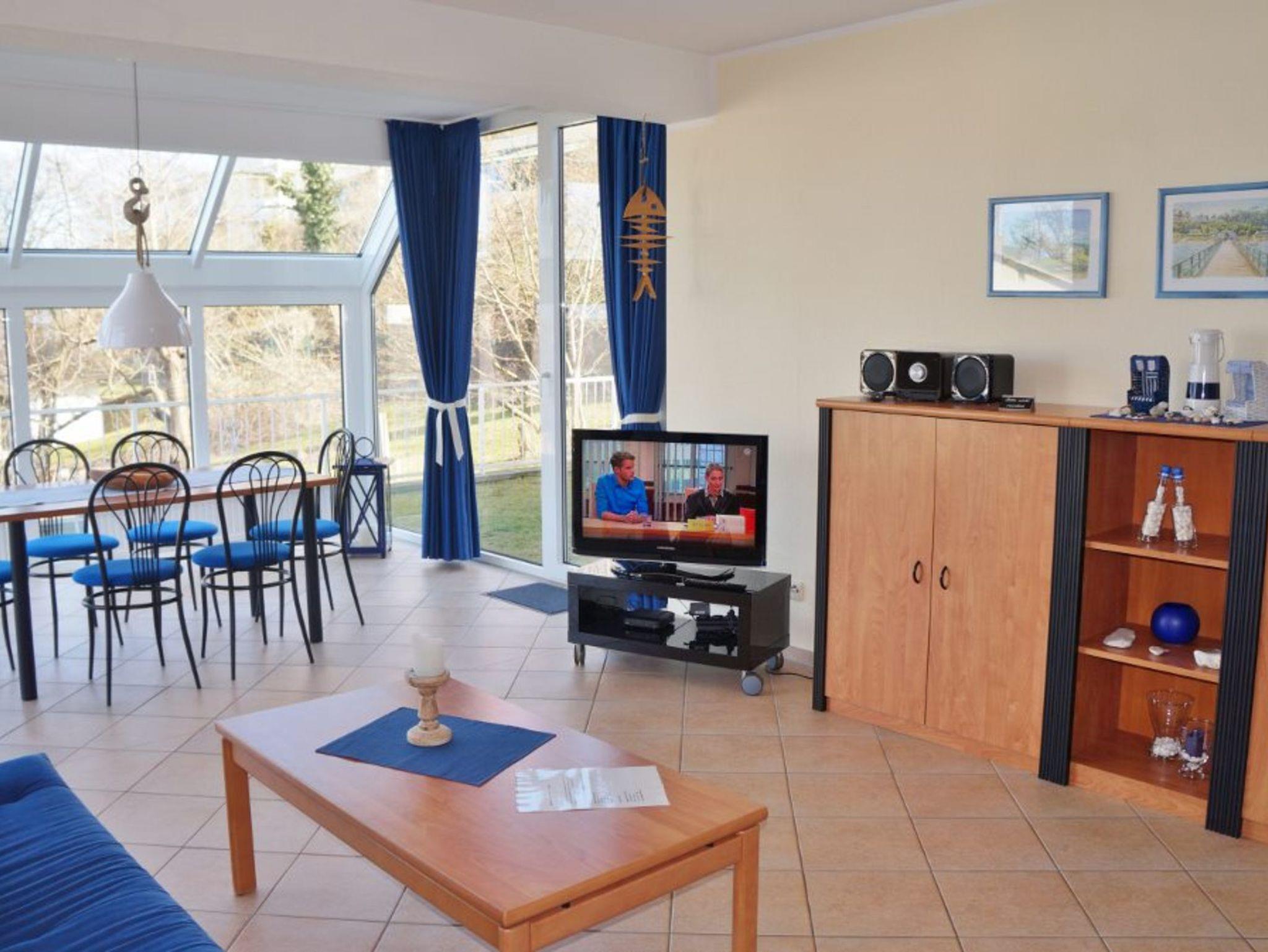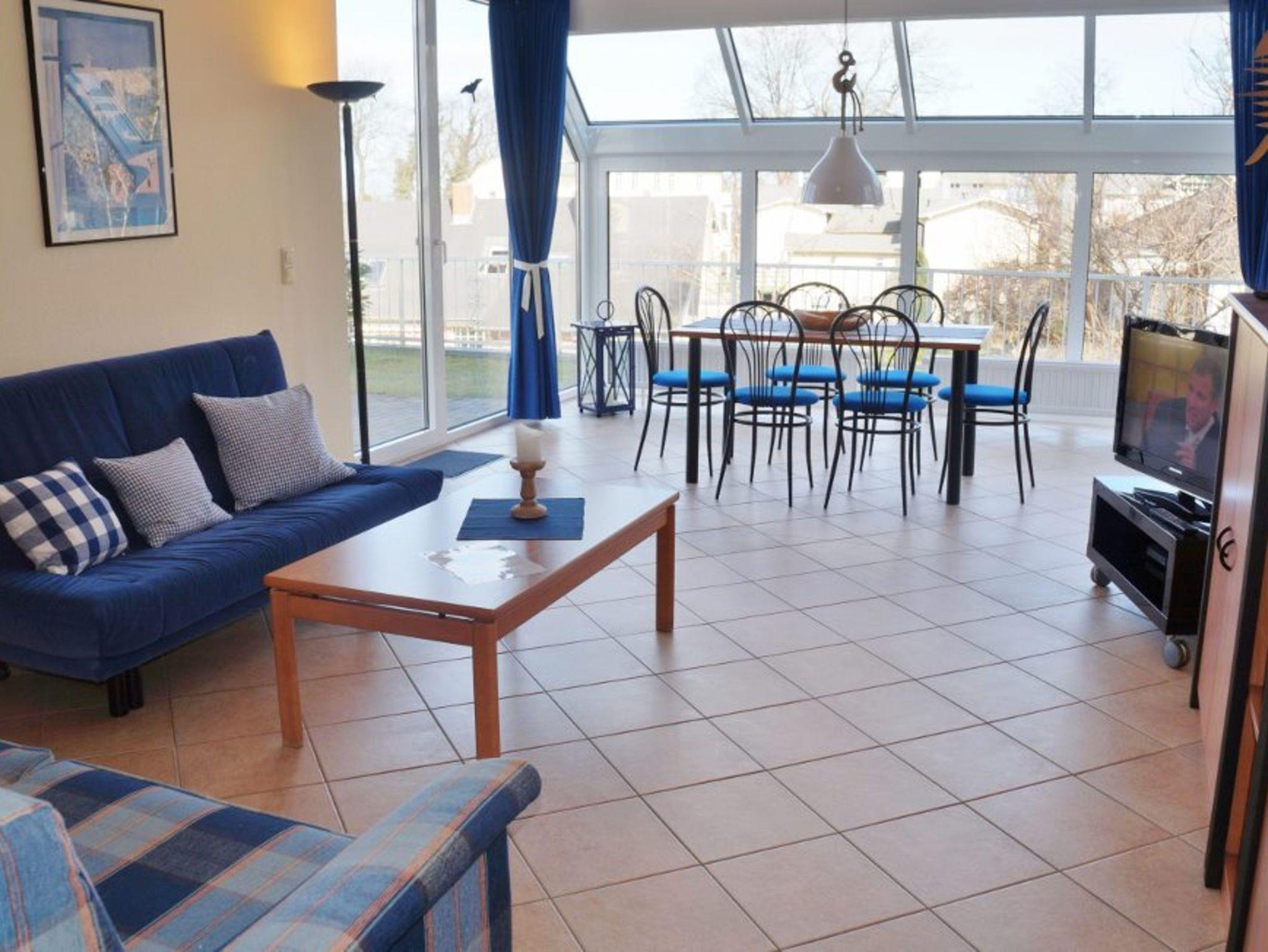 Die 65 m² große Nichtraucher-Ferienwohnung ist für 2 - 4 Personen ausgestattet. Wohnzimmer mit integriertem Wintergarten und direktem Zugang zur Terrasse - Terrassenmöbel vorhanden.