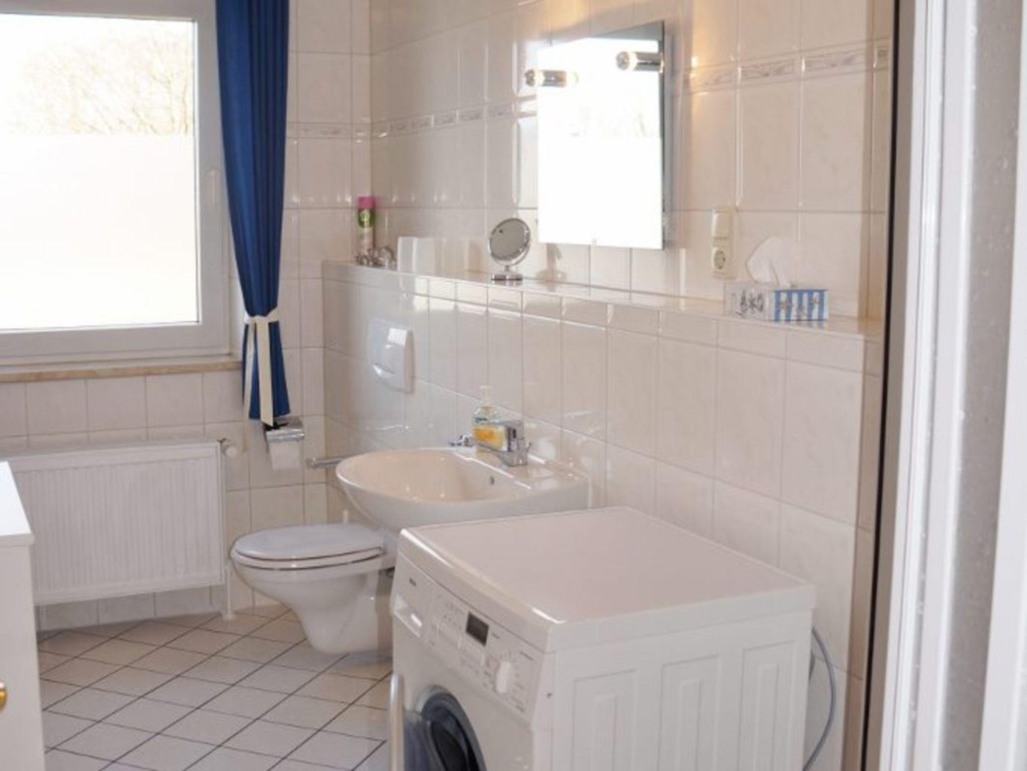 Im Bad befindet sich ein Wasch-Trockner.